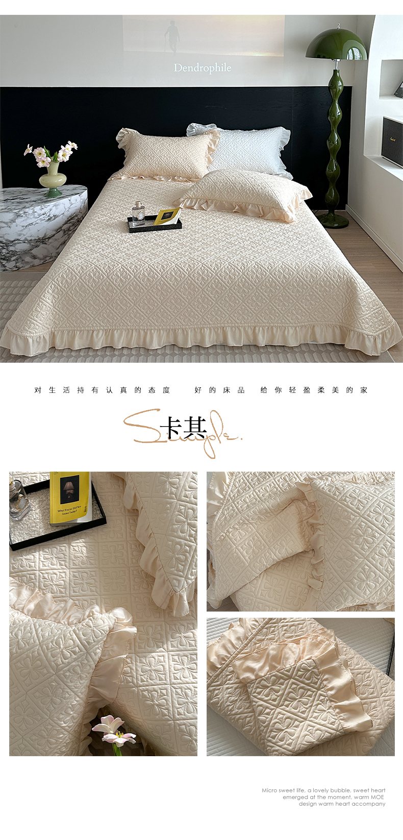 商品名称:诗黛尔 2024春夏新款莱赛尔克罗星花边床盖系列三件套 卡其