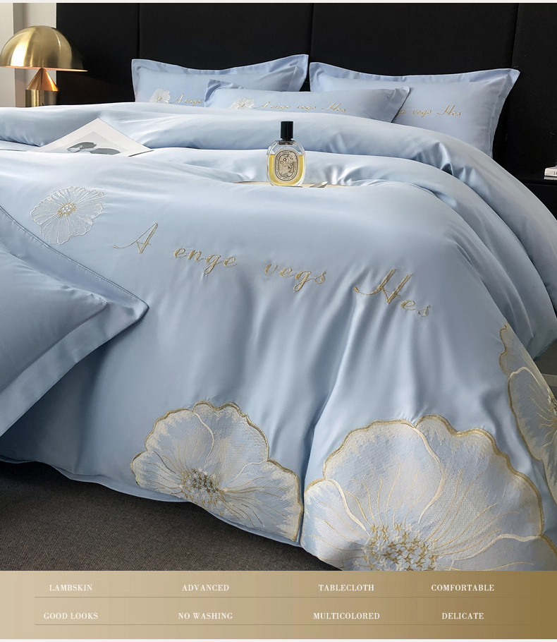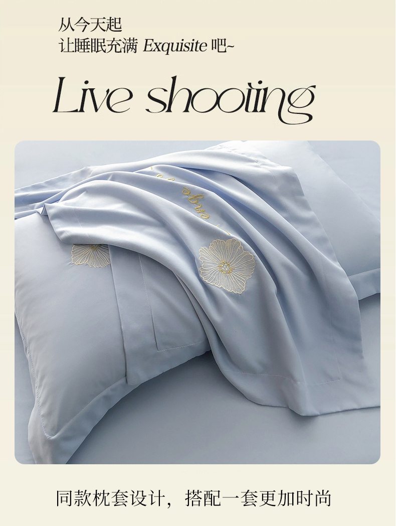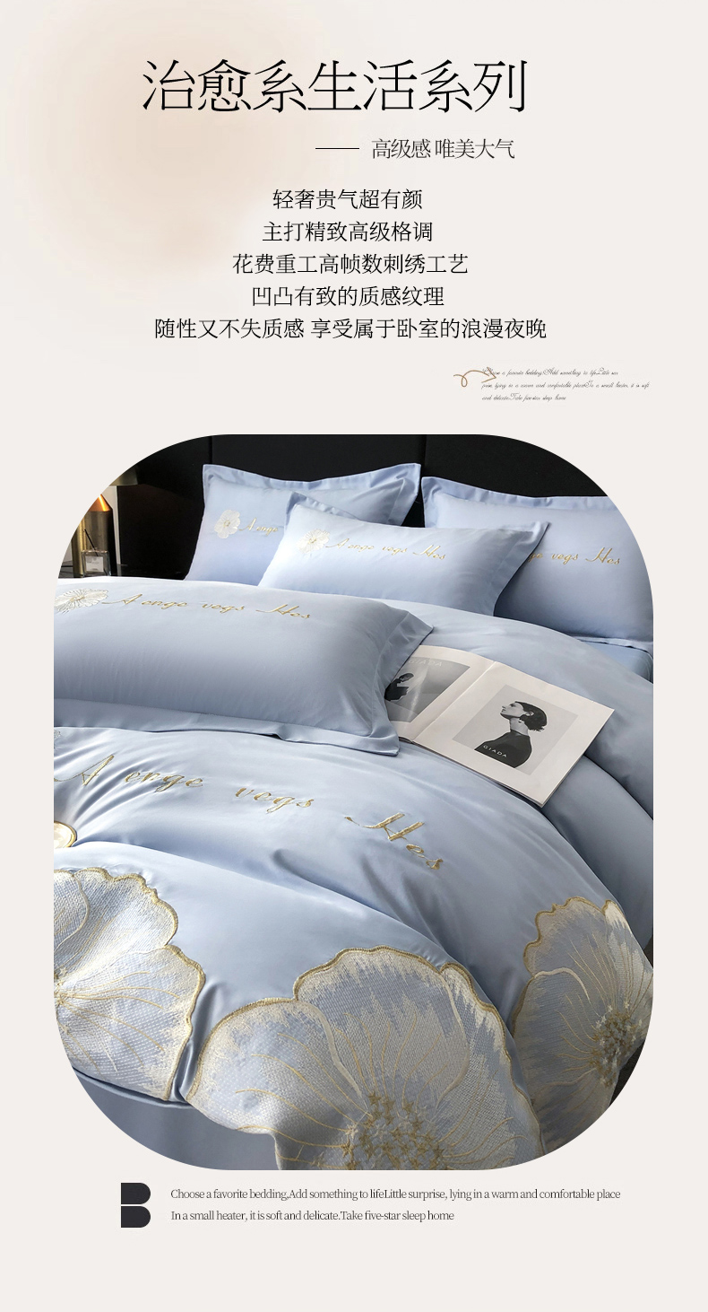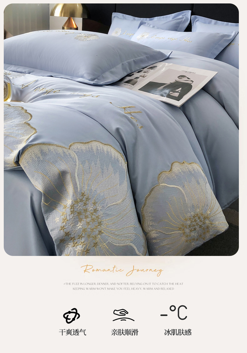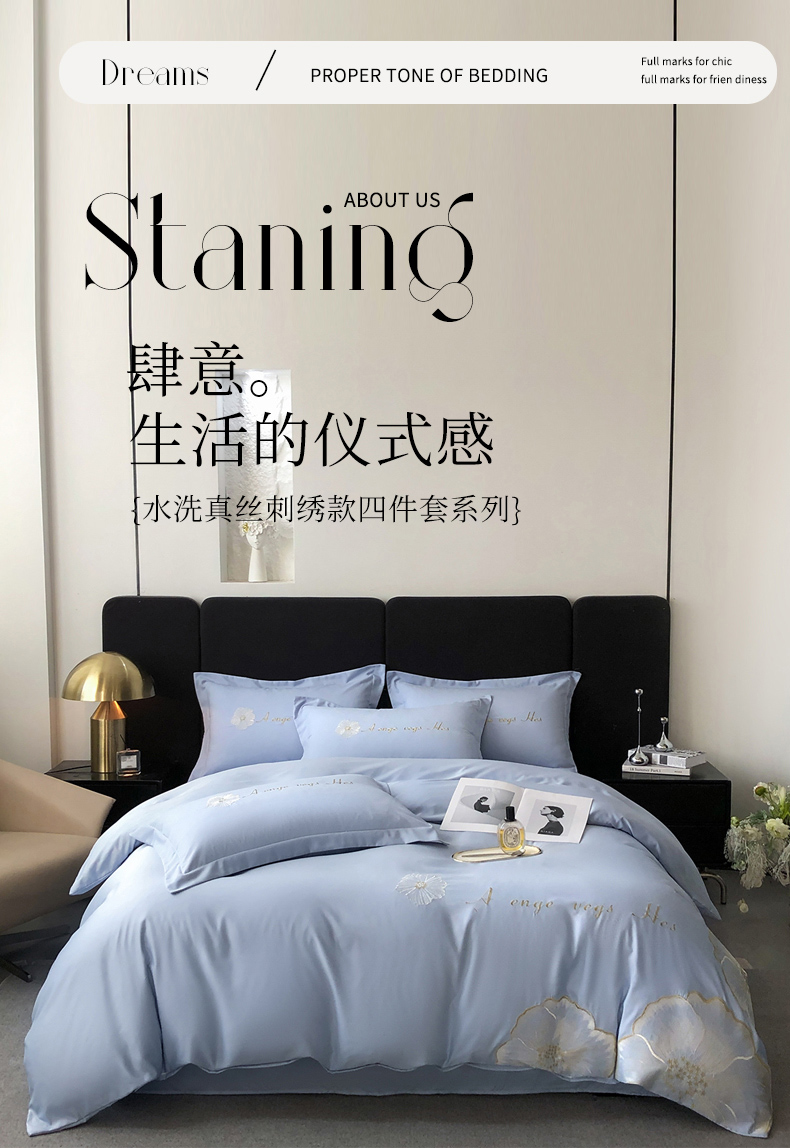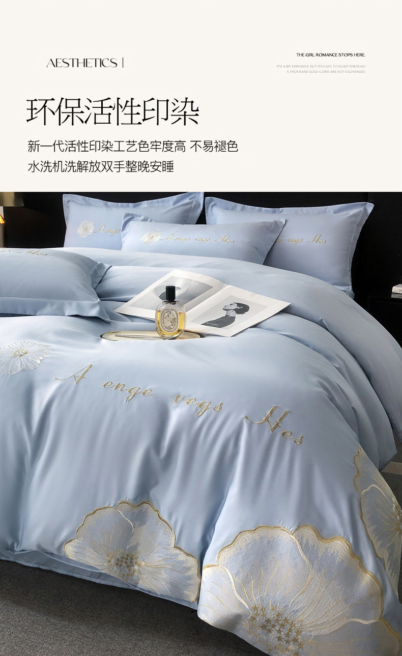 当前位置: 91家纺网 > 商品网购 > 床品套件 > 四件套 > 水洗真丝四件套 > 你好美丽 2025新款水洗真丝刺绣绮梦四件套 绮梦浅蓝