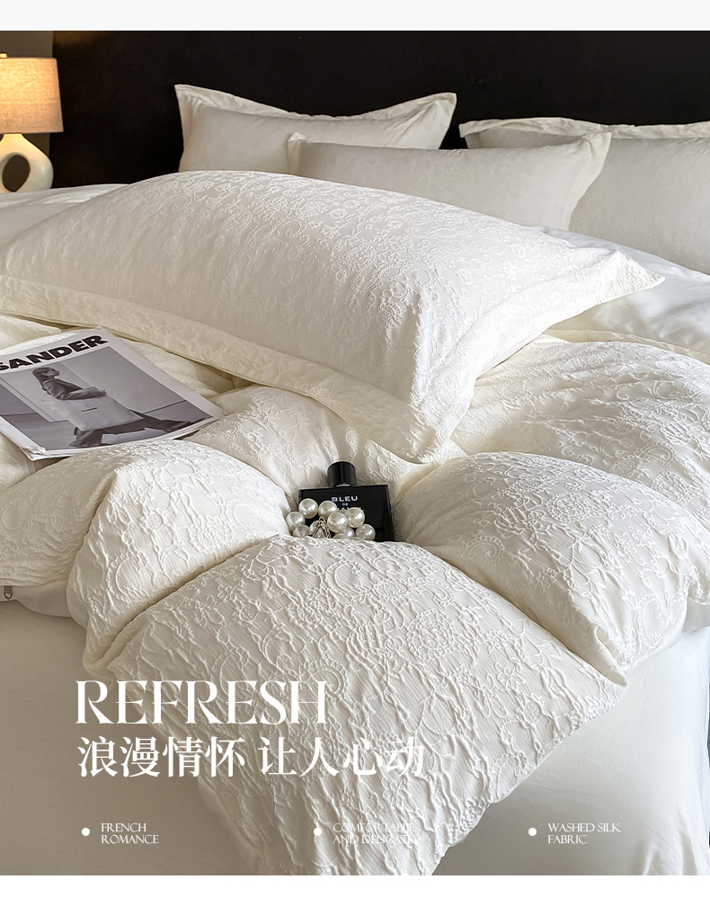 当前位置: 91家纺网 > 商品网购 > 床品套件 > 四件套 > 水洗棉四件套 > 2025新款水洗棉双层纱提花四件套-洛伊 洛伊白
