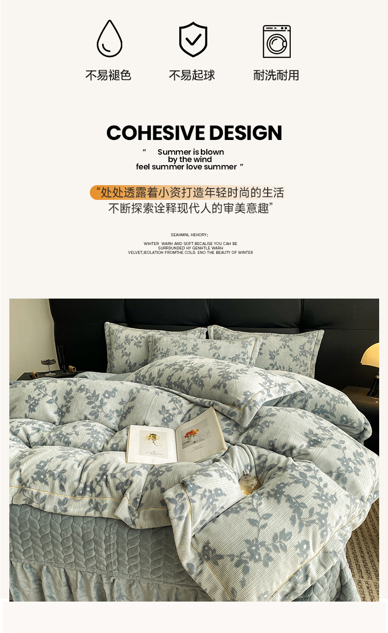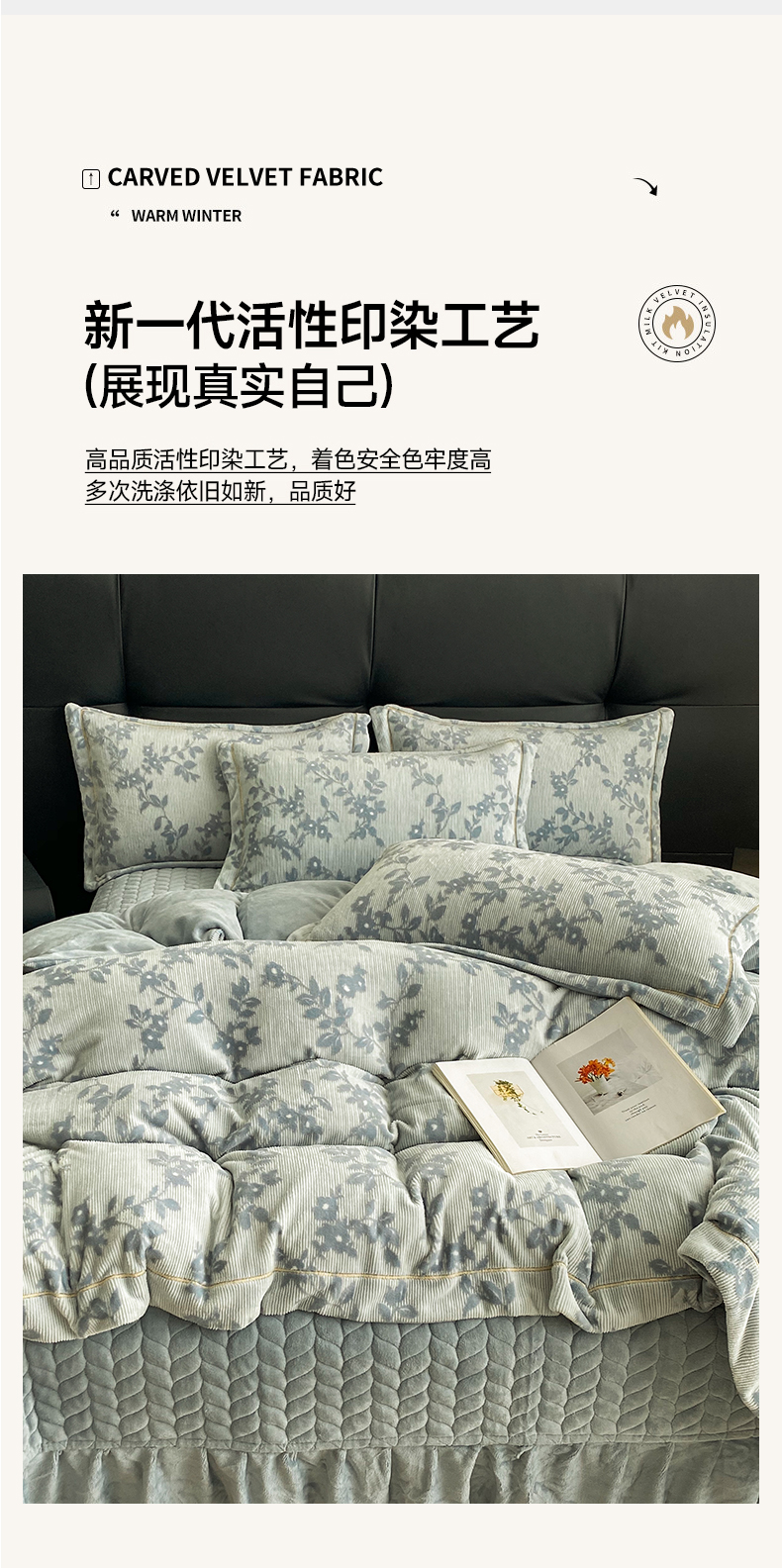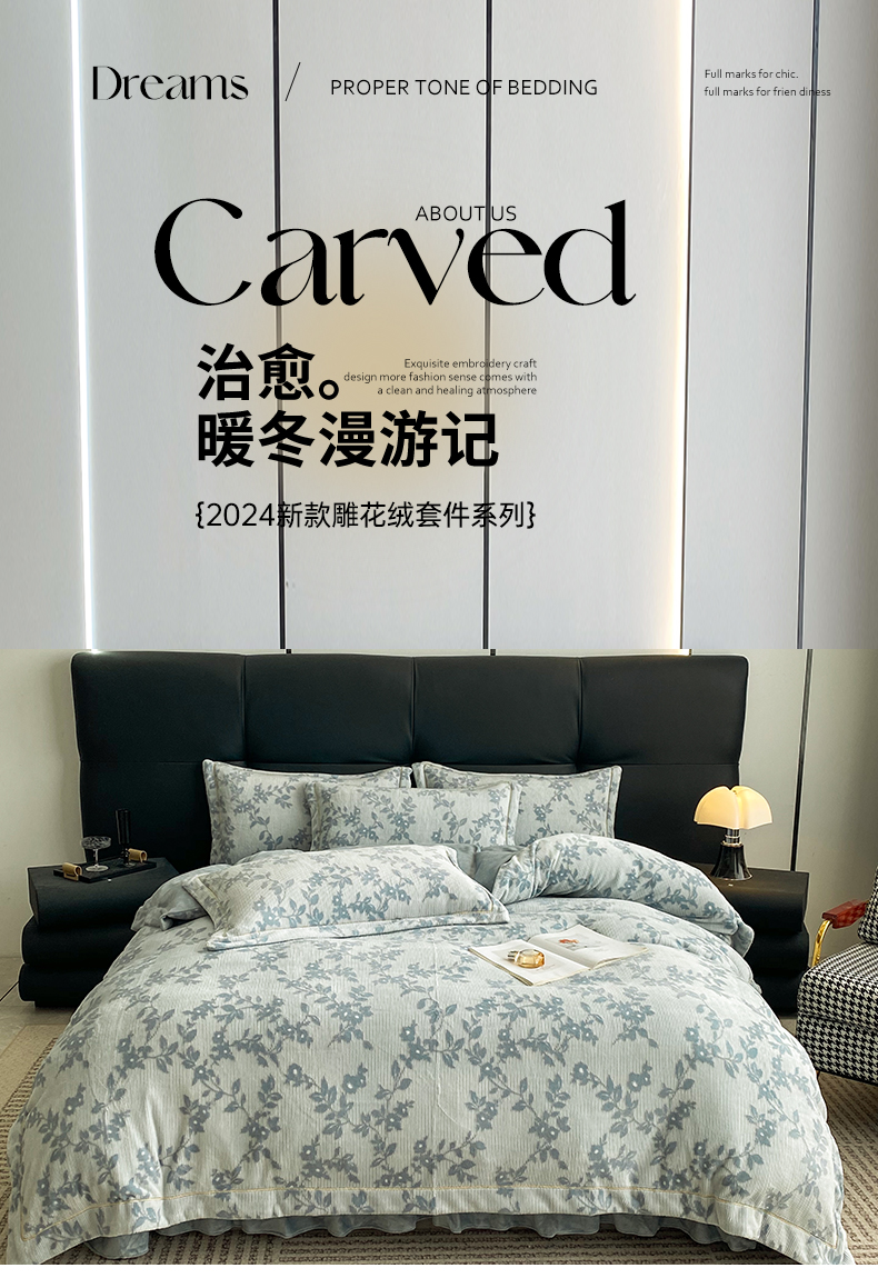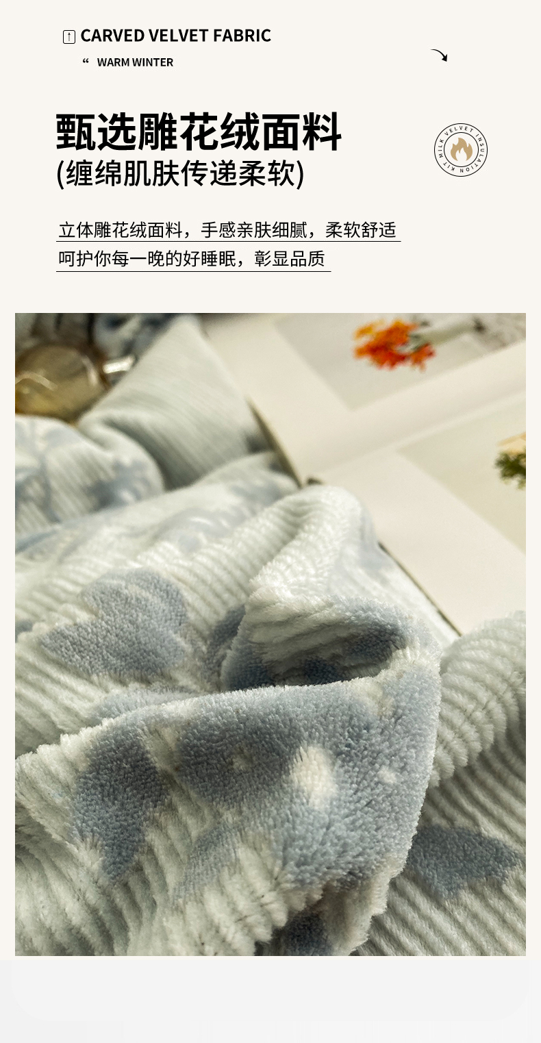 (总)美伦美焕 2025新款加厚雕花绒床盖款四件套-浅叶,浅叶-粉玉,浅叶-卡其,浅叶-绅士灰,浅叶-蔚蓝,浅叶-胭脂红