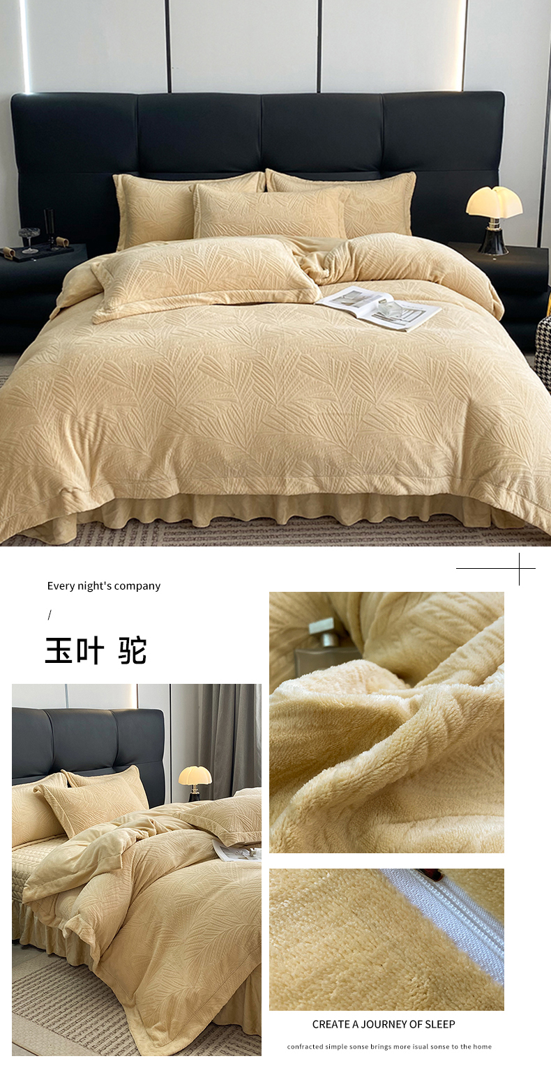 (总)美伦美焕 2025新款加厚雕花绒床盖款四件套-浅叶,浅叶-粉玉,浅叶-卡其,浅叶-绅士灰,浅叶-蔚蓝,浅叶-胭脂红