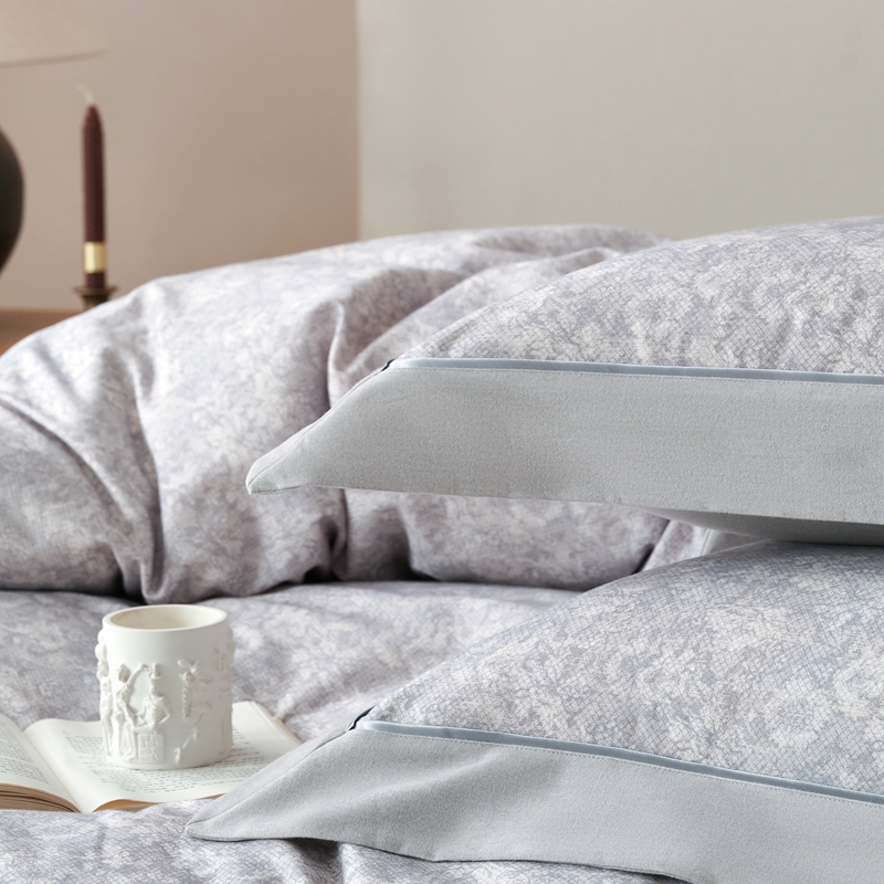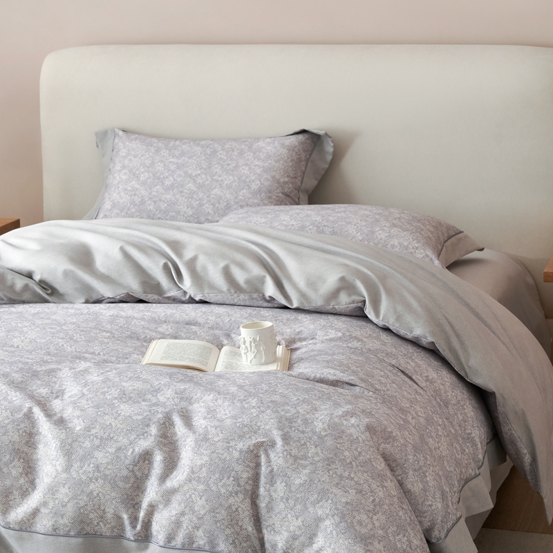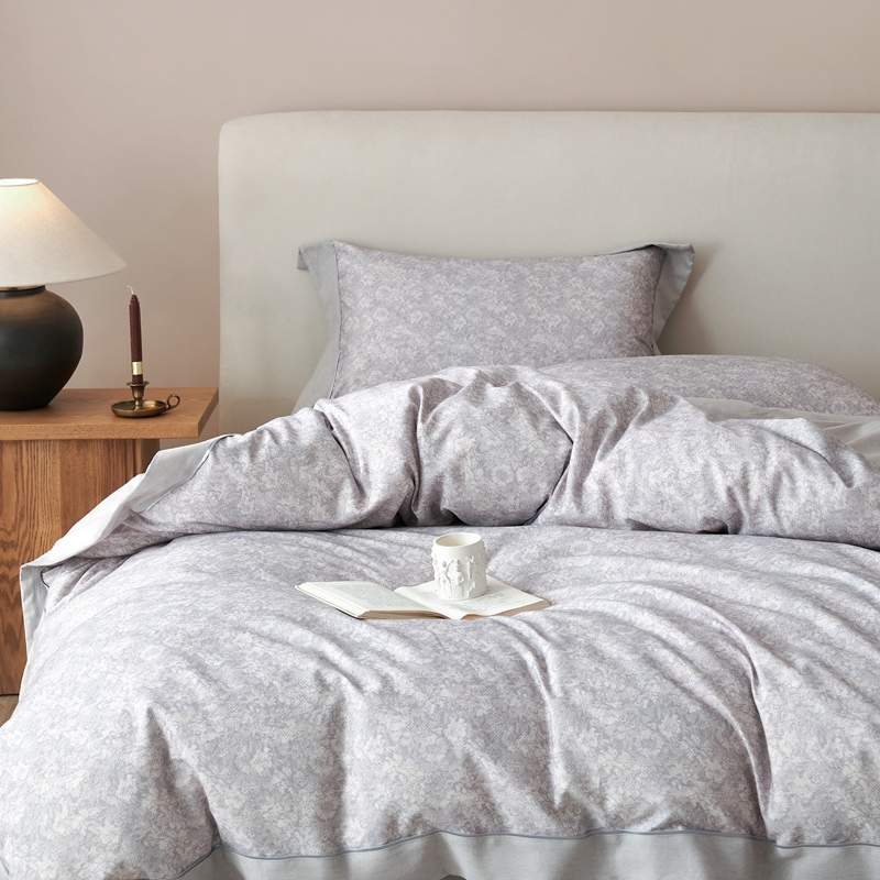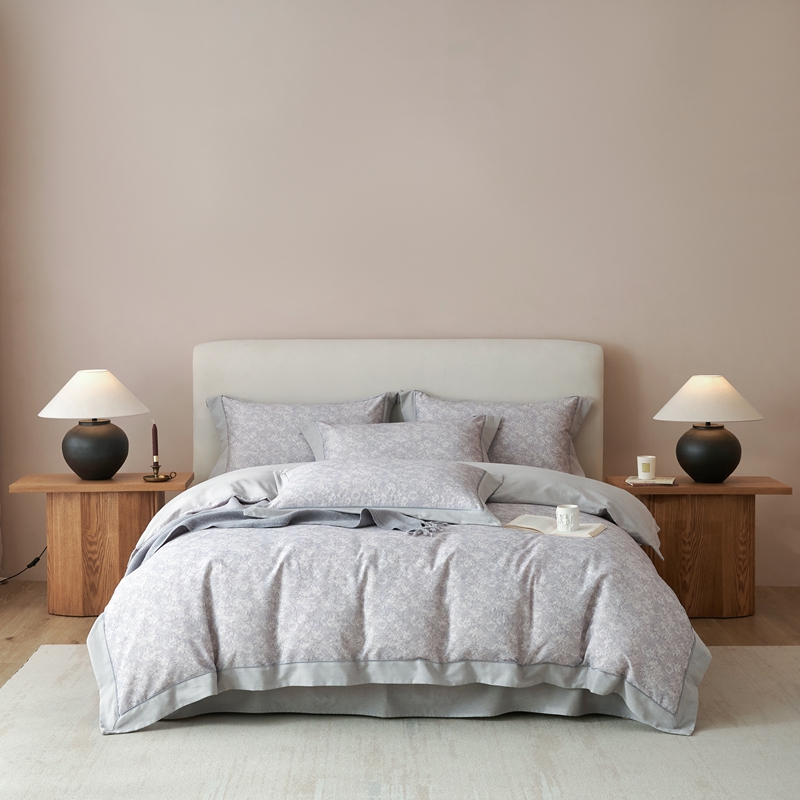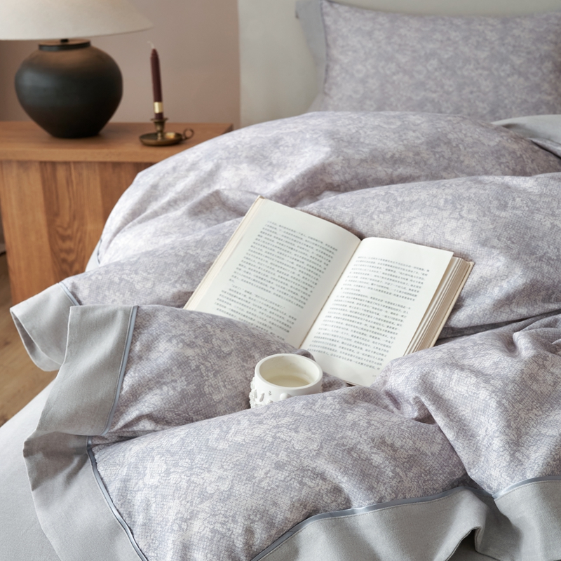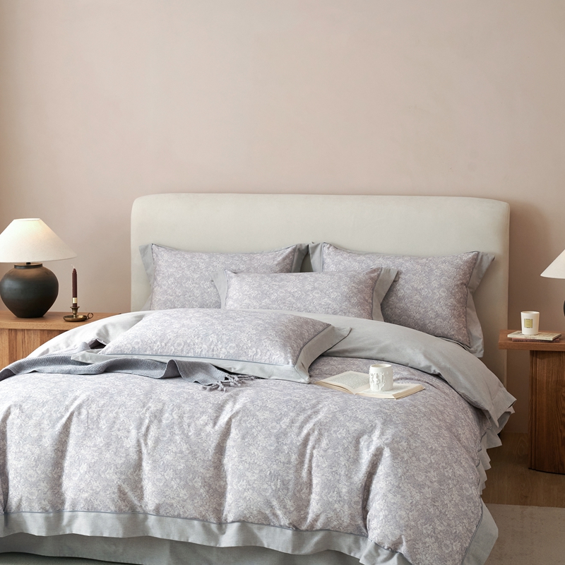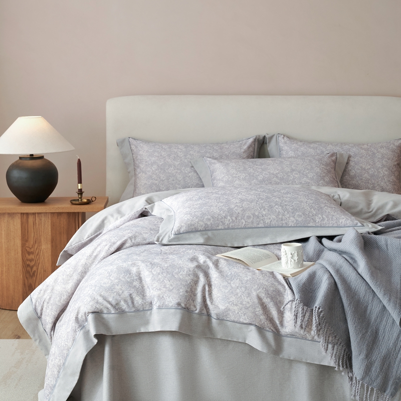 总榻尚家居 2023新款格瑞斯系列100贡缎长绒棉四件套工艺款四件套,格瑞斯紫,格瑞斯白,格瑞斯灰,格瑞斯蓝