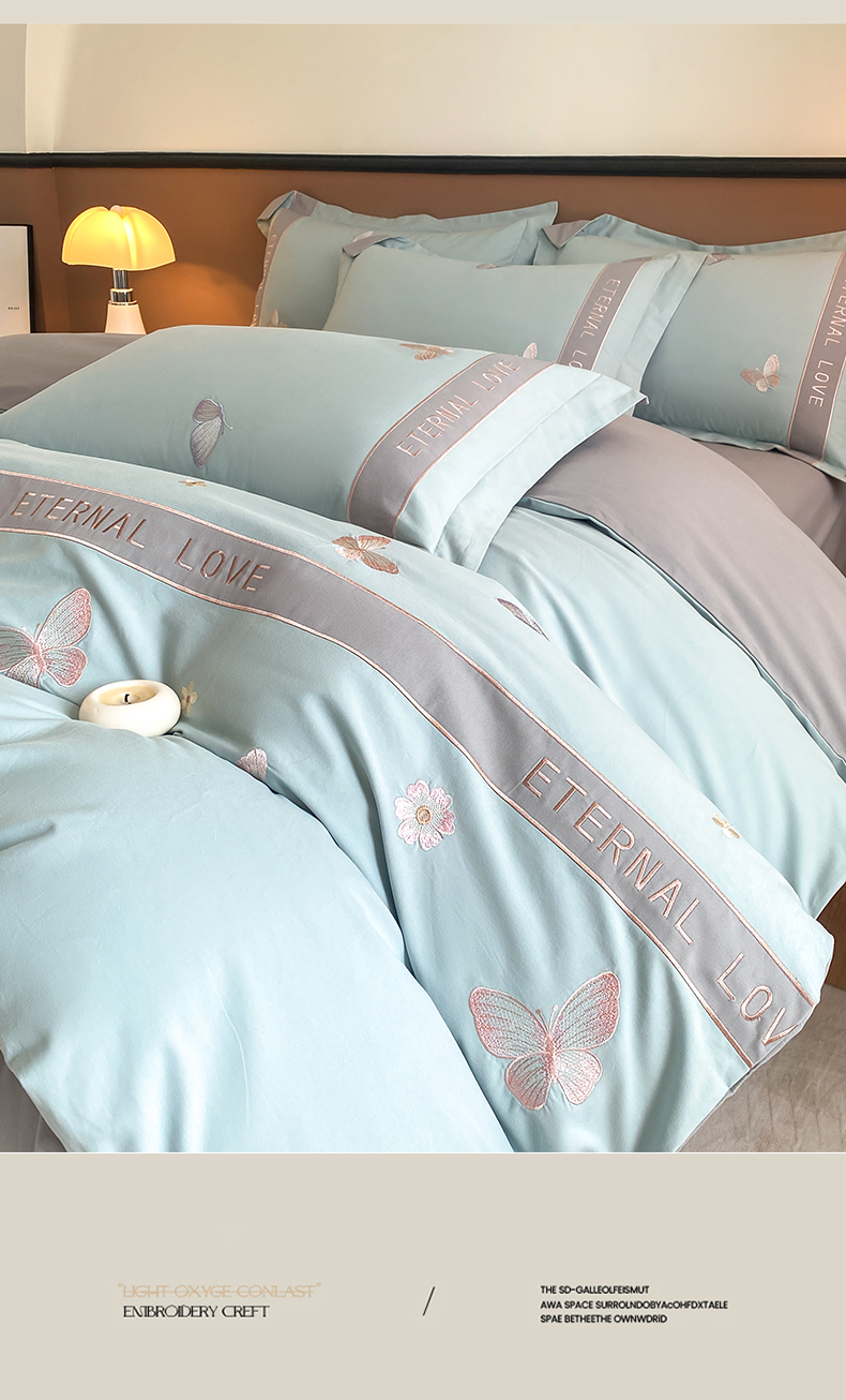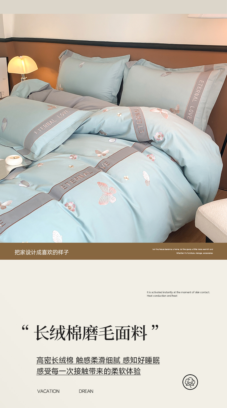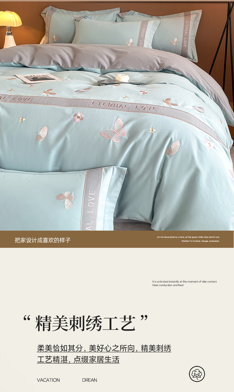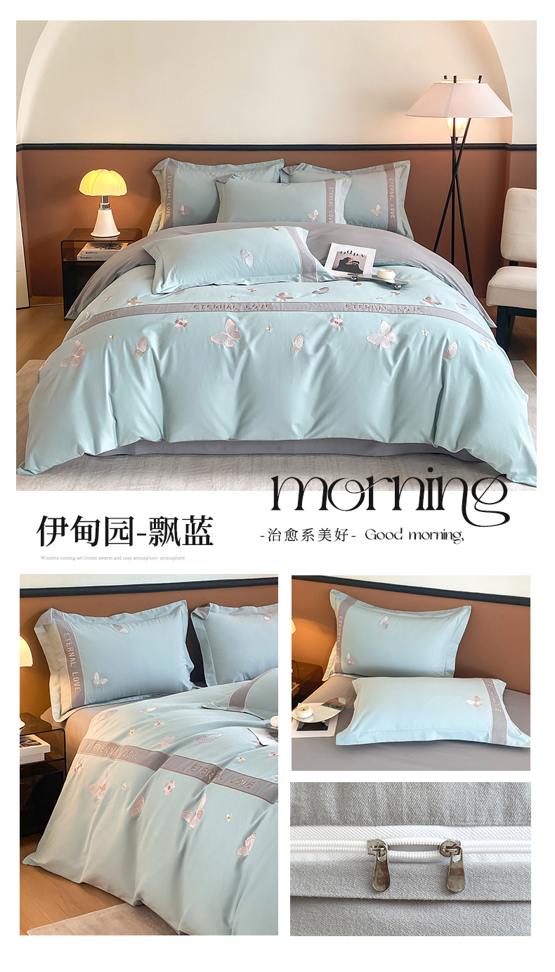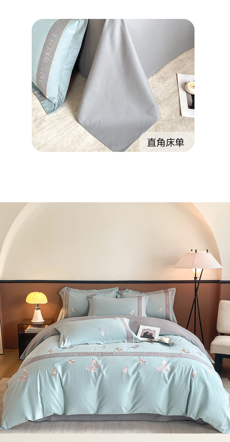 (总)桃园 2025新款全棉长绒棉刺绣绣花四件套-西西里系列,飘蓝,轻奢粉,绅士灰,香槟
