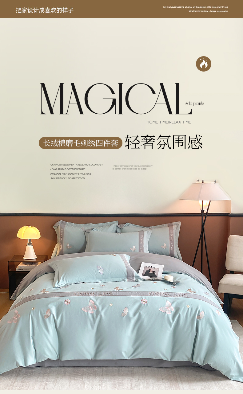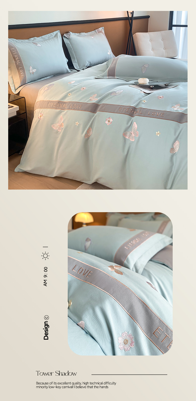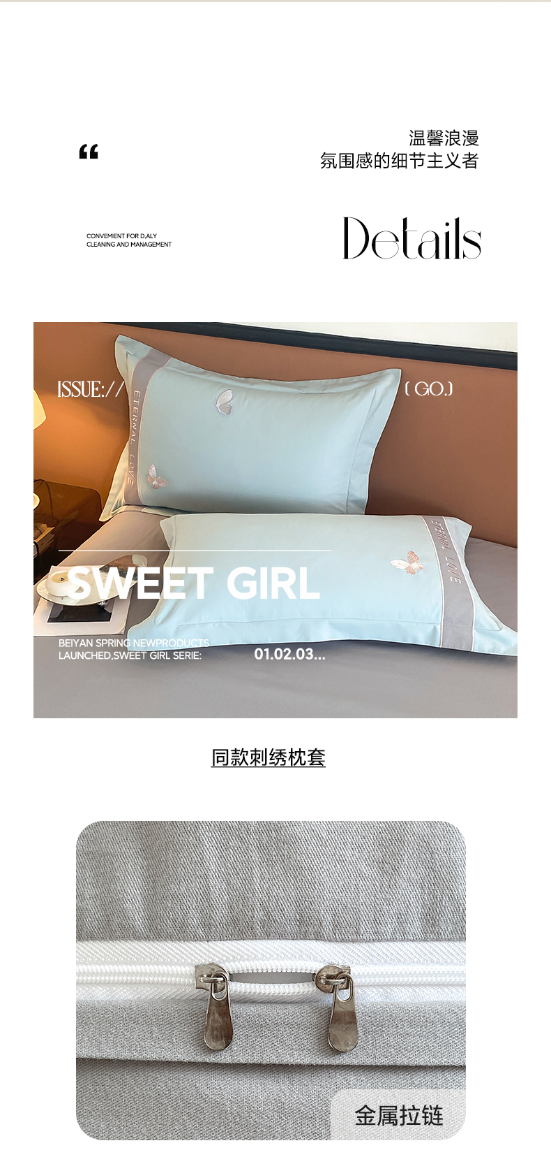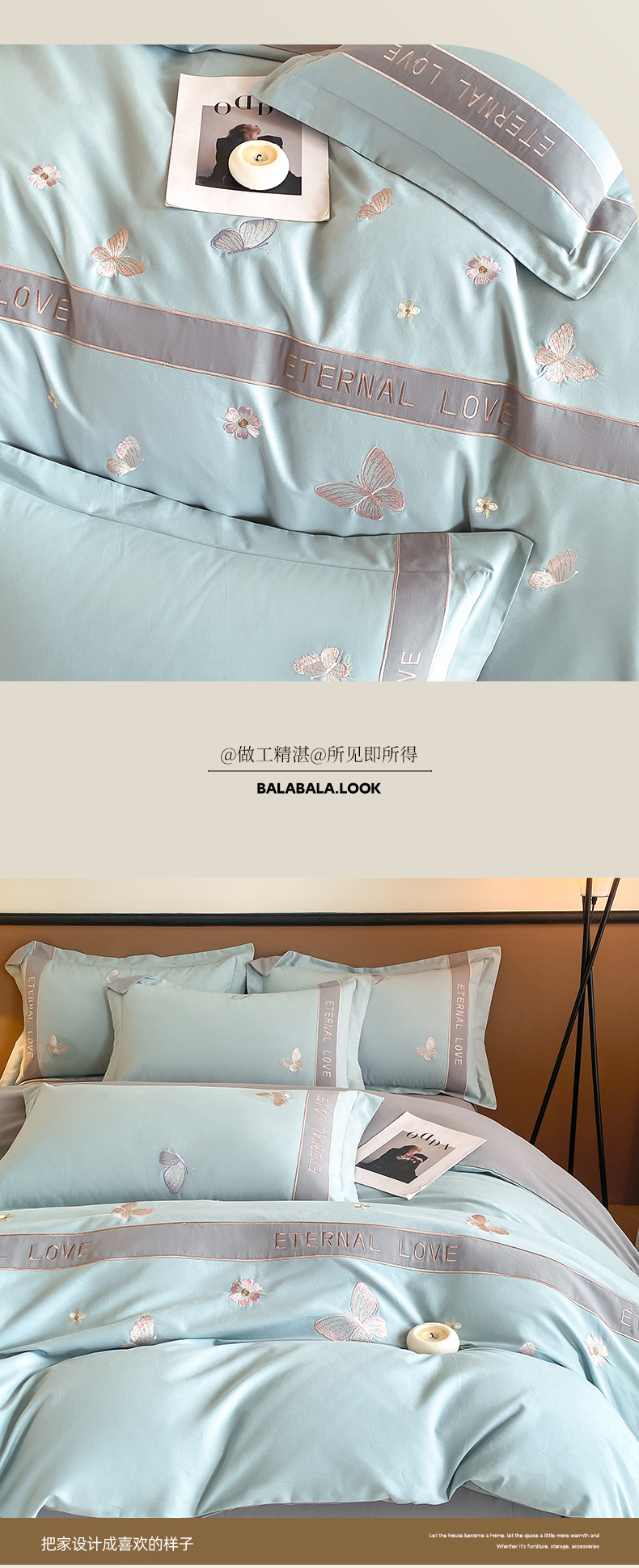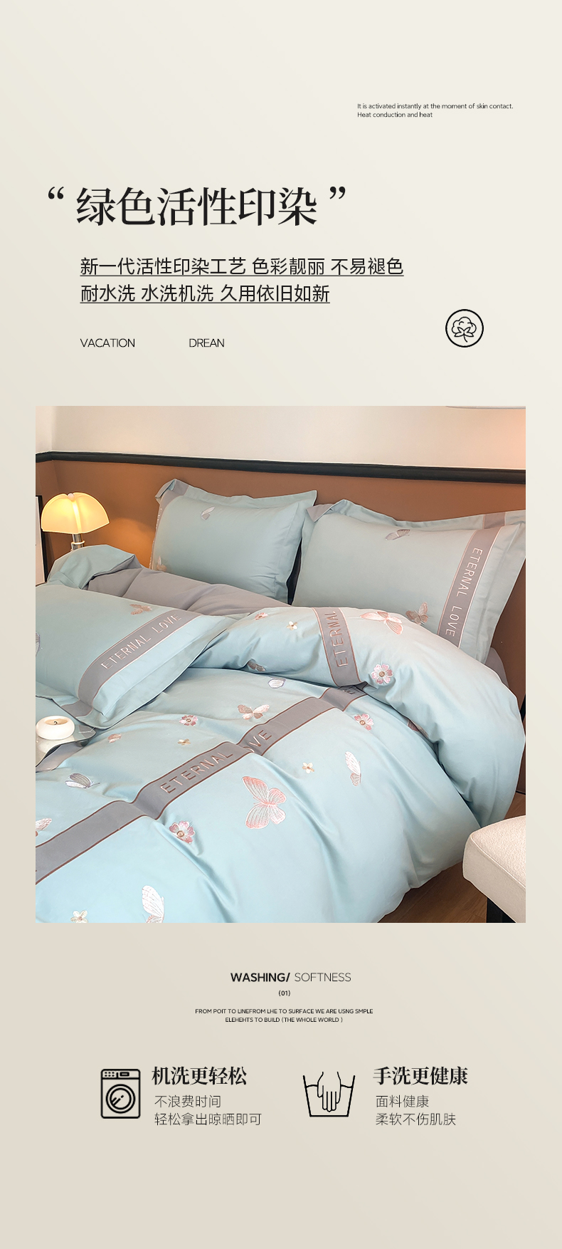 (总)桃园 2025新款全棉长绒棉刺绣绣花四件套-西西里系列,飘蓝,轻奢粉,绅士灰,香槟