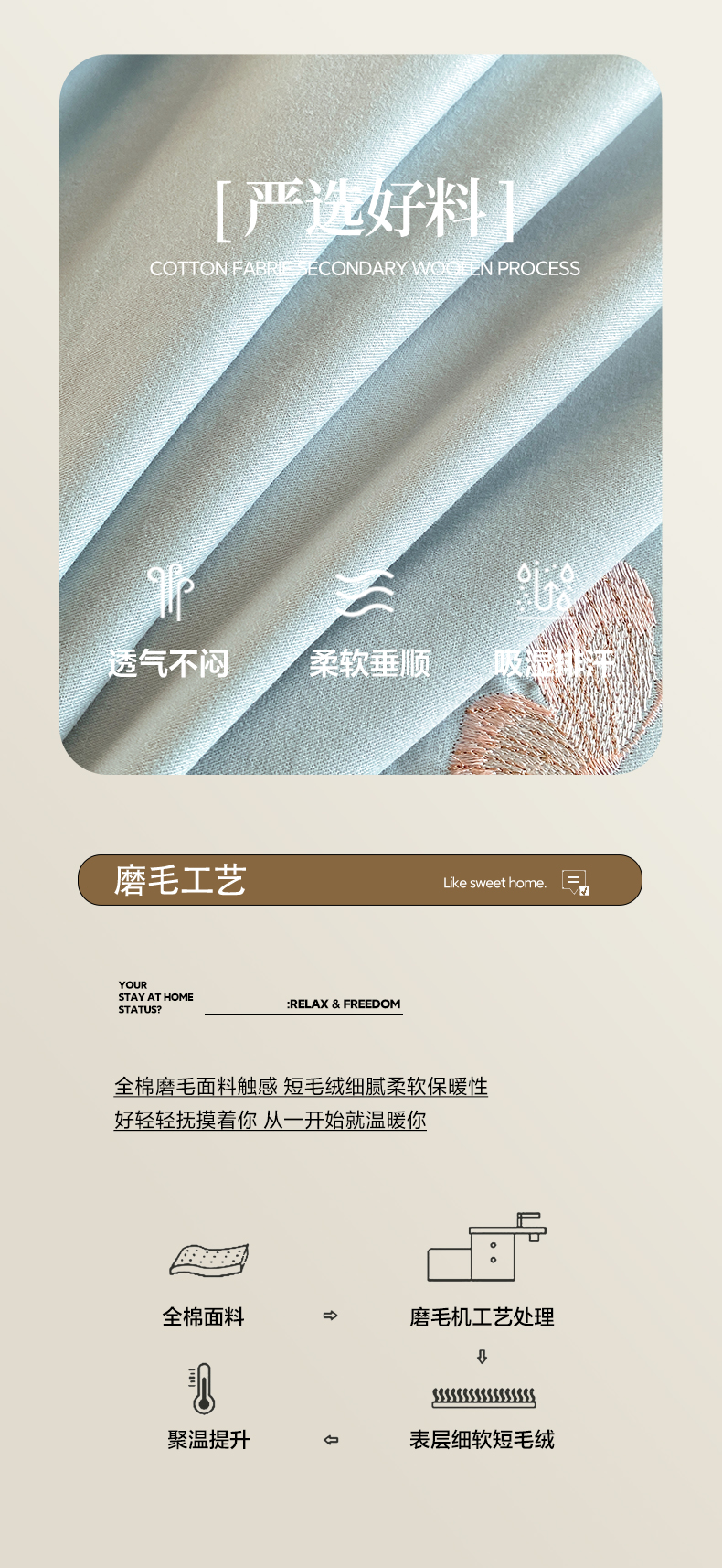 商品名称:桃园 2025新款伊甸园系列纯棉全棉长绒棉磨毛四件套(配高端礼盒)控价228,248 伊甸园-飘蓝