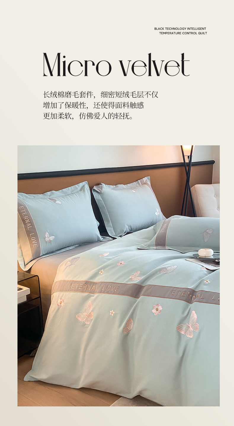 (总)桃园 新款纯棉全棉长绒棉磨毛不掉毛四件套高端礼盒-蝶町系列(包含买家秀),白粉,飘蓝,香芋紫,轻奢粉