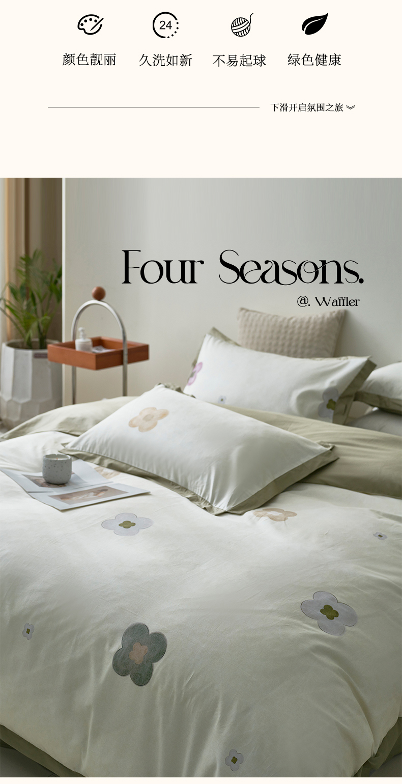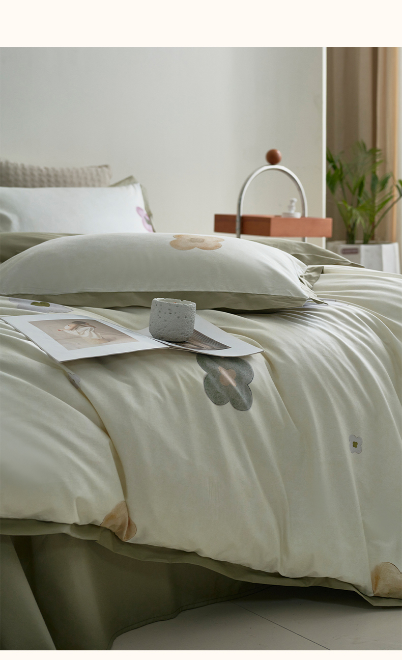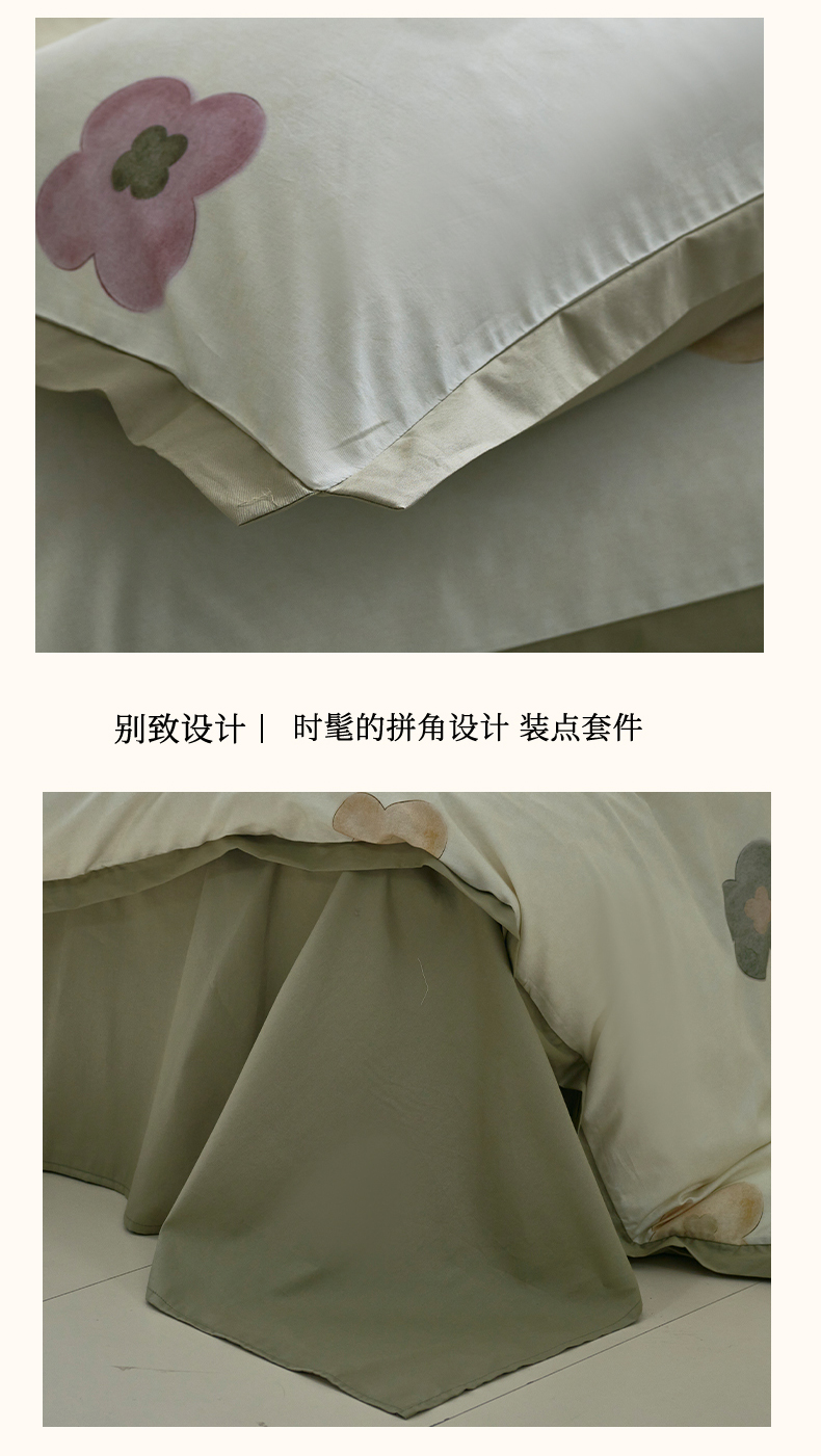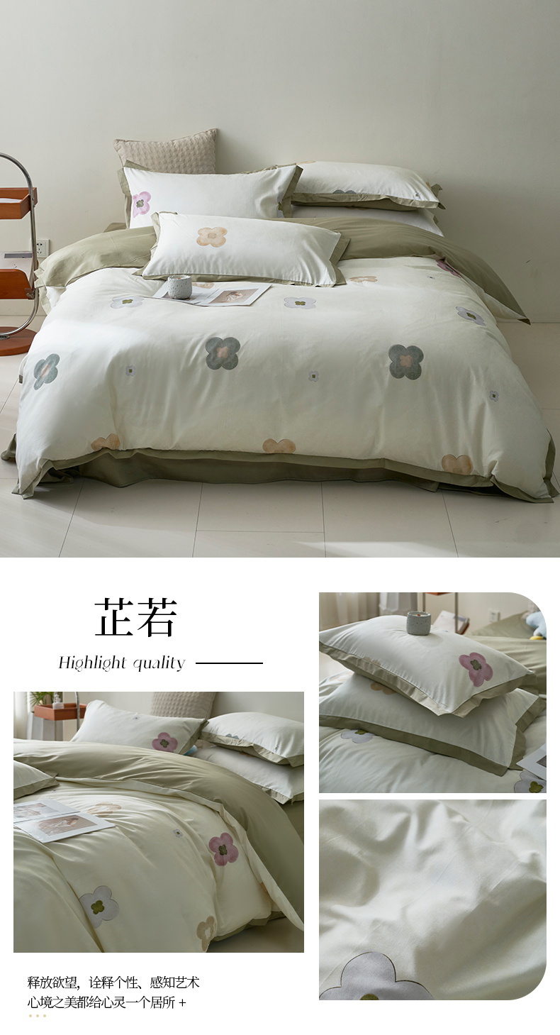 (总)橙艺家居 2024新款全棉臻品柔棉立体小宽边四件套,云苓-绿,白芷-米,采薇-粉,澄意-绿,罗曼史-绿,奈雪-绿,芊语-紫,圆妙-桔,栀柔-粉