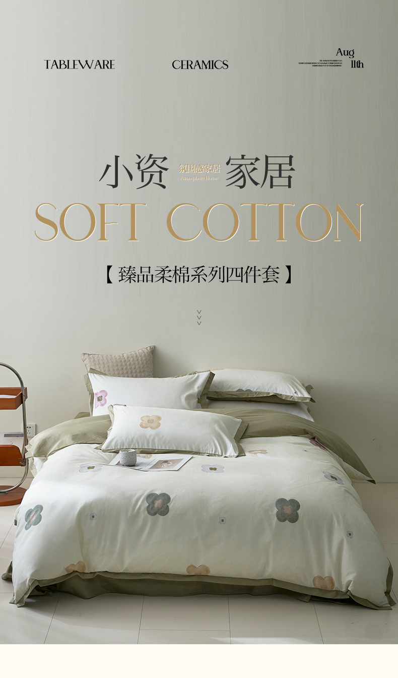 (总)橙艺家居 2024新款铂金柔棉全棉印花四件套,池奈,春和景明,花茶仙,花的旅行,暮云花卉,苏念,婉情-灰,小屿