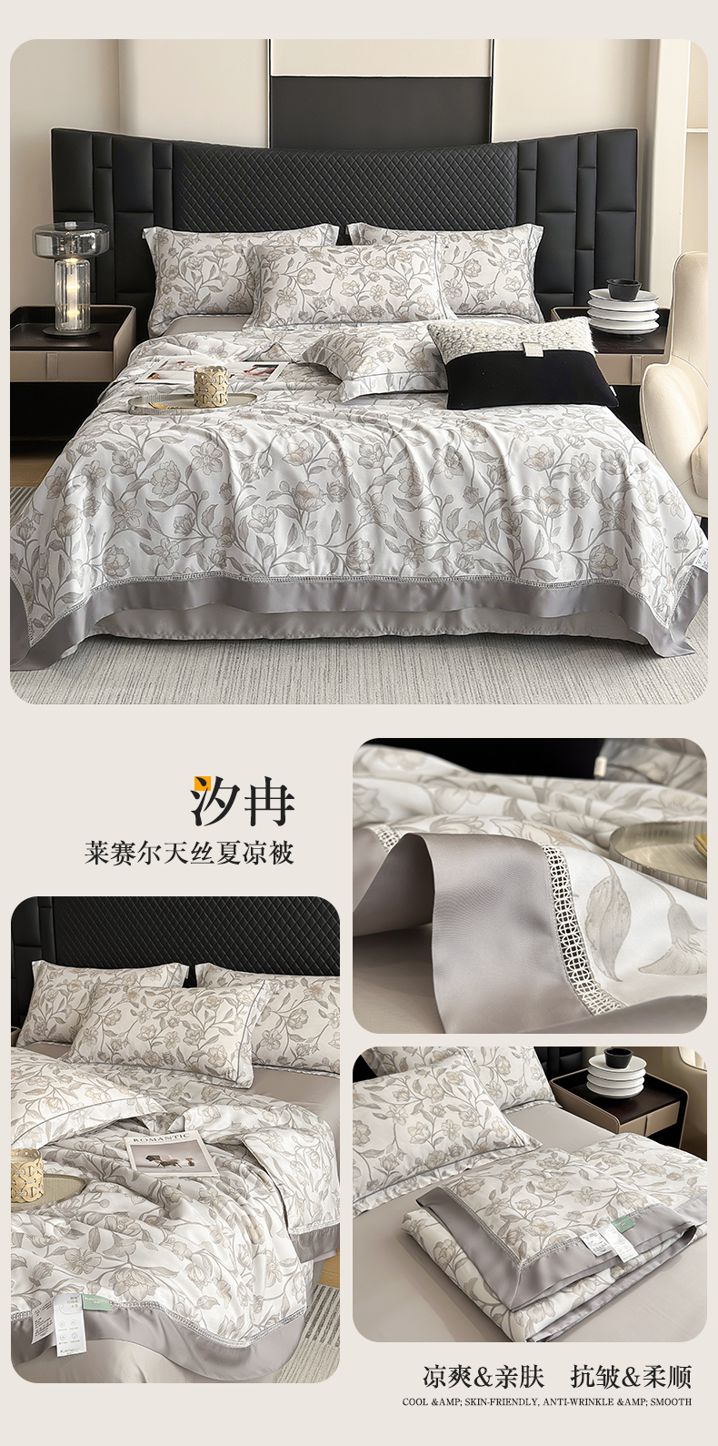 商品名称:娇逸家居 2025新款50支印花莱赛尔天丝夏被镂空款花边夏凉被 汐冉