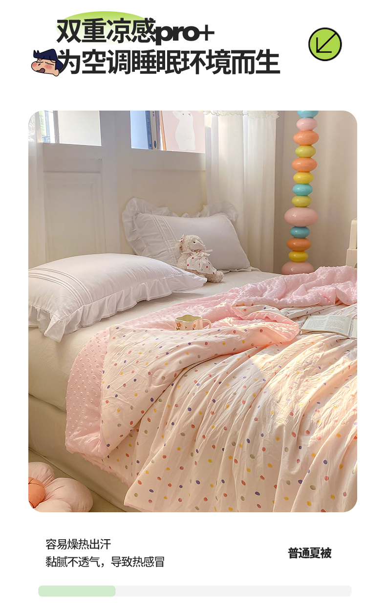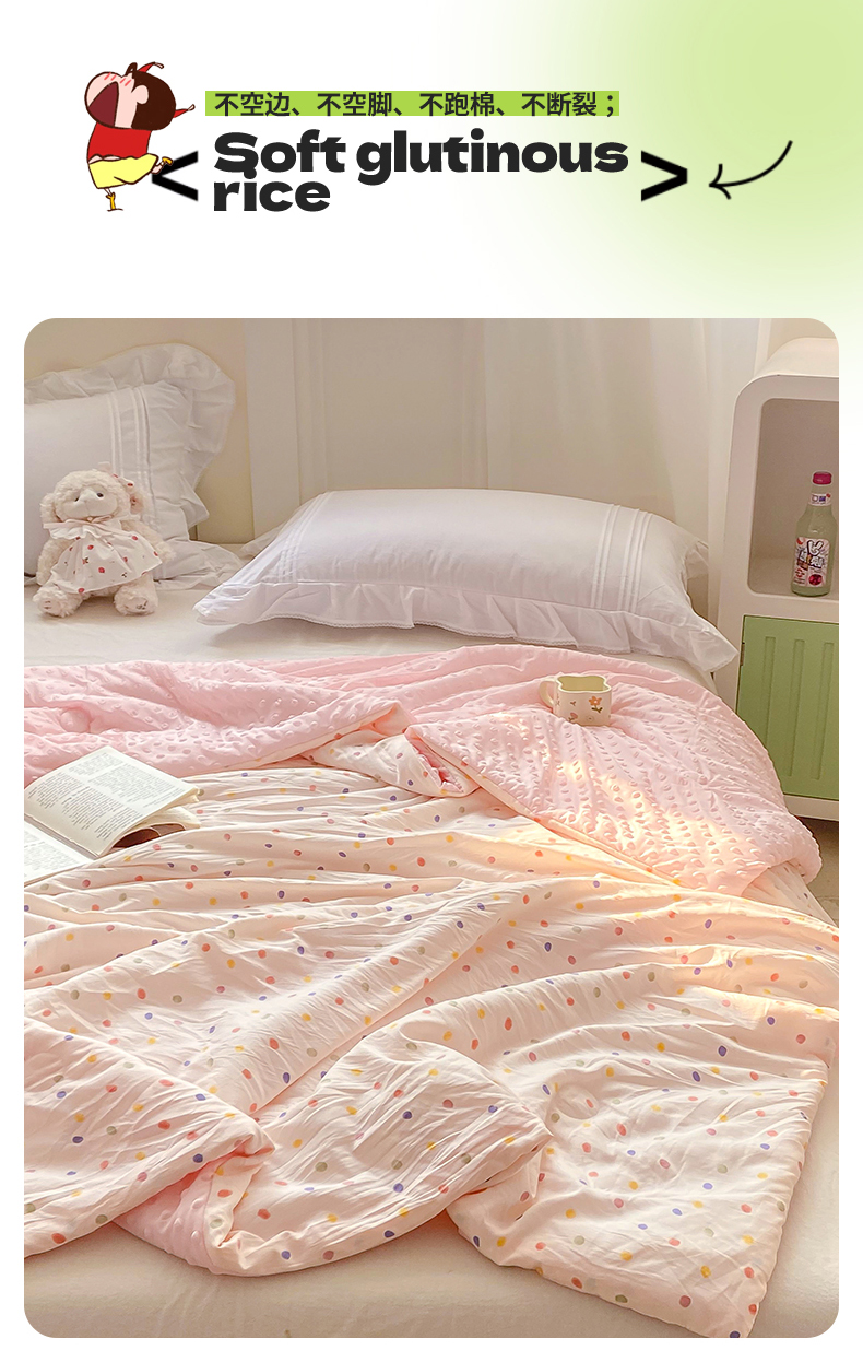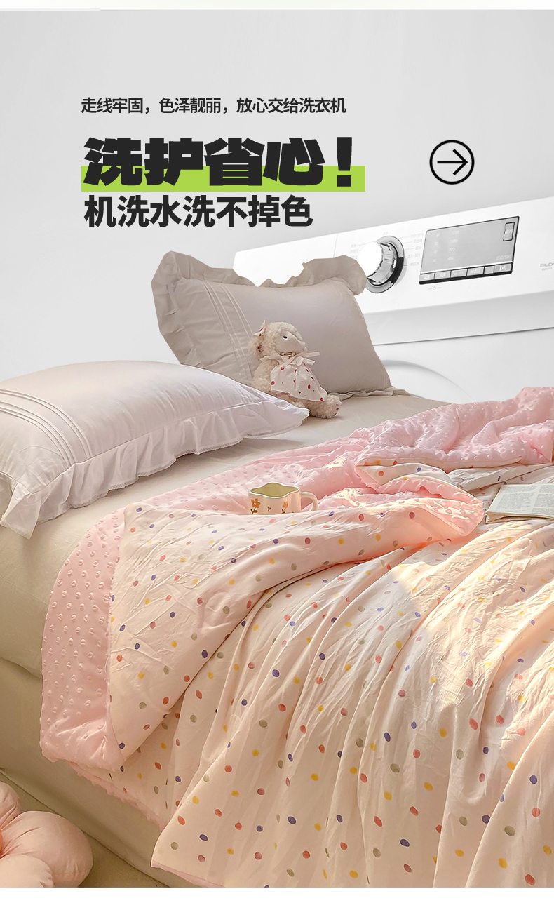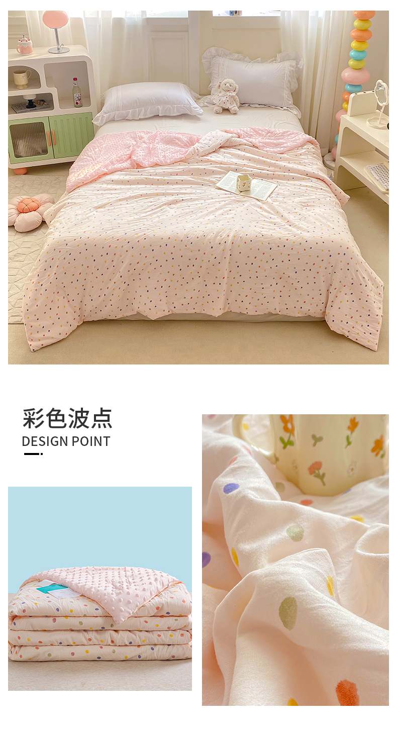 米乐被业 2025新款水洗棉凉豆豆夏被 彩色波点