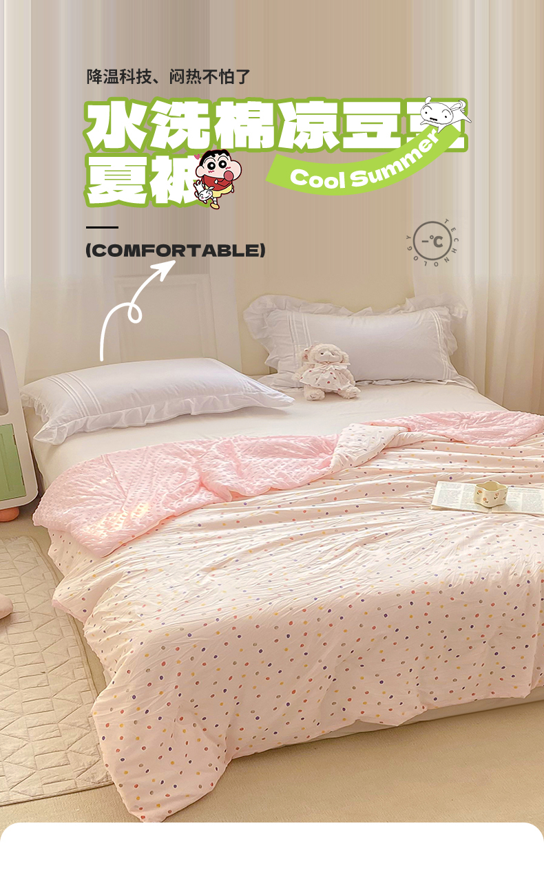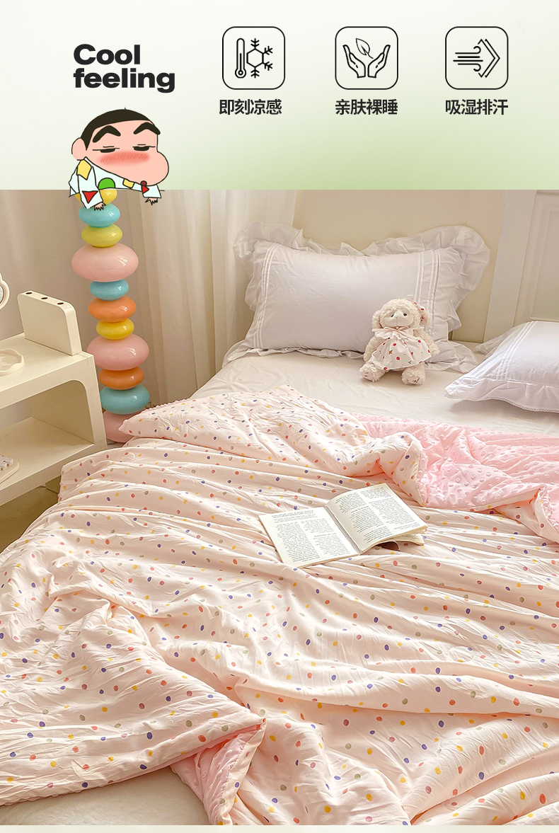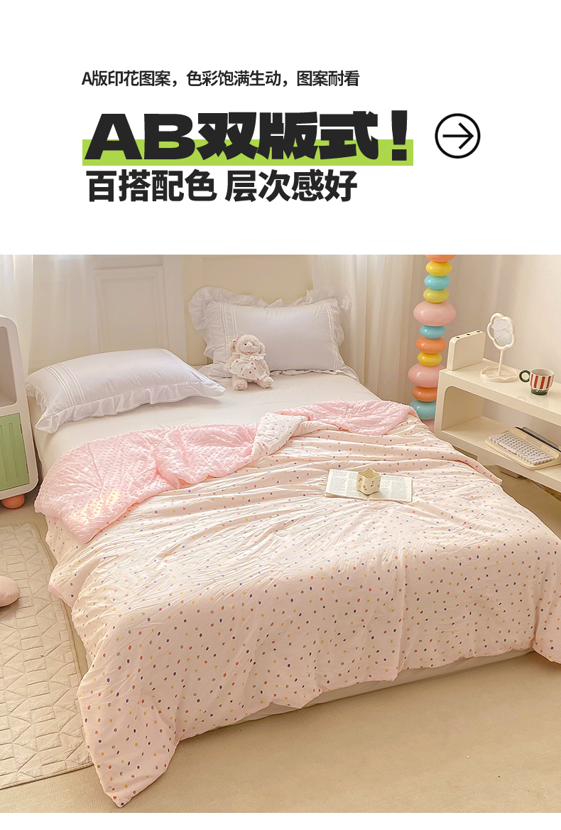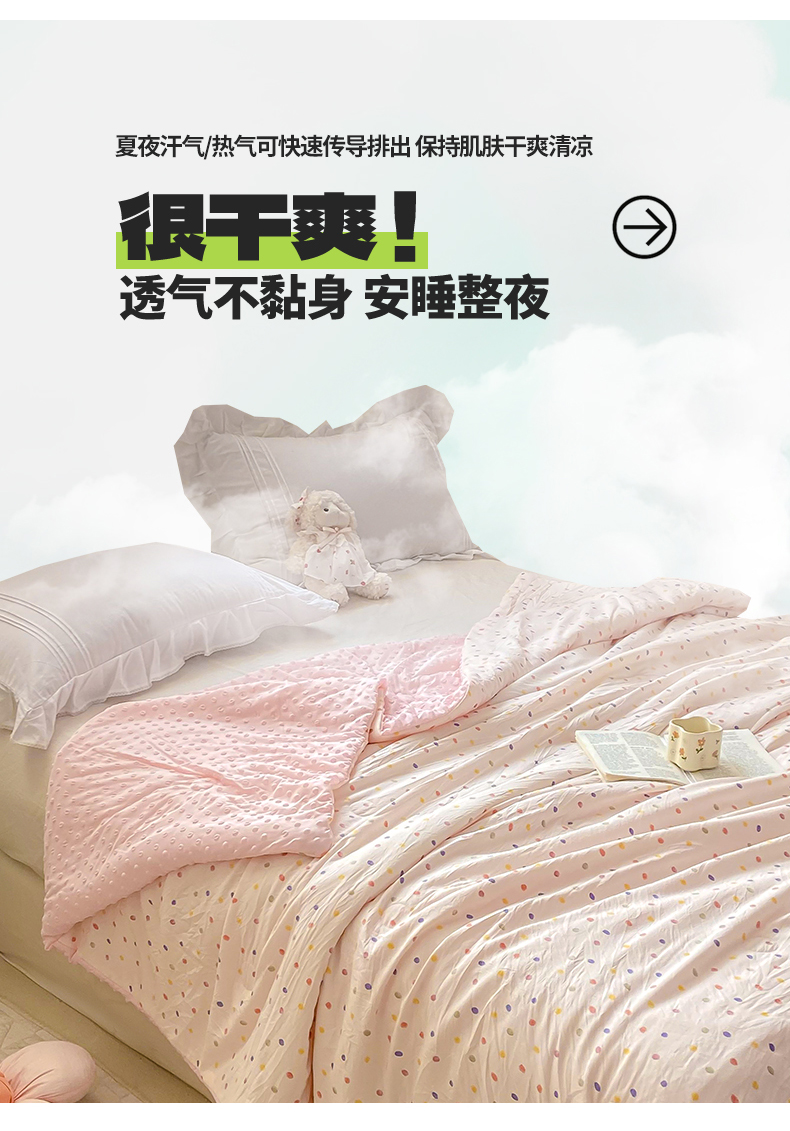 米乐被业 2025新款水洗棉凉豆豆夏被 彩色波点