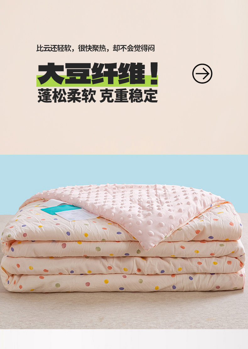 商品名称:米乐被业 2025新款水洗棉凉豆豆夏被 彩色波点