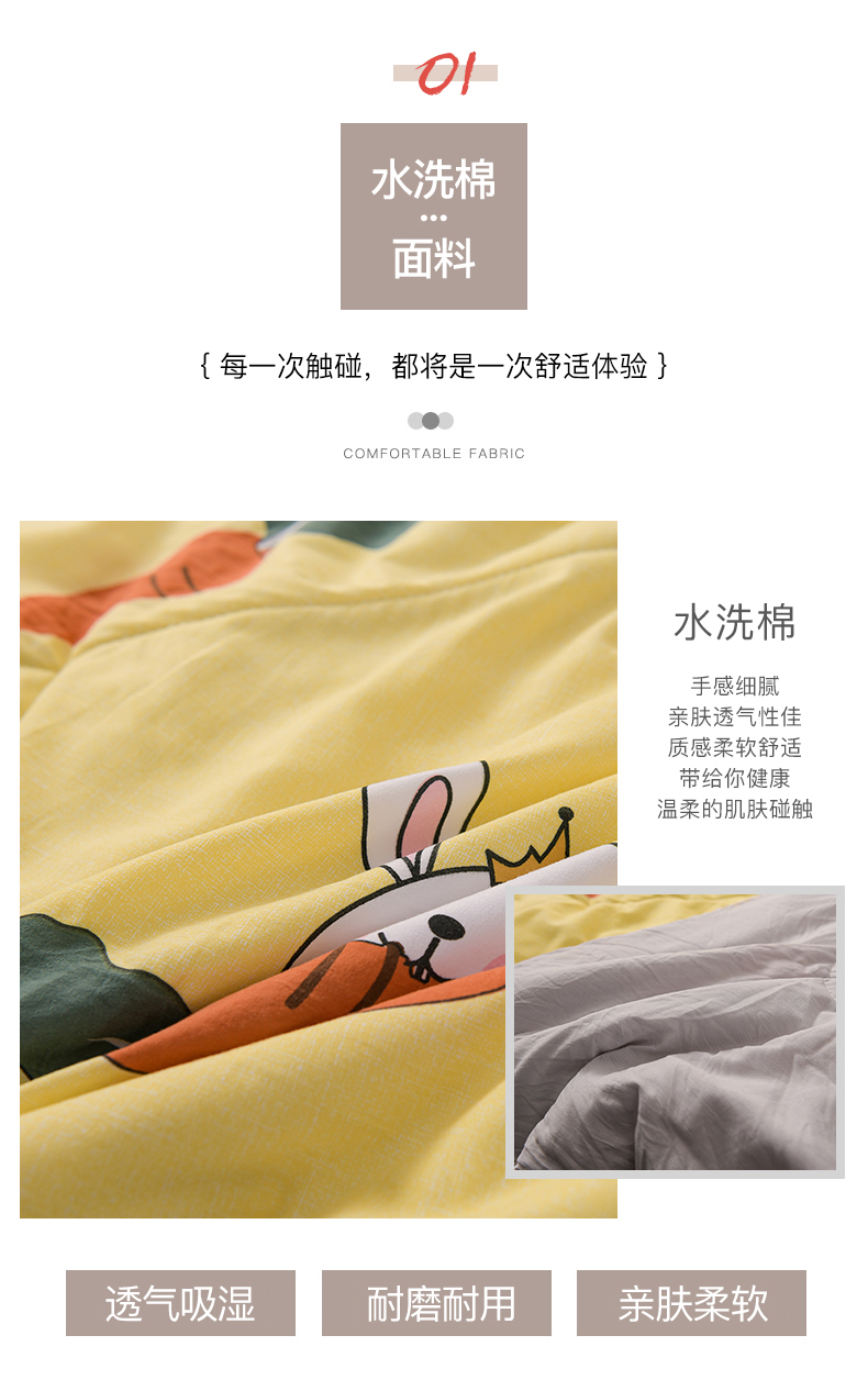 商品名称:鑫贝阳 2025新款亲肤水洗棉小花边印花夏被 萝卜兔