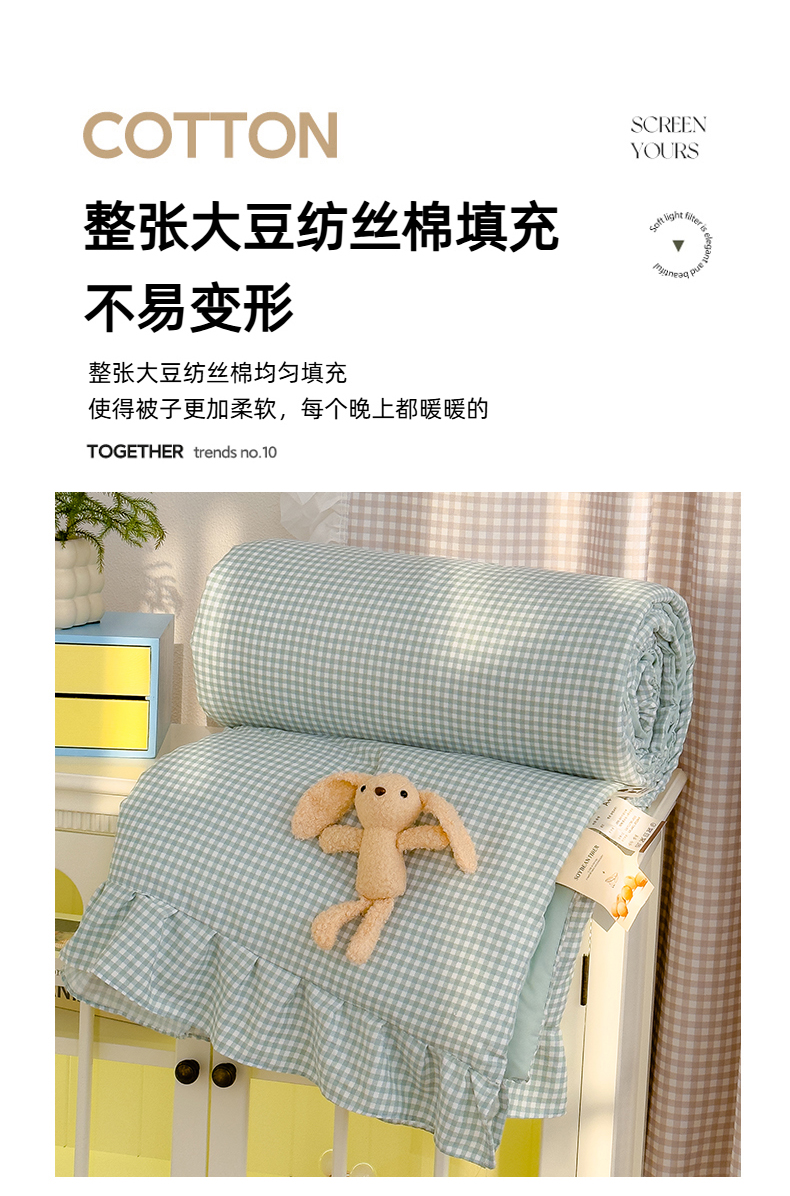 商品名称:默忆 2025新款水洗棉双层纱花边夏被夏凉被空调被被子被芯 浅绿小格