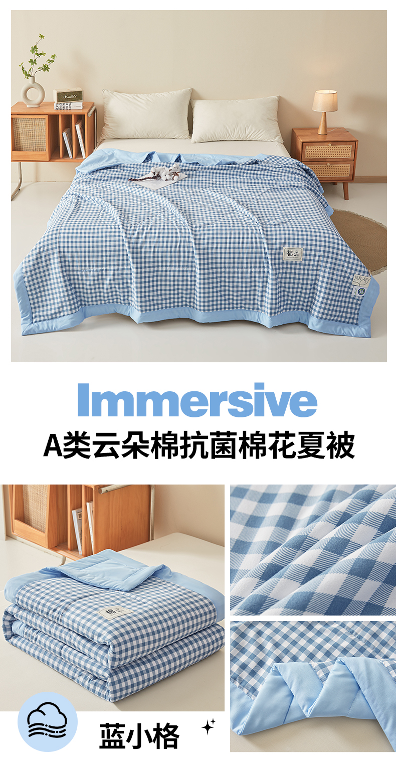魅图家纺 2025新款A类云朵棉抗菌棉花夏被 复古格