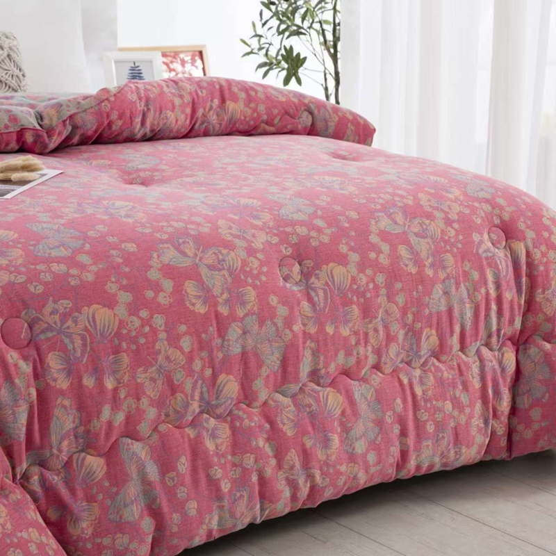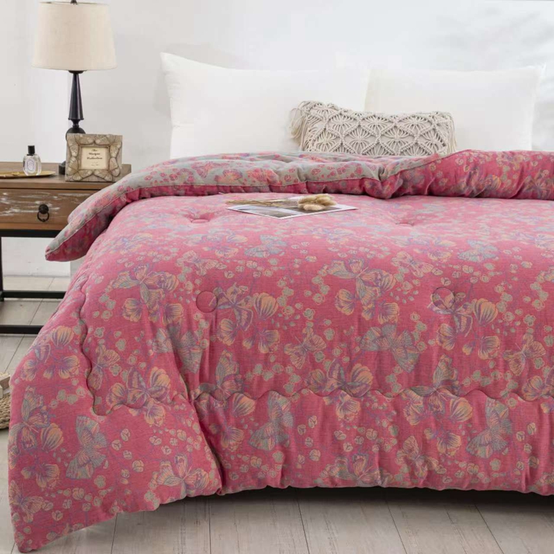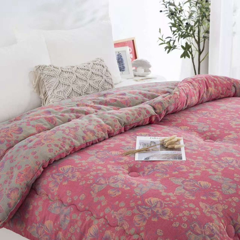 双层纱家居 2025新款双层纱大豆被夏被春秋被冬被被子被芯蝴蝶粉
