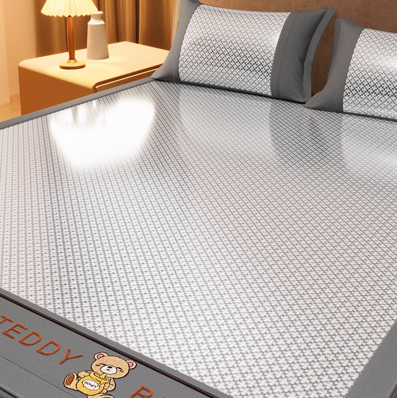 • 91家纺网 家纺一手货源 找家纺 席佬大 2025新款A级抗菌提花双面绣花床席床笠款冰藤席 泰迪熊-灰色-床席款