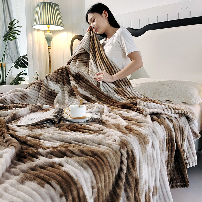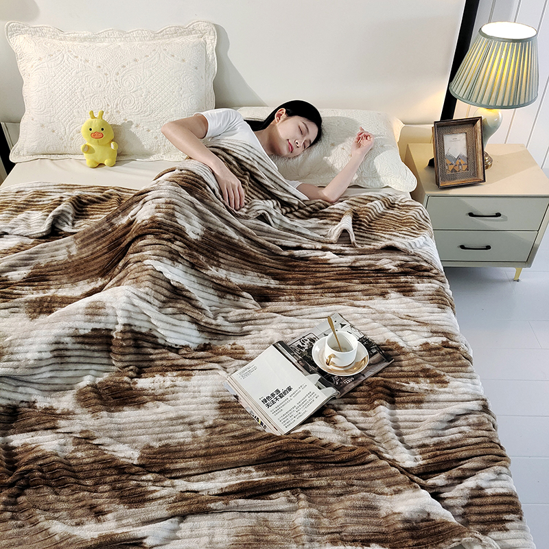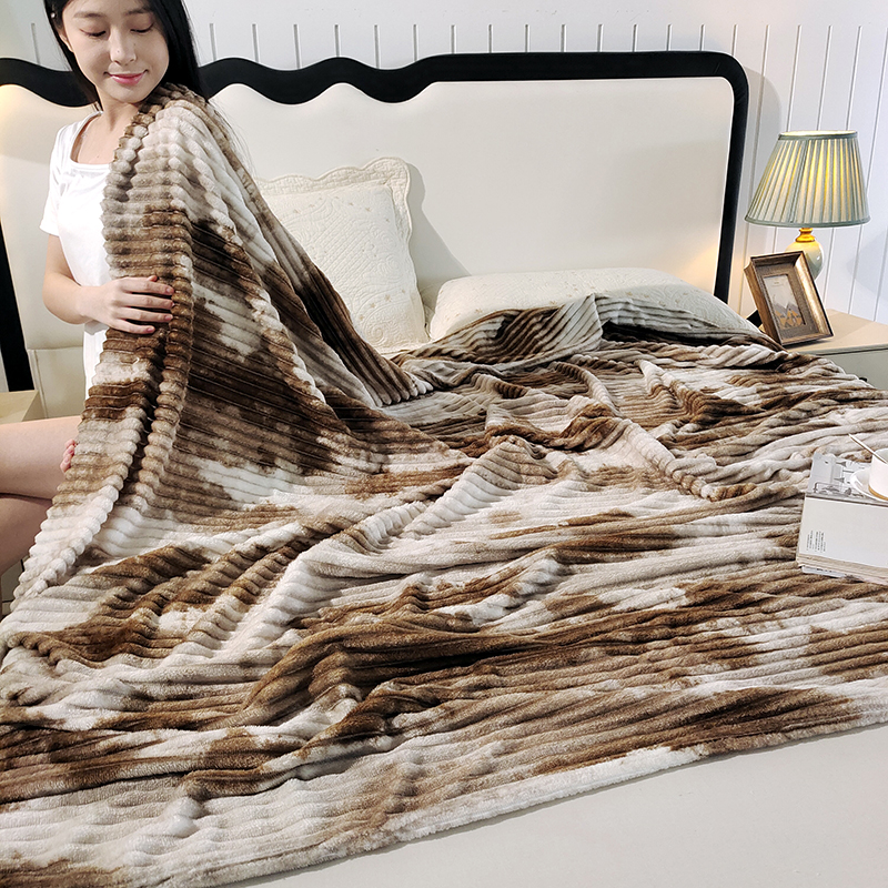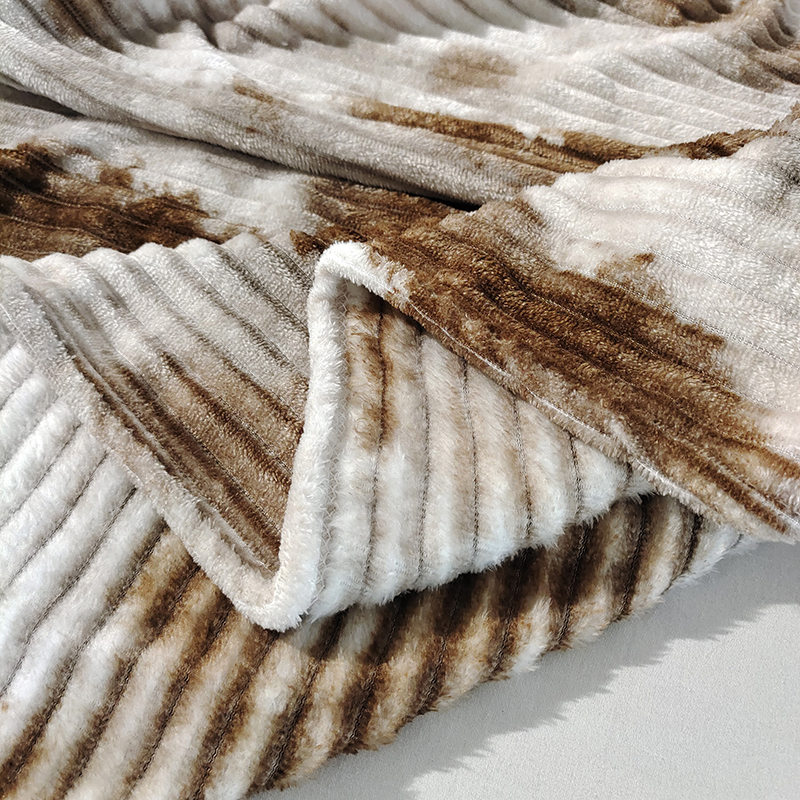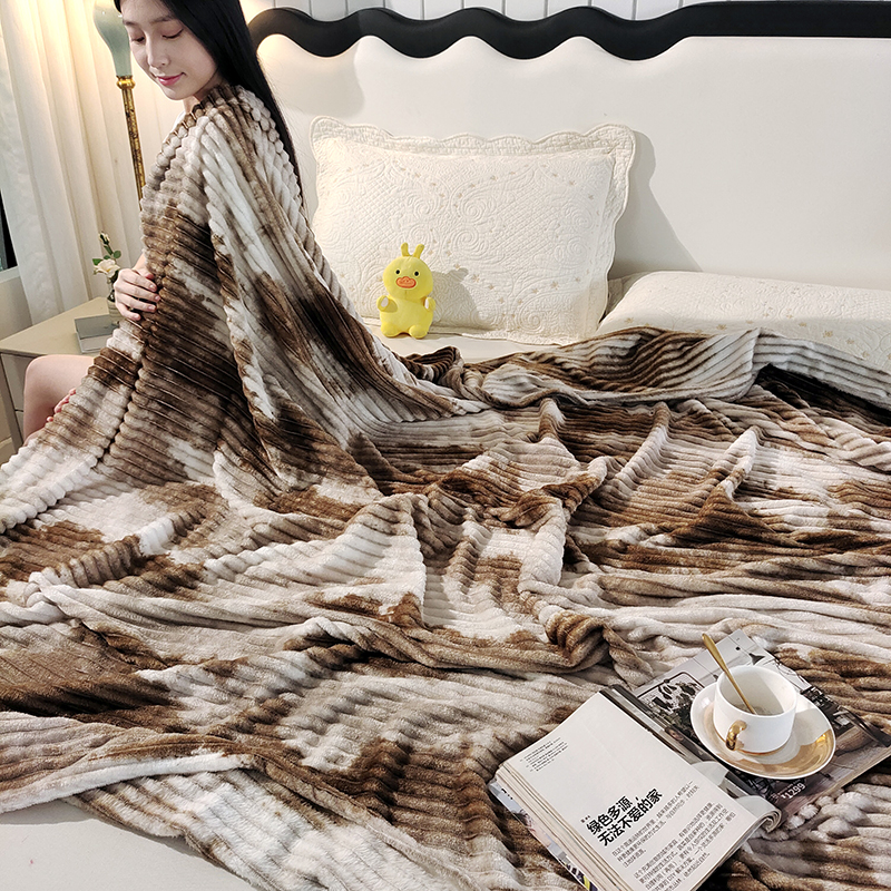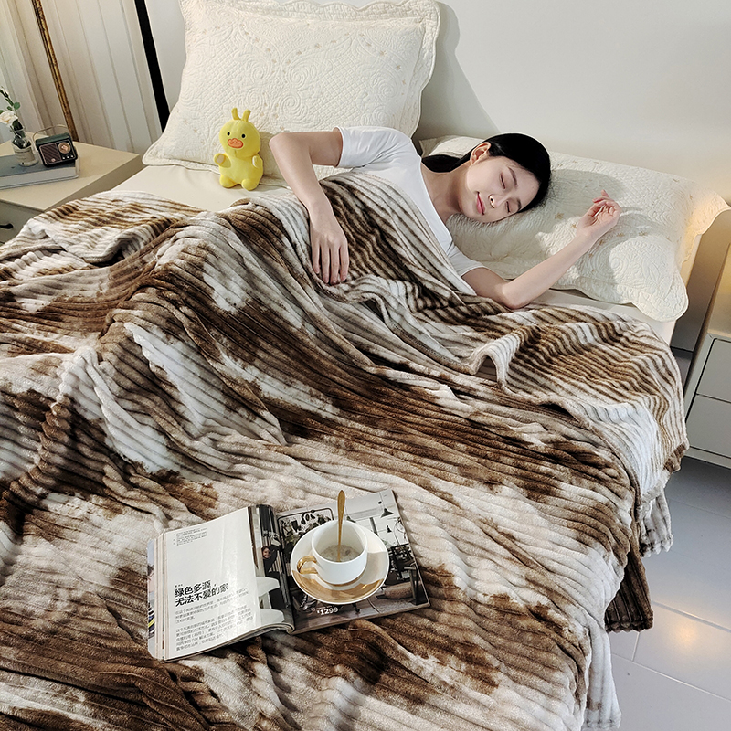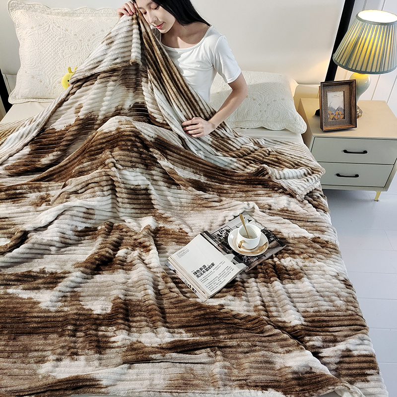 商品名称:巴木赫2025新款200g水墨印染抽条毛毯毯子 棕色