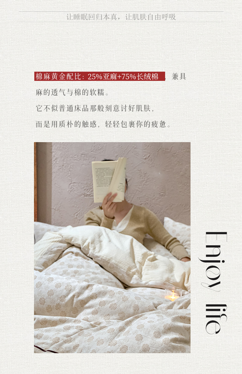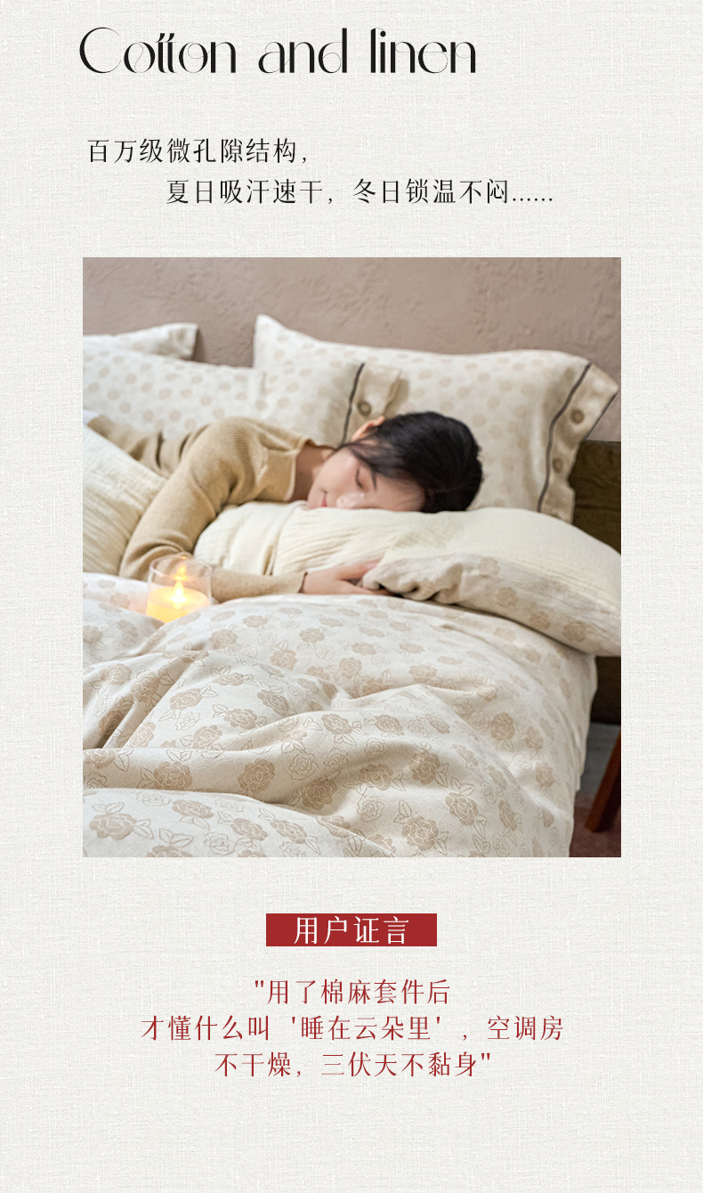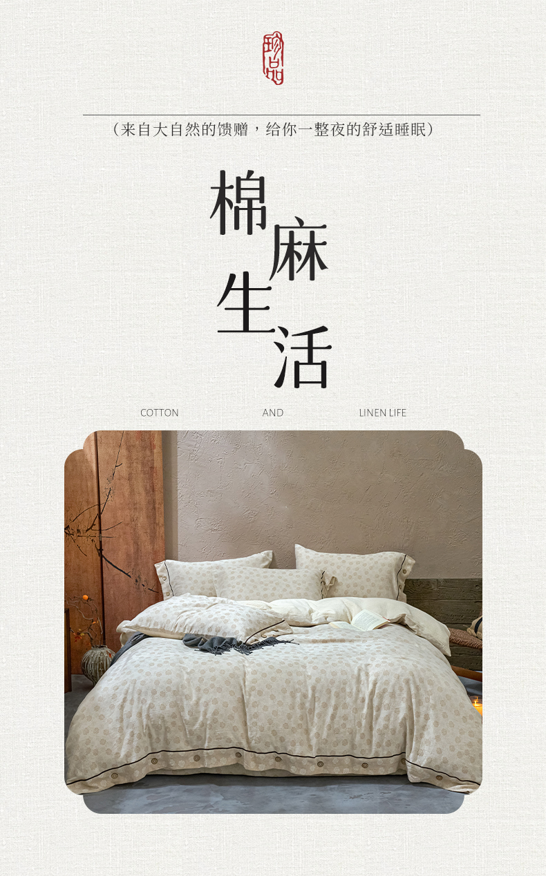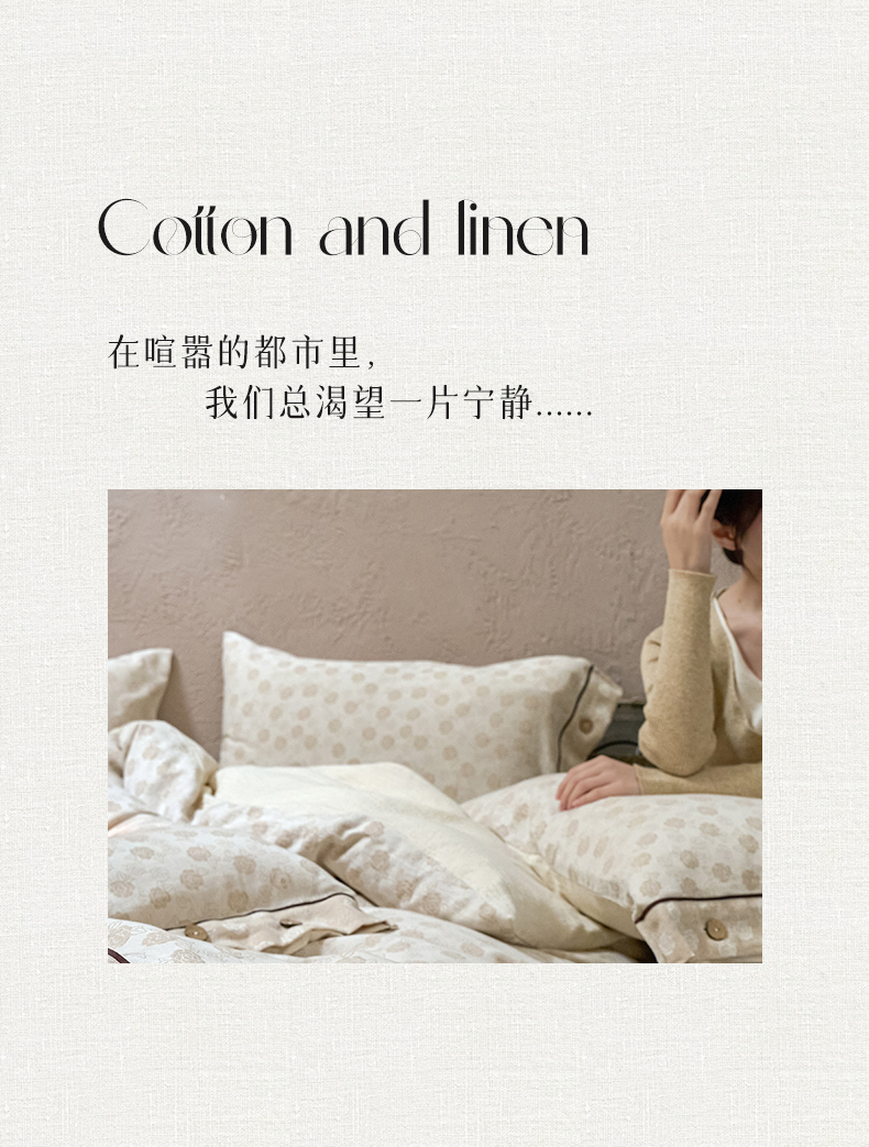 春皖家纺 2025新款棉麻大提花双层纱系列四件套-纽扣款 愫朵