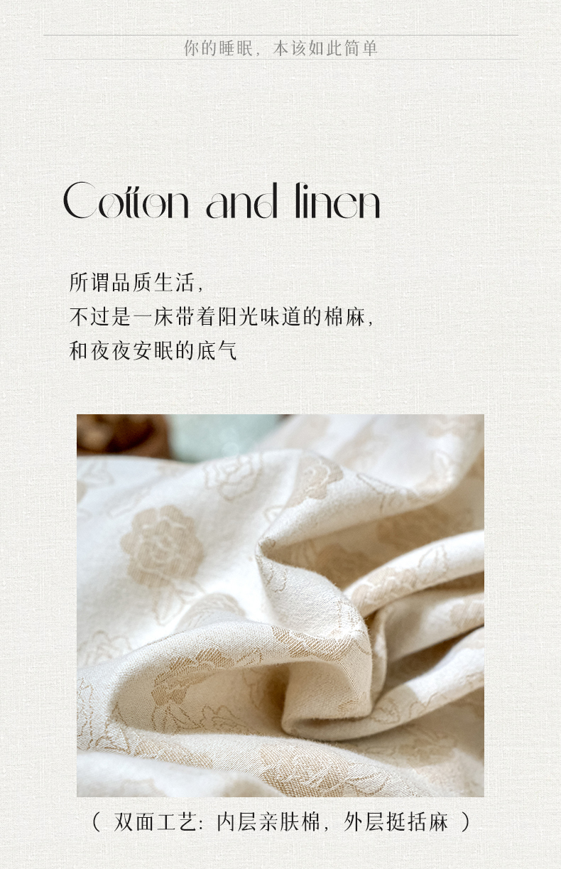 商品名称:春皖家纺 2025新款棉麻大提花双层纱系列四件套-纽扣款 愫朵