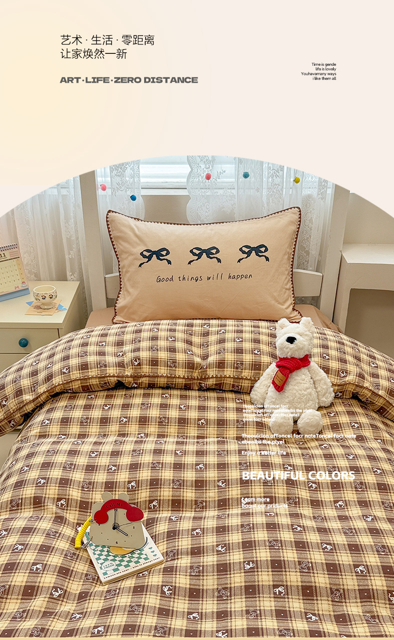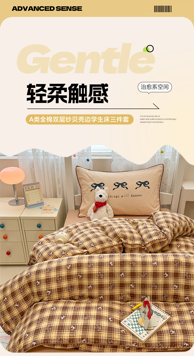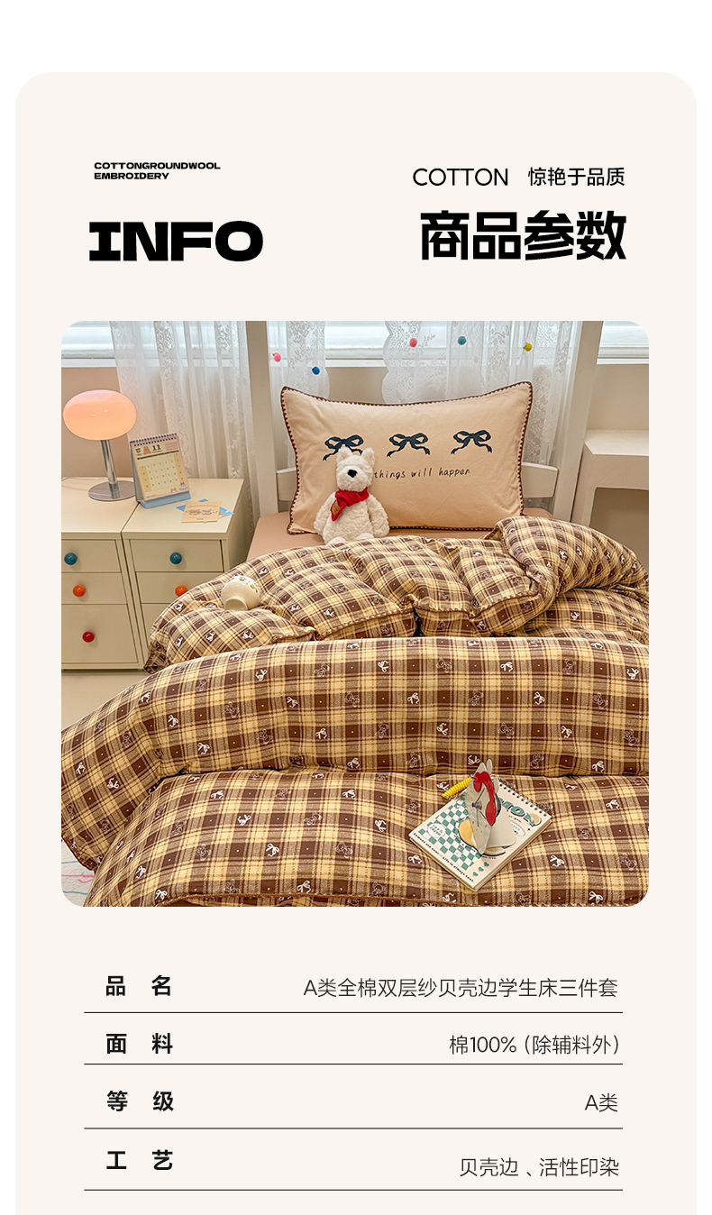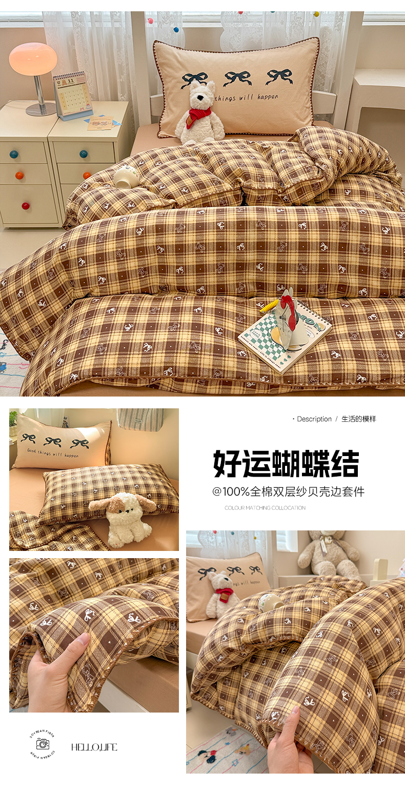 当前位置: 91家纺网 > 商品网购 > 床品套件 > 三件套 > 沐辰 2025新款全棉双层纱A类贝壳边学生床三件套 好运蝴蝶结
