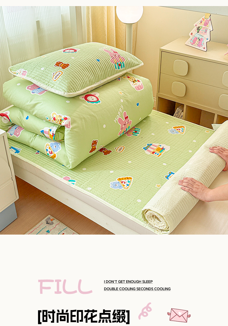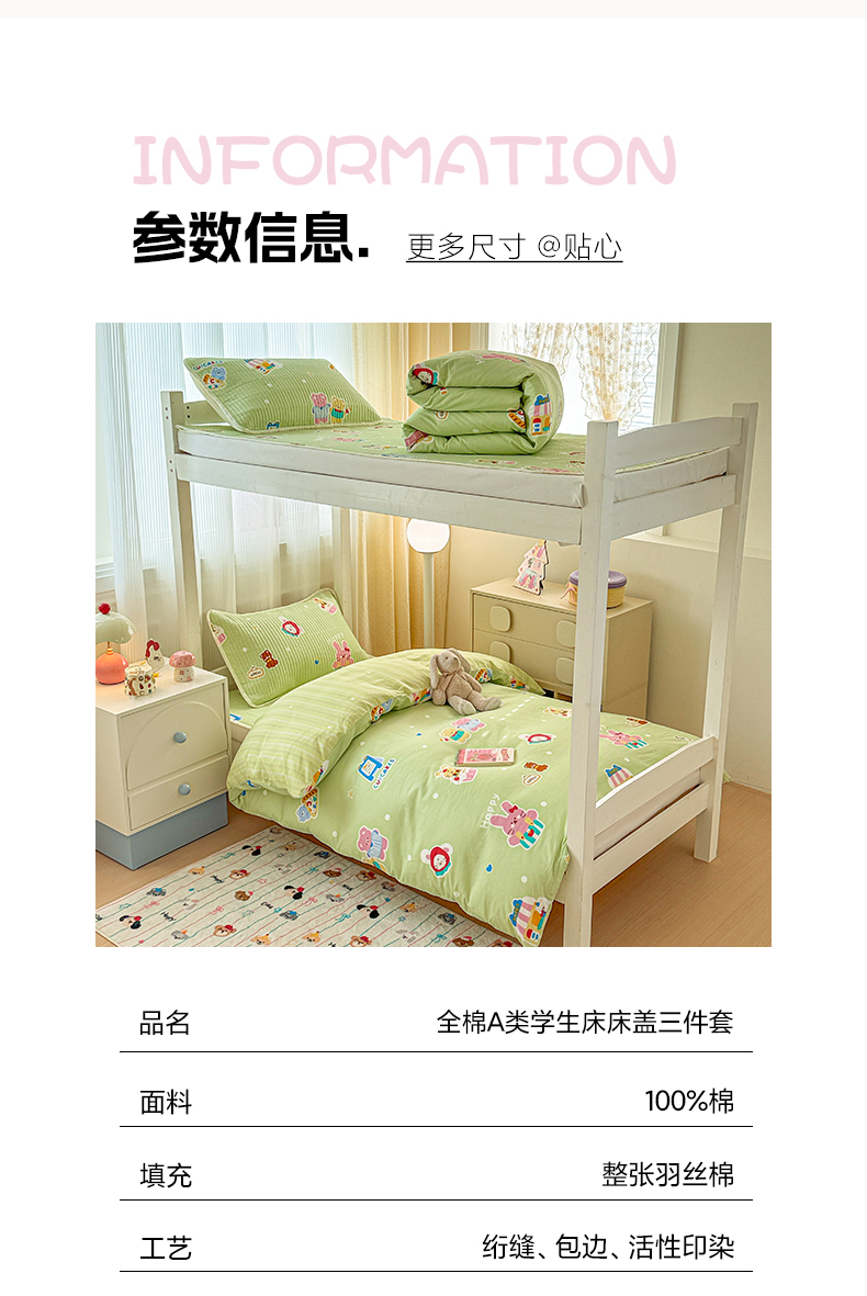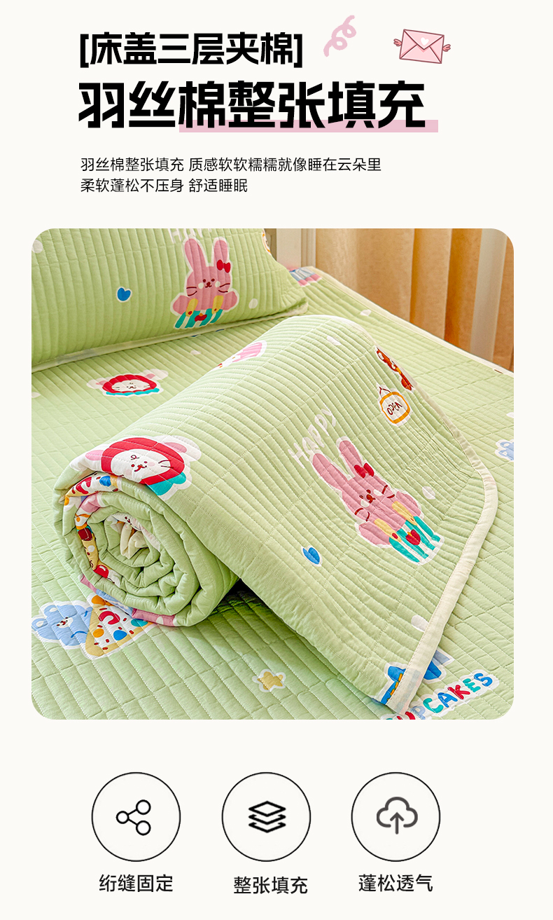 当前位置: 91家纺网 > 商品网购 > 床品套件 > 三件套 > 沐辰 2025春夏新款A类全棉纯棉学生床床盖三件套 青葱兔