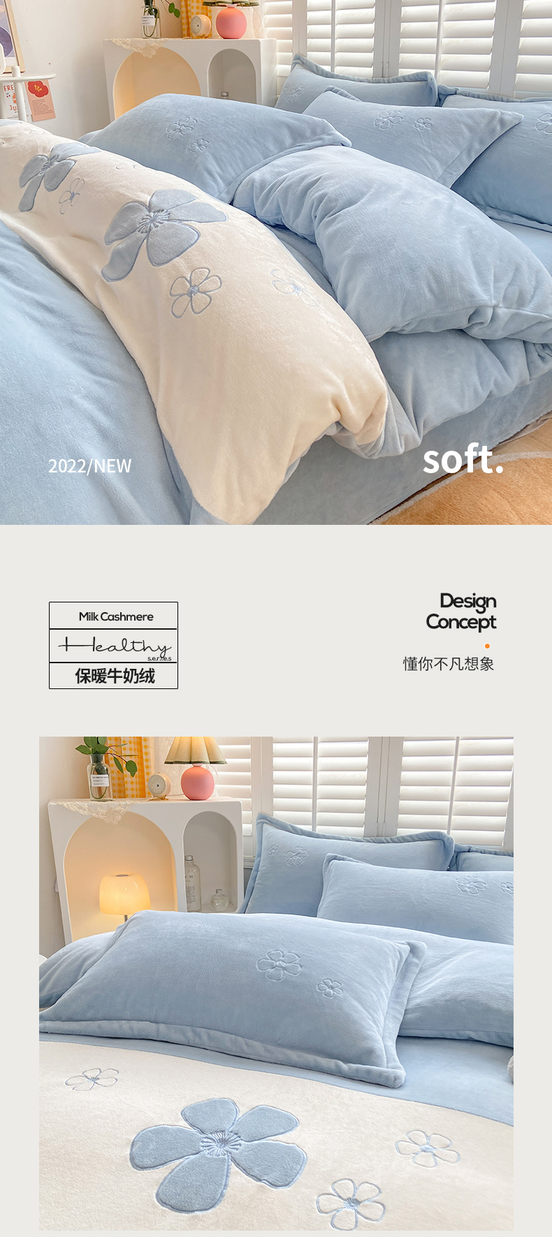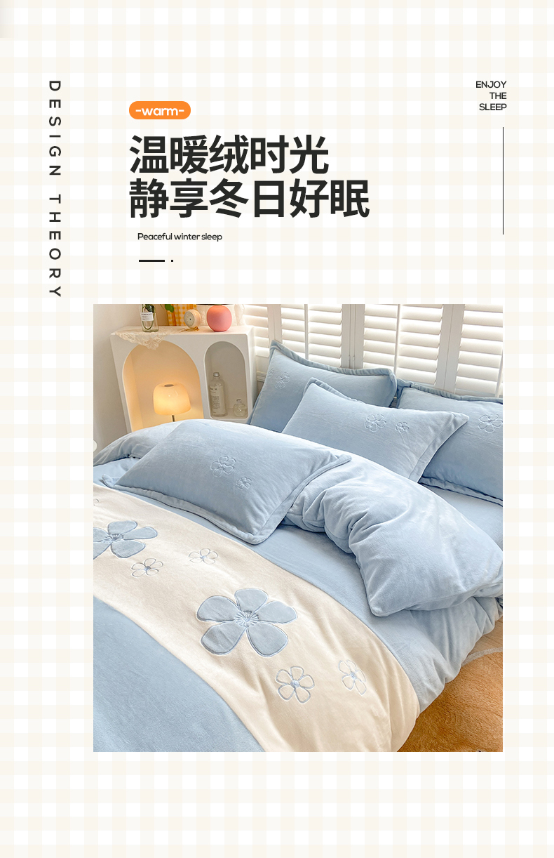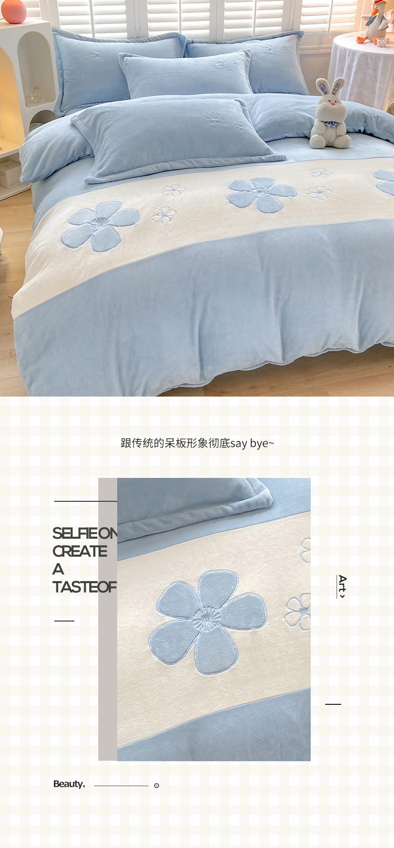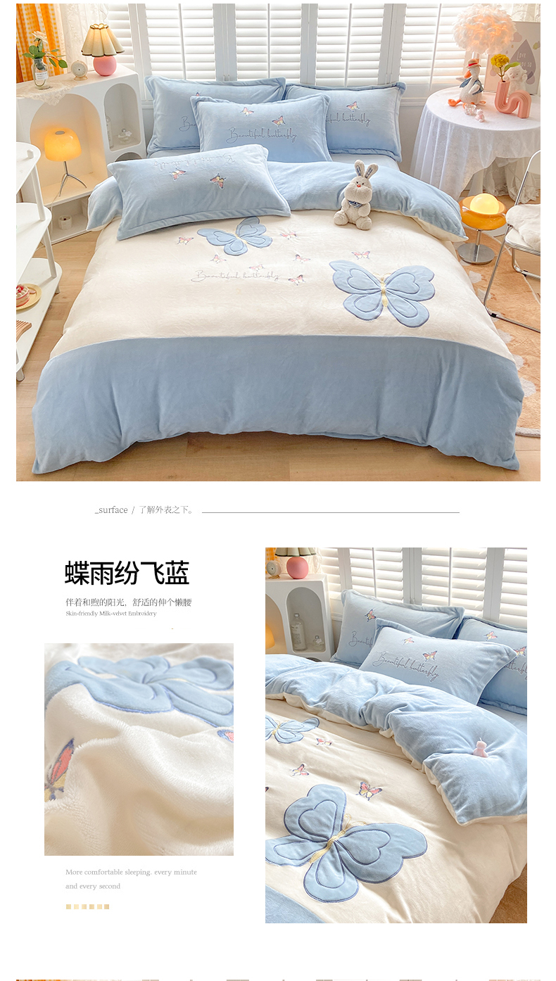 当前位置: 91家纺网 > 商品网购 > 床品套件 > 四件套 > 牛奶绒四件套 > 你好美丽 2025新款200克牛奶绒刺绣四件套 花香四溢蓝