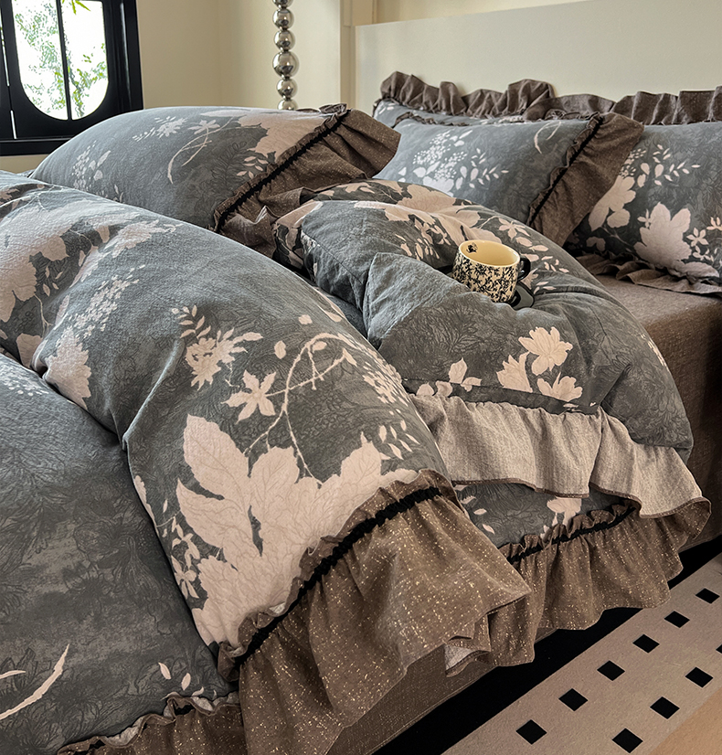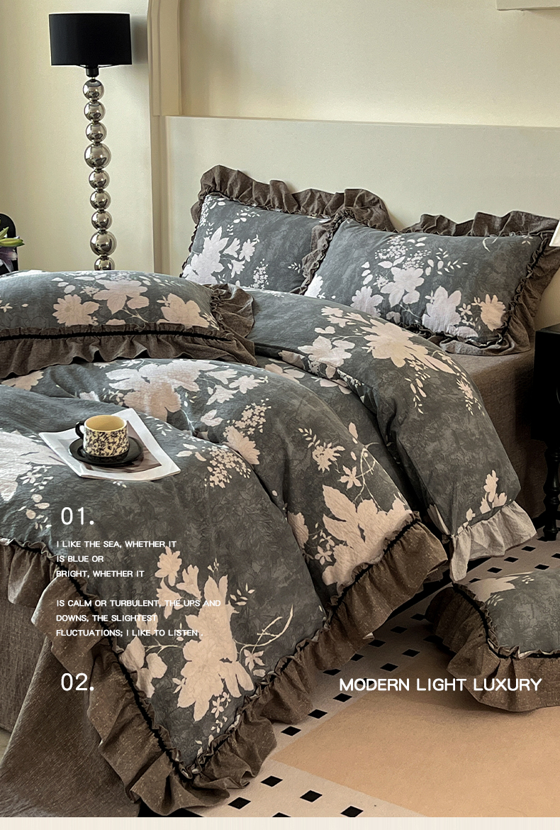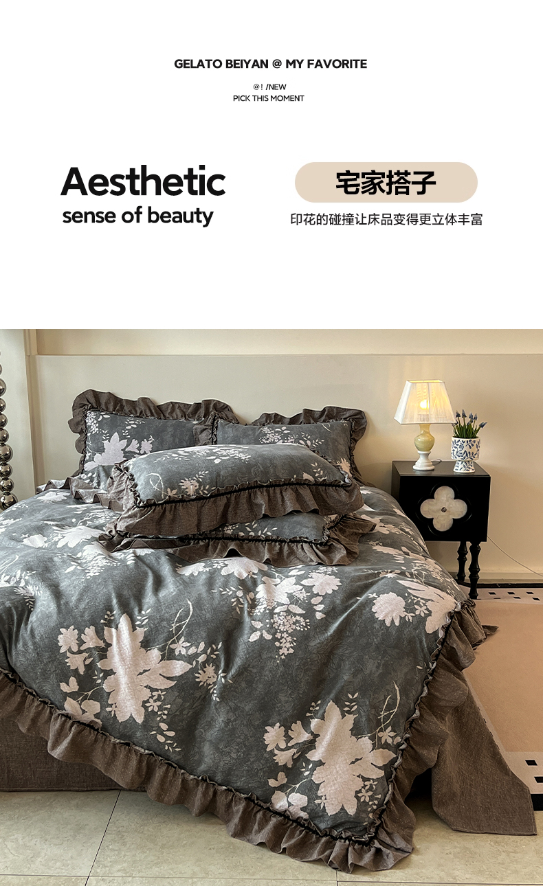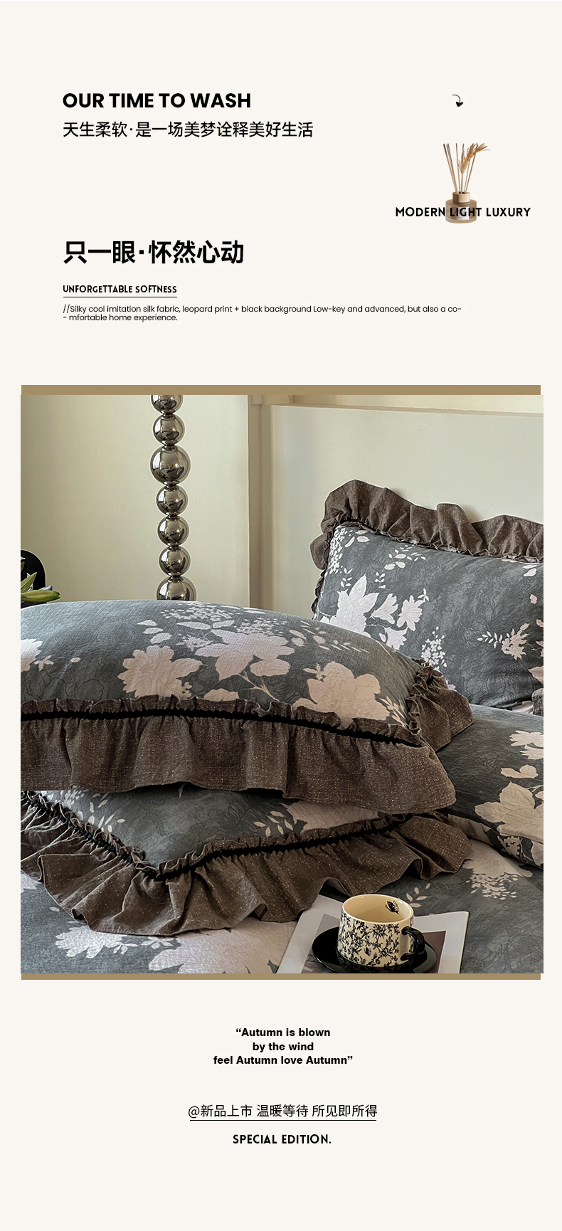 当前位置: 91家纺网 > 商品网购 > 床品套件 > 四件套 > 其它四件套 > 喜颜 2025新款亚麻爆款花边四件套-直播热款 兰亭序-灰