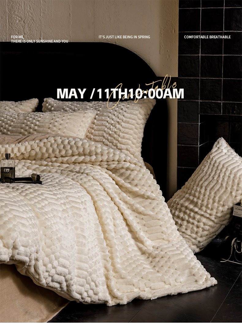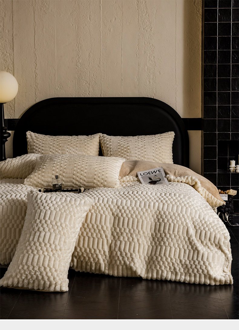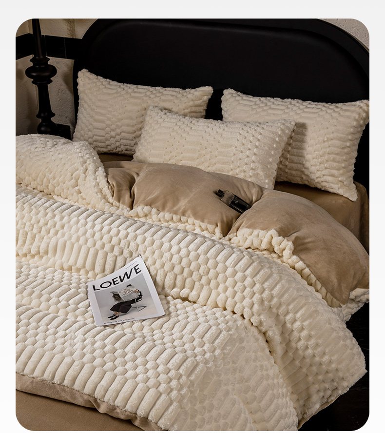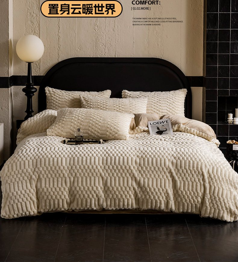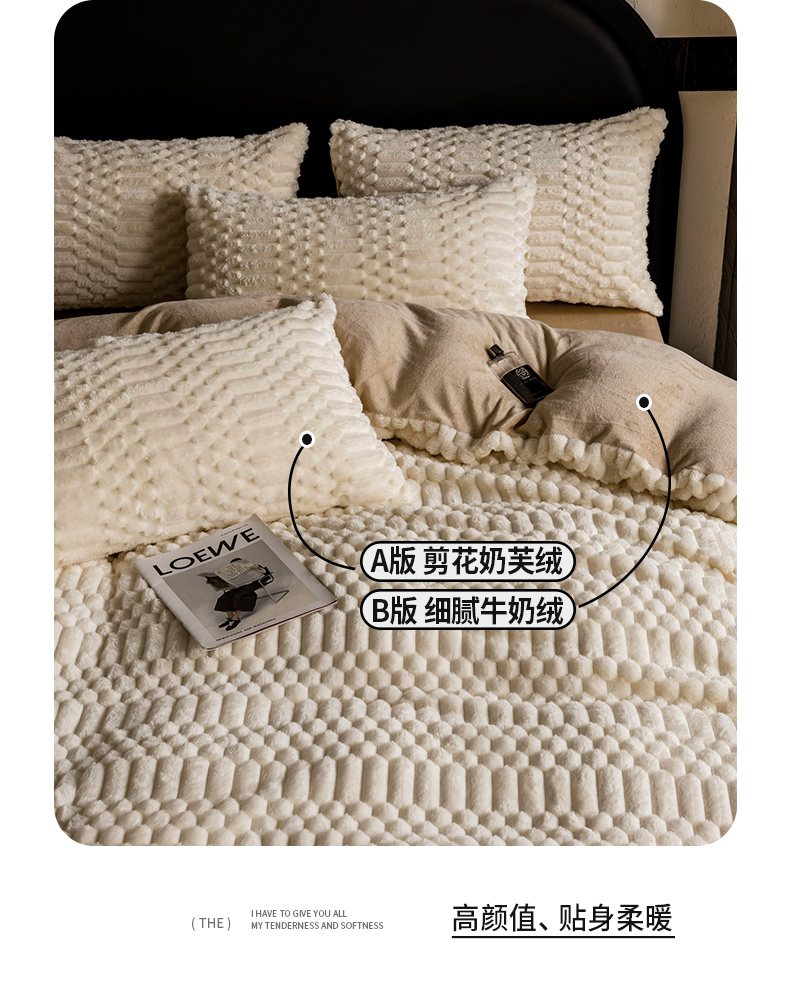 当前位置: 91家纺网 > 商品网购 > 床品套件 > 四件套 > 牛奶绒四件套 > 潮邦创意家居 2025新款冬季提花奶芙绒牛奶绒四件套-暖绒奶芙系列 暖绒奶芙-米咖