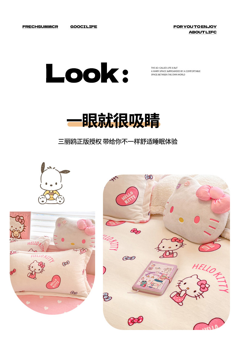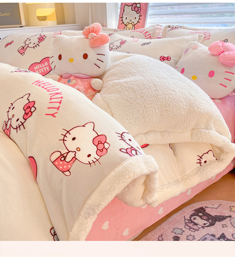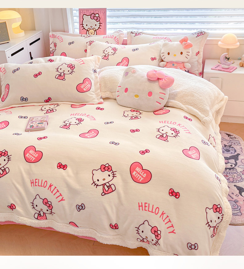 当前位置: 91家纺网 > 商品网购 > 床品套件 > 四件套 > 牛奶绒四件套 > 暮思家居 2025新款三丽鸥正版授权少女可爱卡通加厚牛奶绒羊羔绒毛毯多功能四季毛毯四件套 羊羔绒-蝴蝶结KT