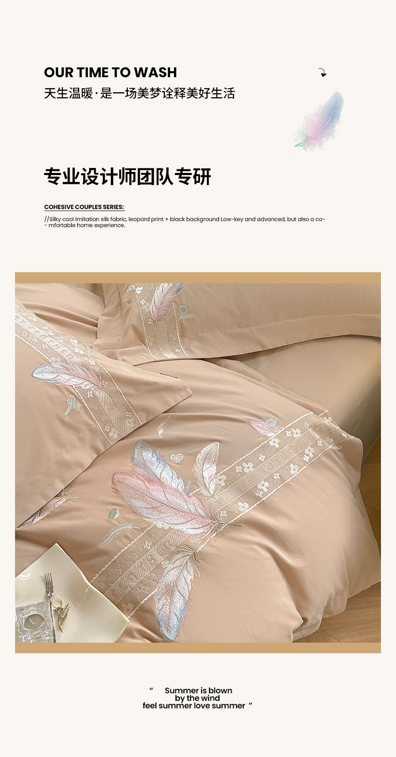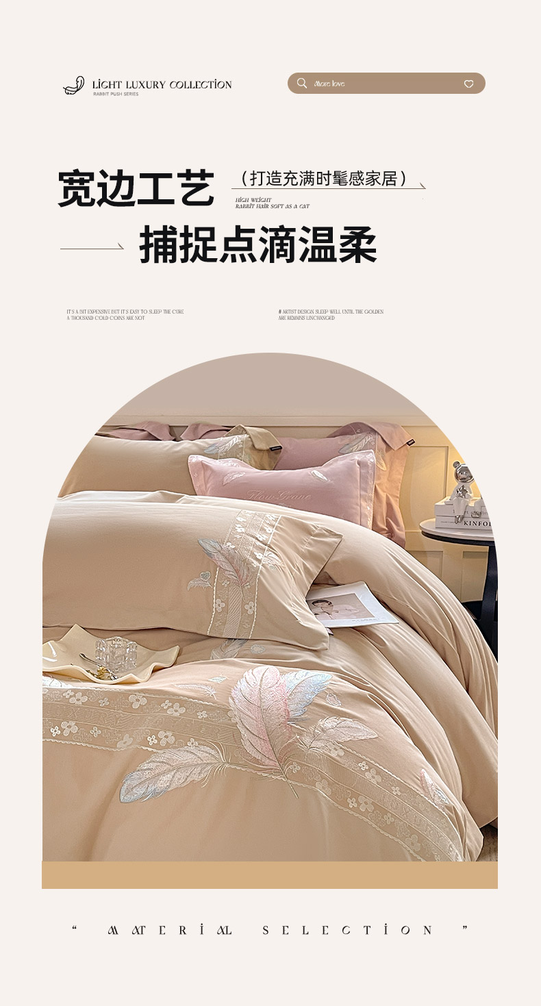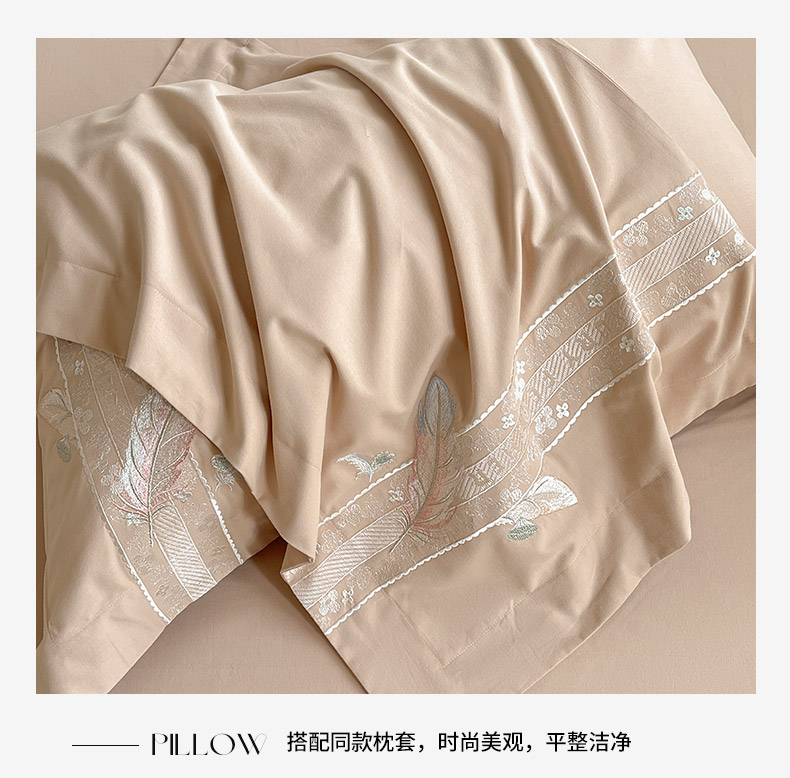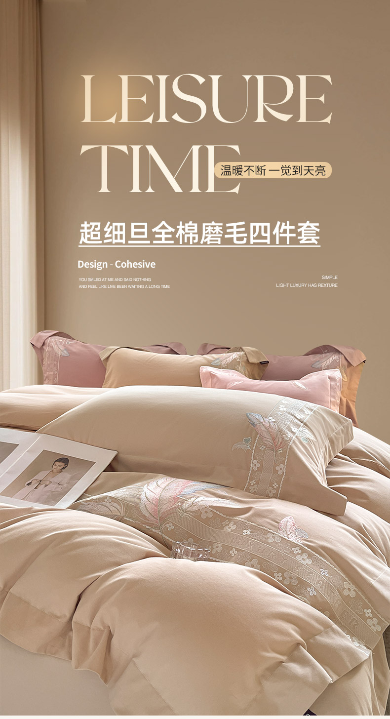 商品名称:2025秋冬新品A类加厚保暖全棉磨毛四件套纯棉被套重工刺绣轻奢床笠款直播热款床上用品 缦禾-拿铁