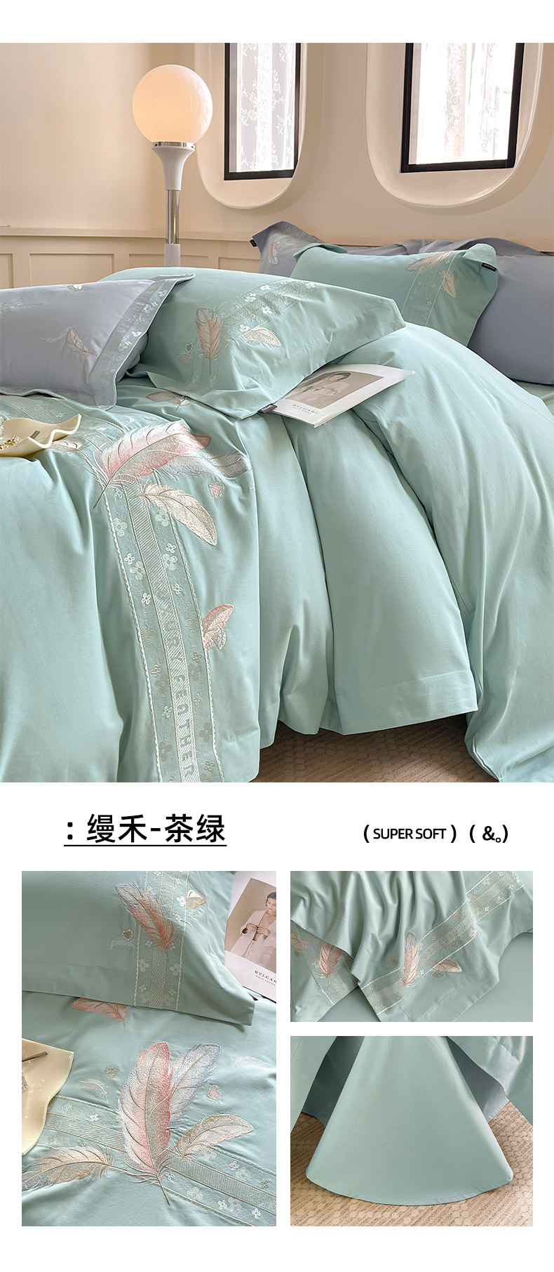 (总)乔利卡沃 2025新款直播爆款A类加厚保暖全棉纯棉磨毛四件套纯棉重工刺绣被套冬季床上用品,绮影-冰清绿,绮影-初恋粉,绮影-美人杏,绮影-时尚灰,绮影-天空蓝,绮影-香芋紫