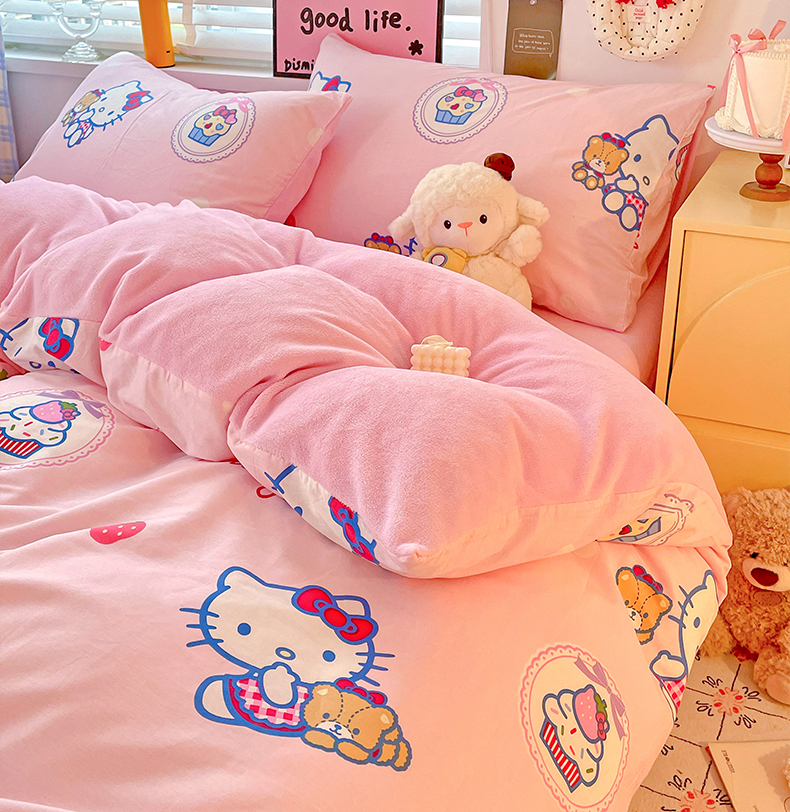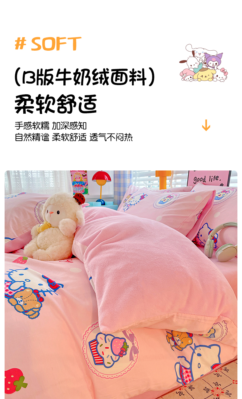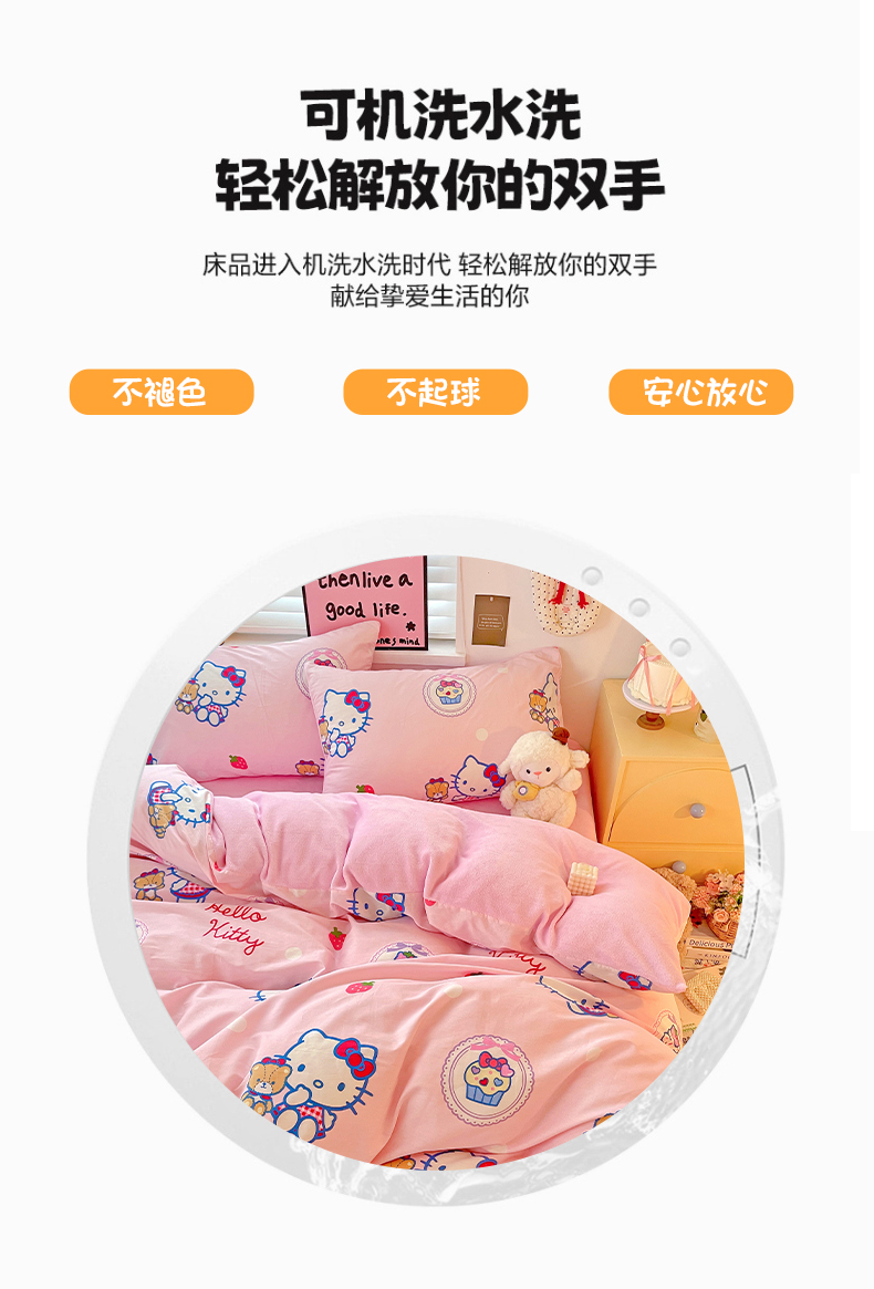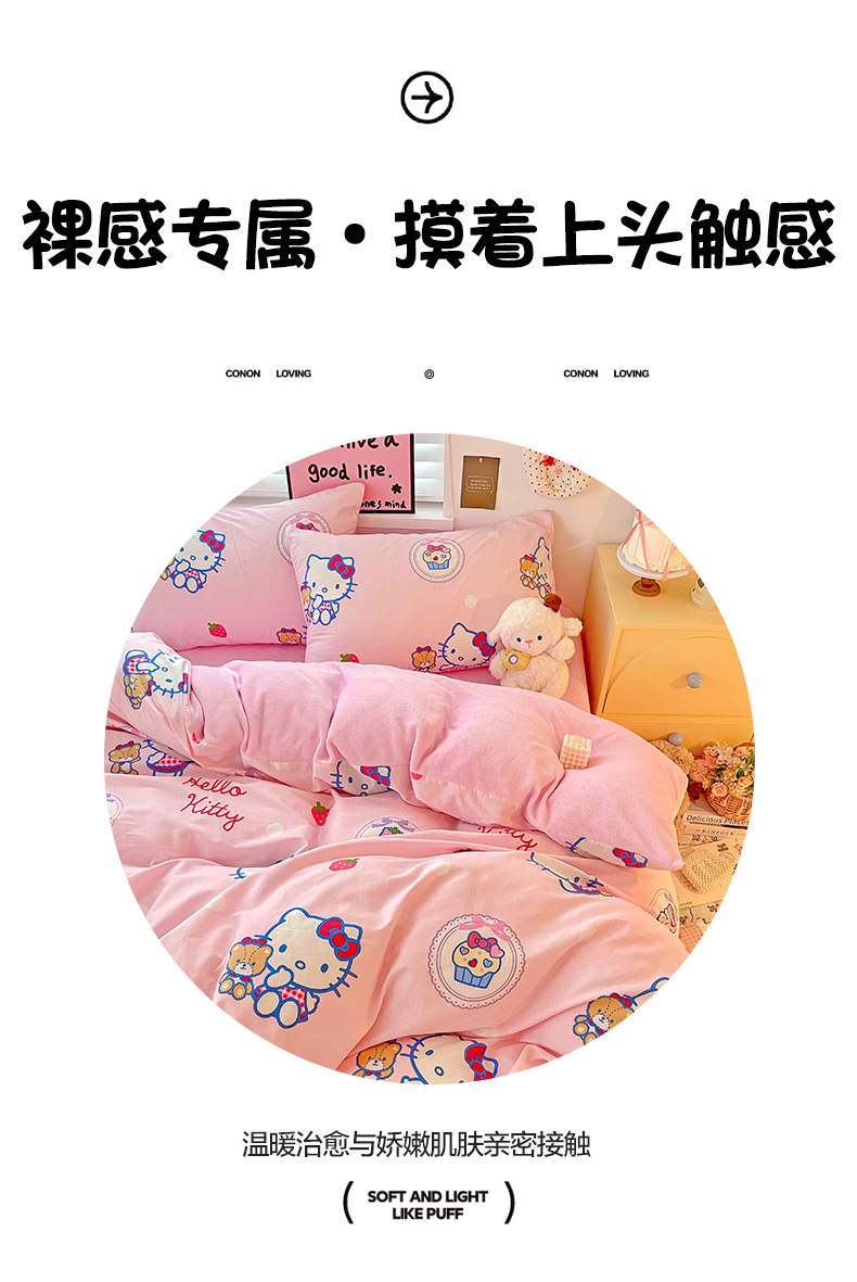 商品名称:朵希曼 2026新款棉绒卡通三丽鸥棉加绒印花系列四件套 幸福熊凯蒂