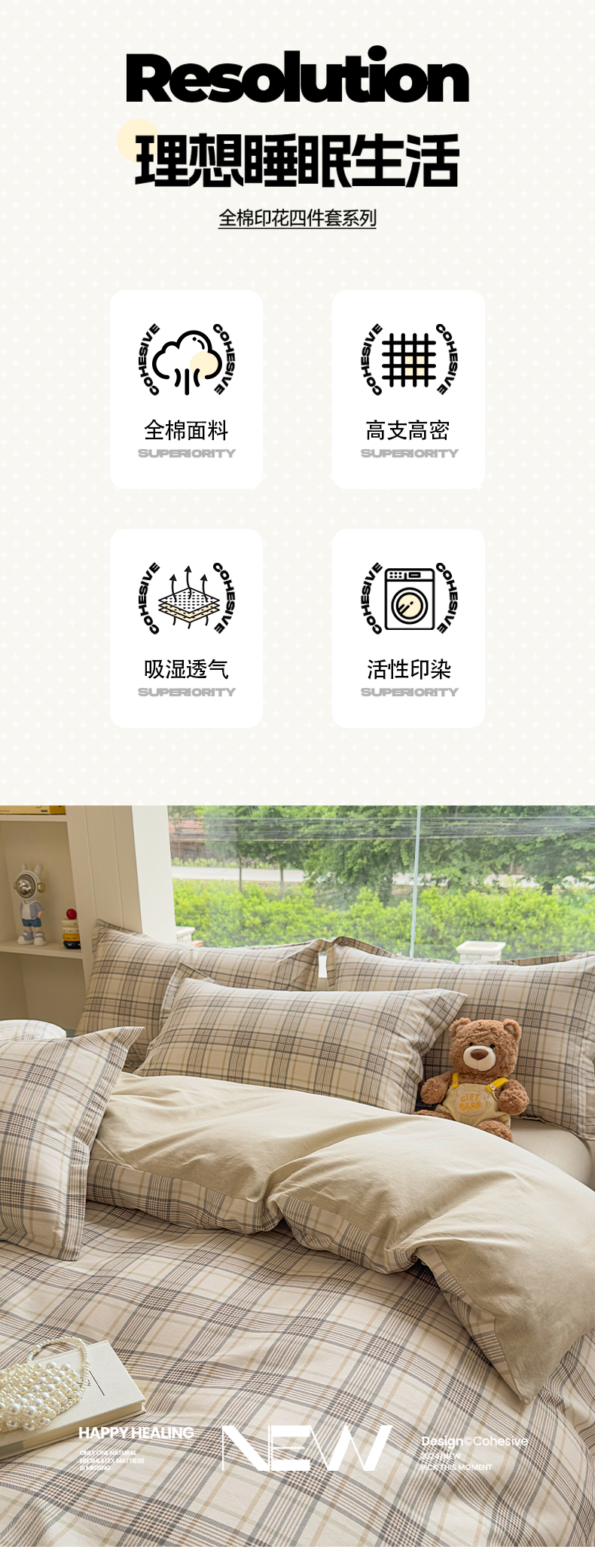 当前位置: 91家纺网 > 商品网购 > 床品套件 > 四件套 > 全棉普通四件套 > 鑫宇 2025新款全棉纯棉13372小清新印花四件套 美拉德