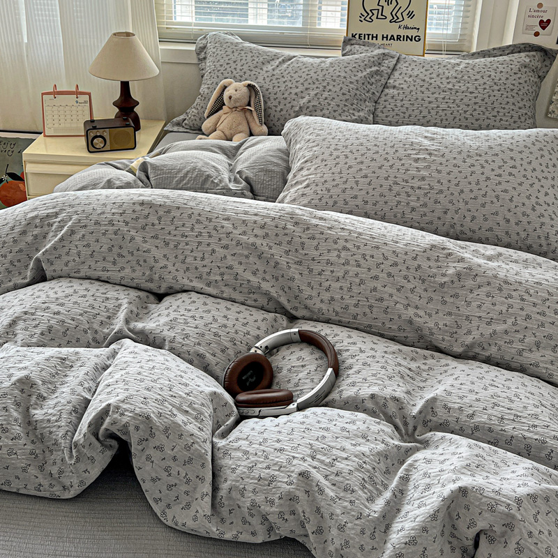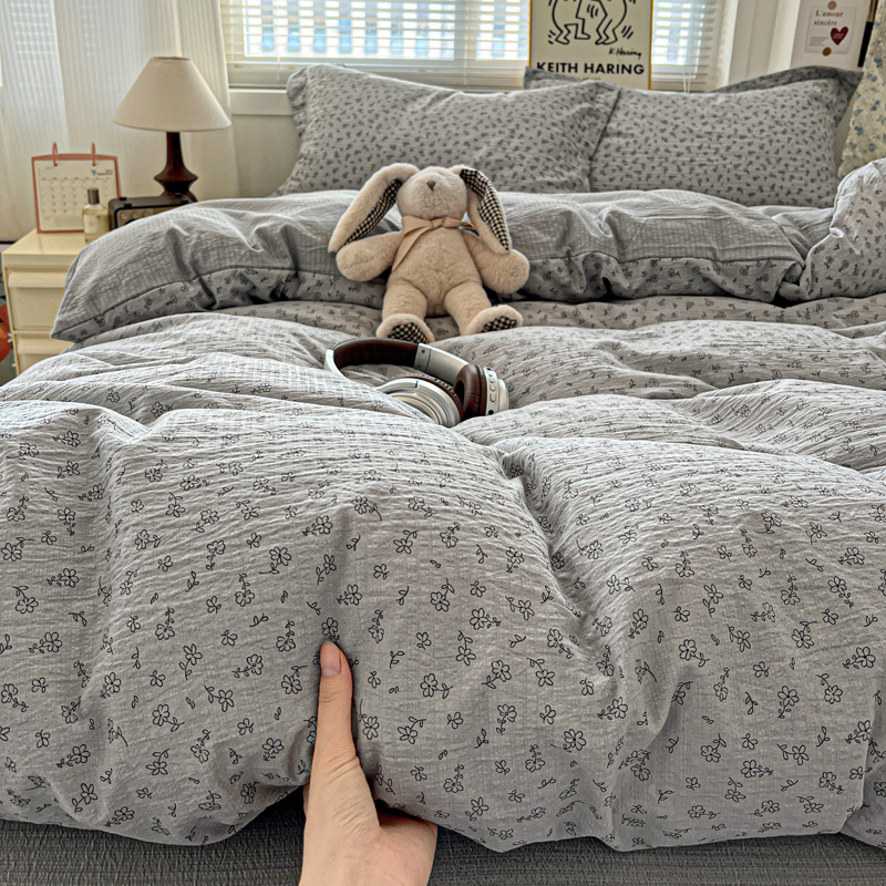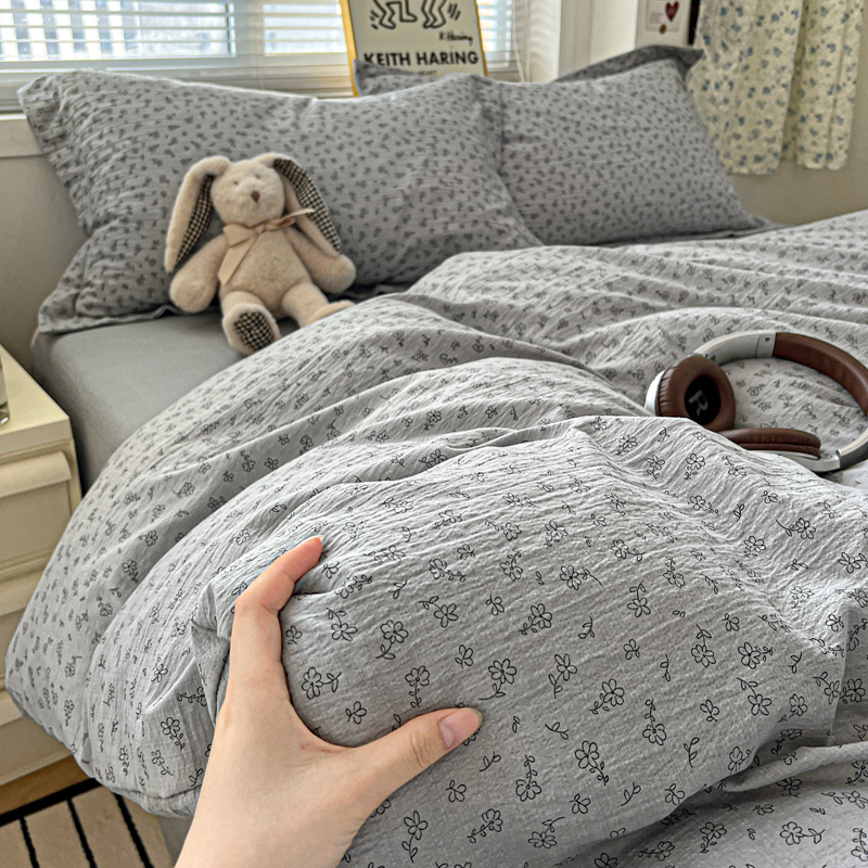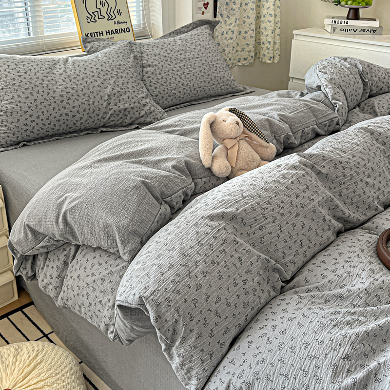 商品名称:仟网汇 2025新款古法水洗棉小布袋四件套 复古灰花