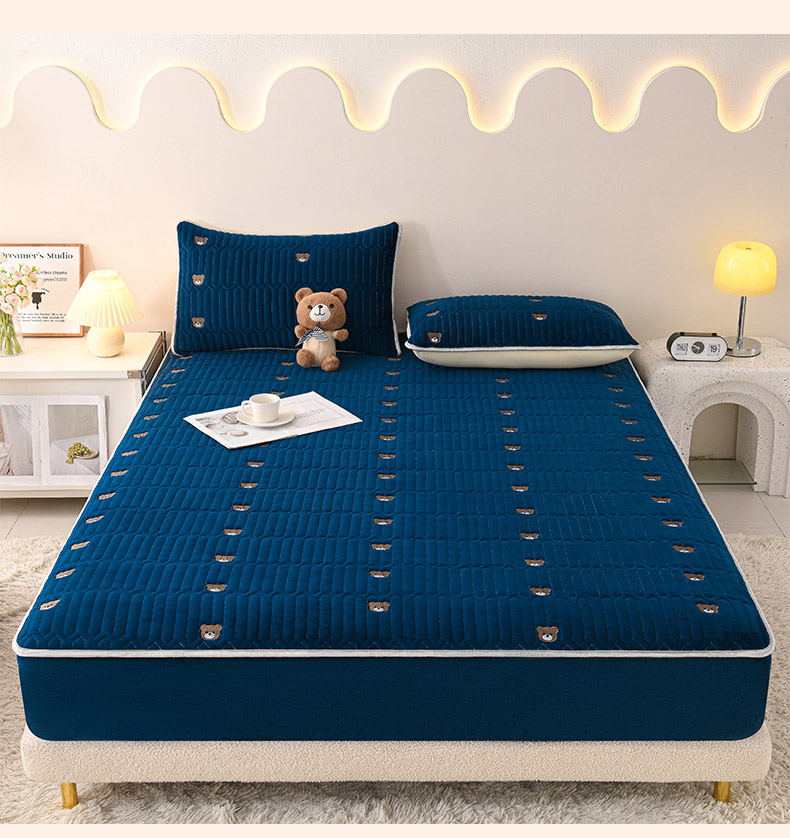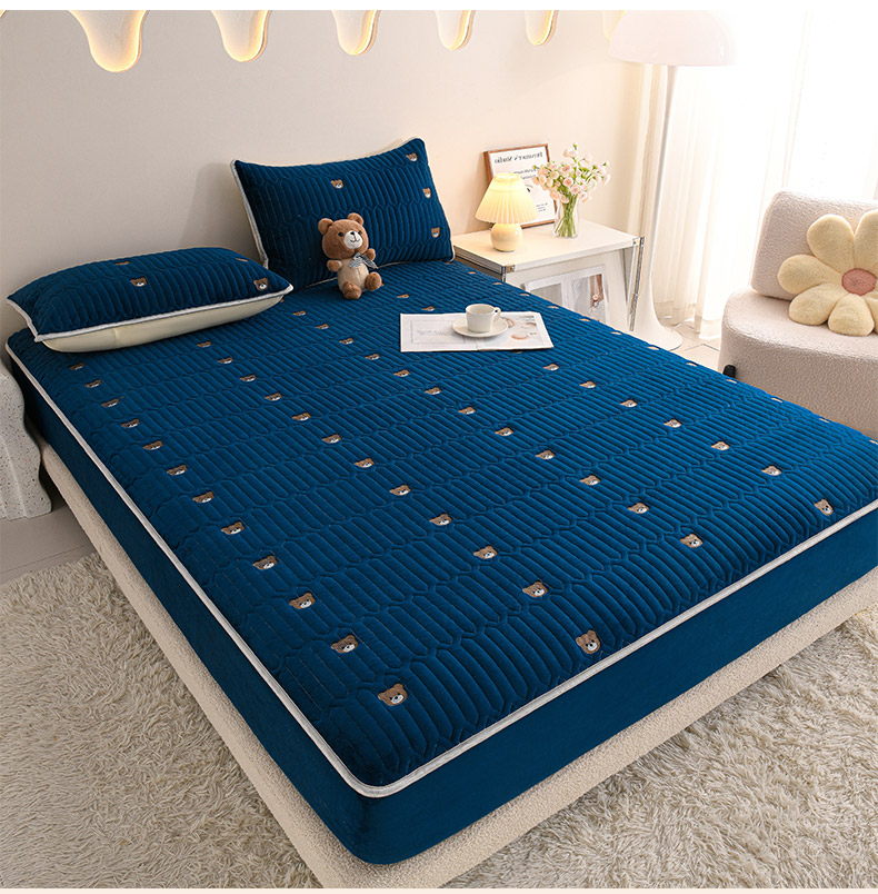 • 91家纺网 家纺一手货源 找家纺 推推家纺 2025新款刺绣夹棉宝宝绒床笠牛奶绒床垫保护套 三色熊-蓝色