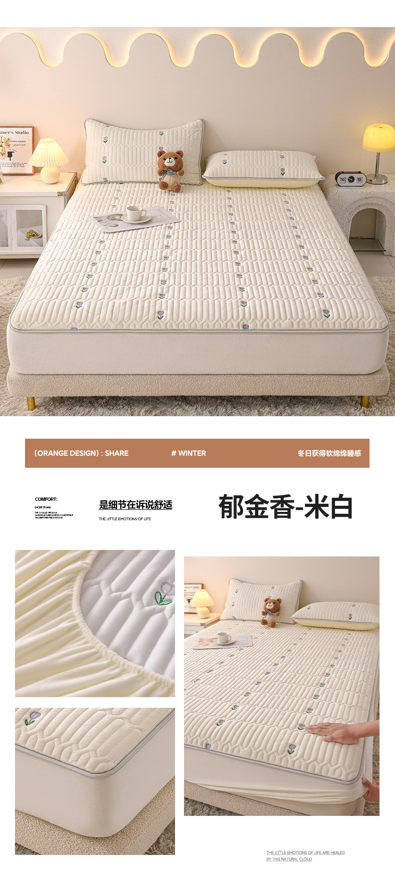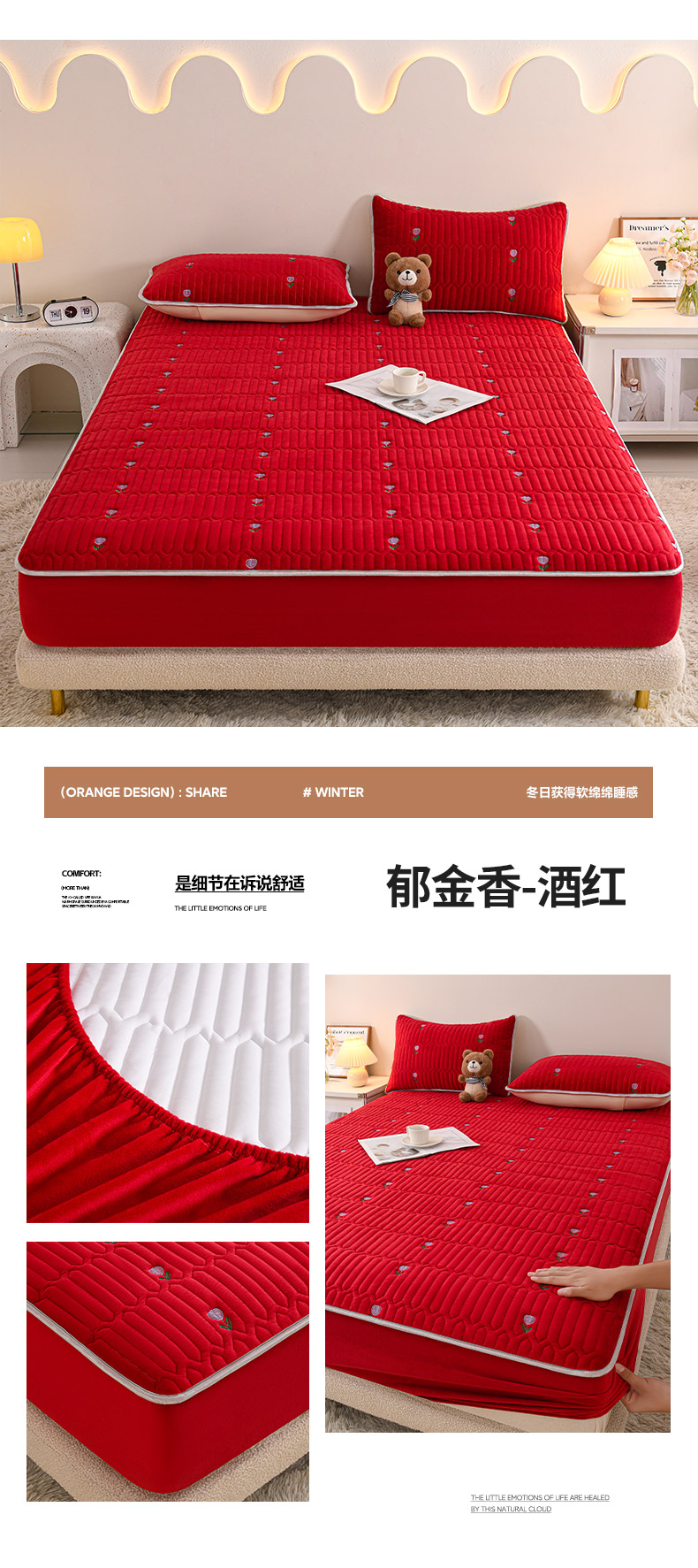 (总)推推家纺 2025新款刺绣夹棉宝宝绒床笠牛奶绒床垫保护套,三色熊-蓝色,郁金香-米白,郁金香-酒红,郁金香-蓝色,郁金香-深灰,三色熊-酒红,三色熊-米白,三色熊-深灰