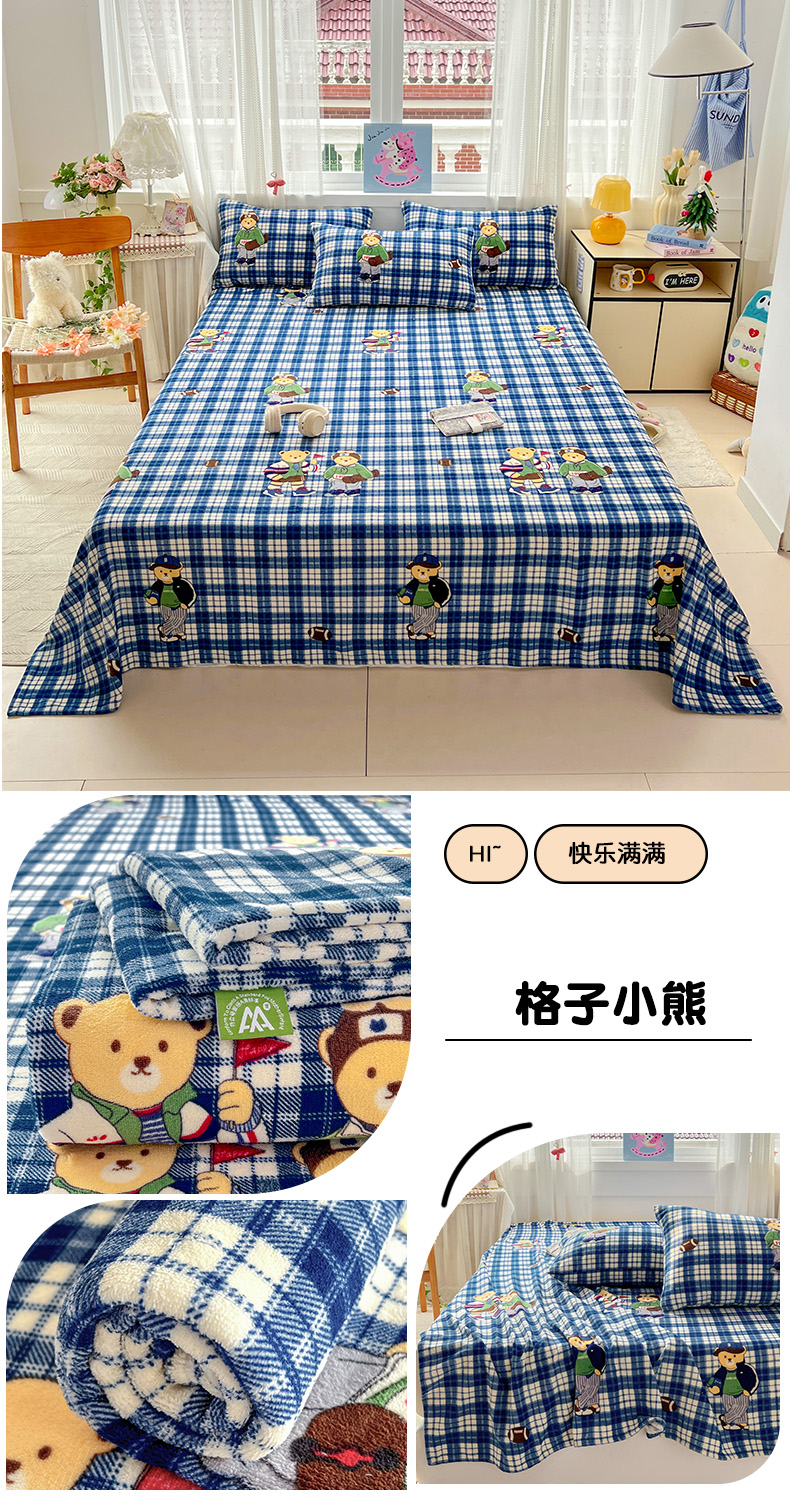 水木坊 2025新款亲肤舒适牛奶绒印花单件床单 开心小兔