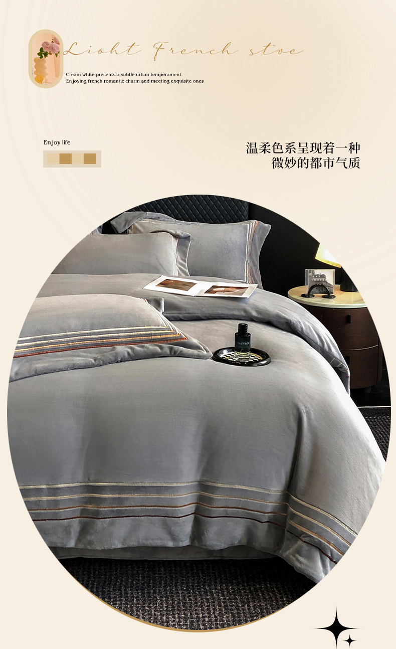 (总)星蕴家纺 2024新款220克全消光牛奶绒四件套-马德里,高级灰,贵族白,奶咖色,藕粉色