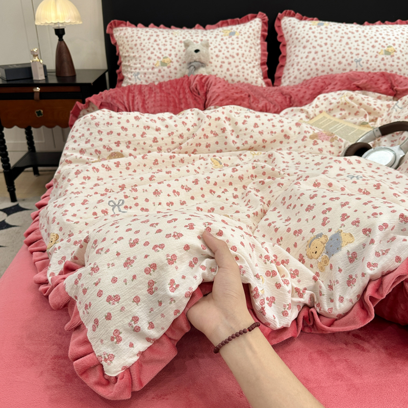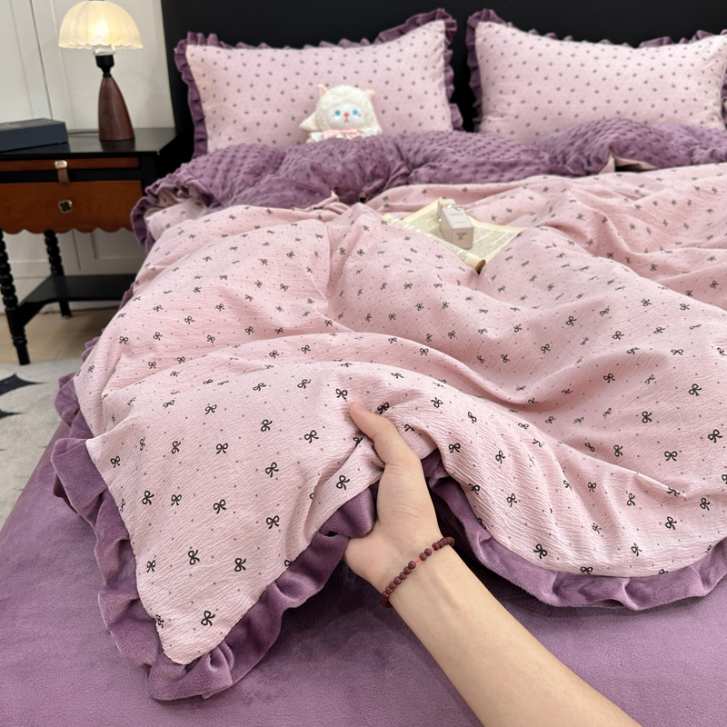 (总)仟网汇 2025新款亲肤舒适双面牛奶绒床盖款四件套,爱心灰,爱心紫,复古小花,黑珍珠,可可奶咖,蔷薇粉,丝绒蛋糕,胭脂,樱桃格趣,枝枝兔,妖姬,紫波点,豆蔻年华,朵缦,赫本,黑糖珍珠,樱桃派,豹纹kt咖