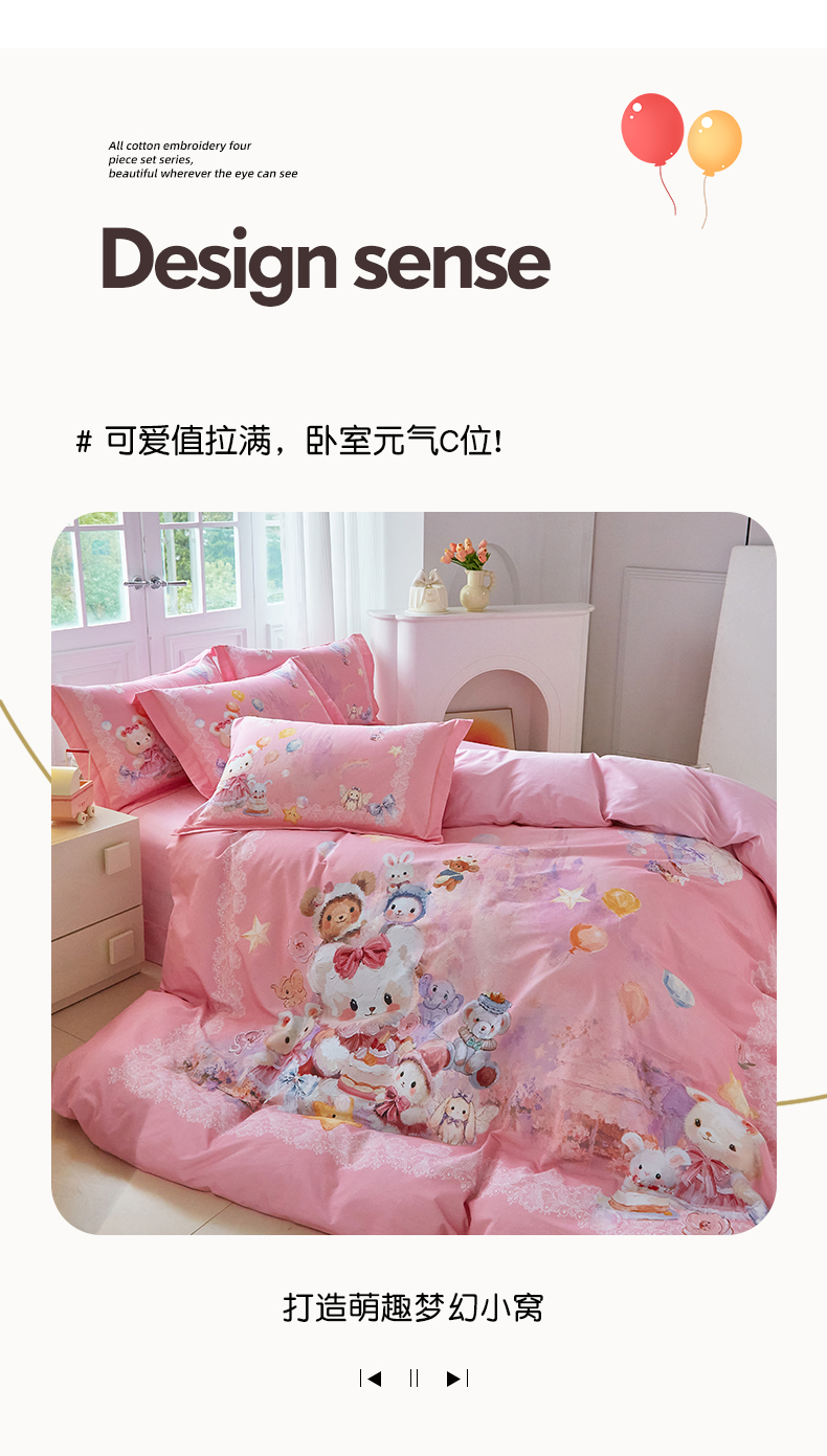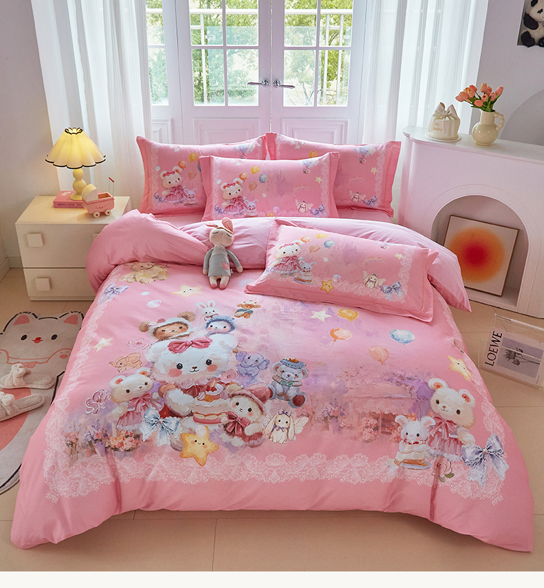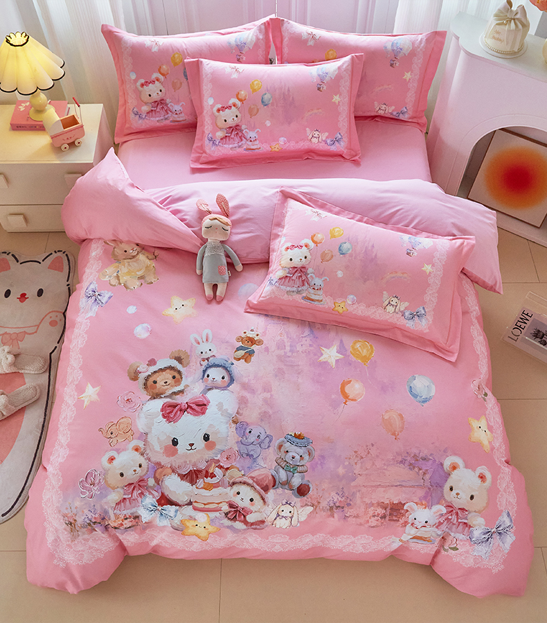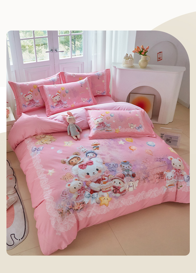 商品名称:格里芬家纺 2025新款全棉纯棉加厚油画风大版卡通印花四件套 (控价标准不低于238元) 魔仙宝-粉