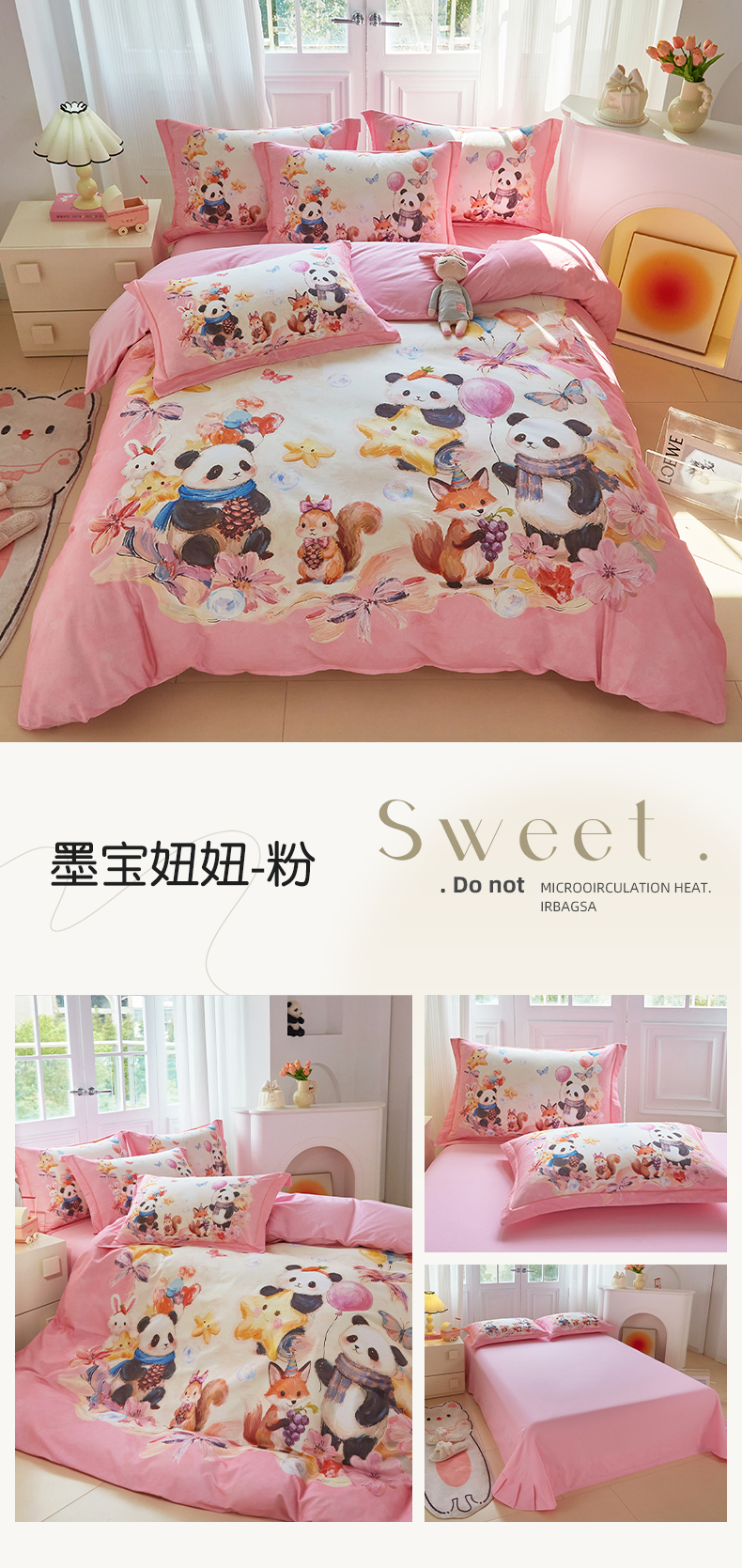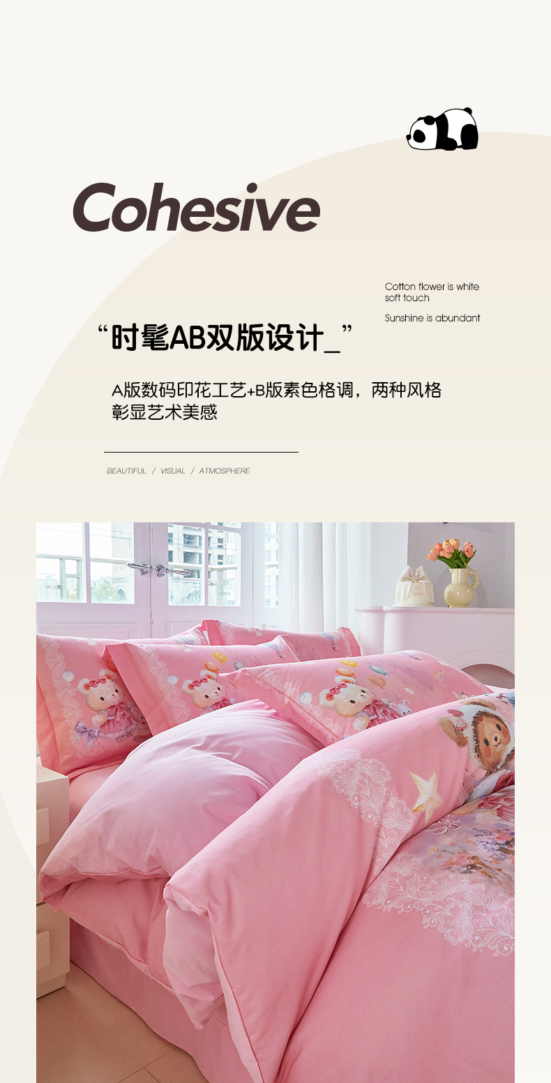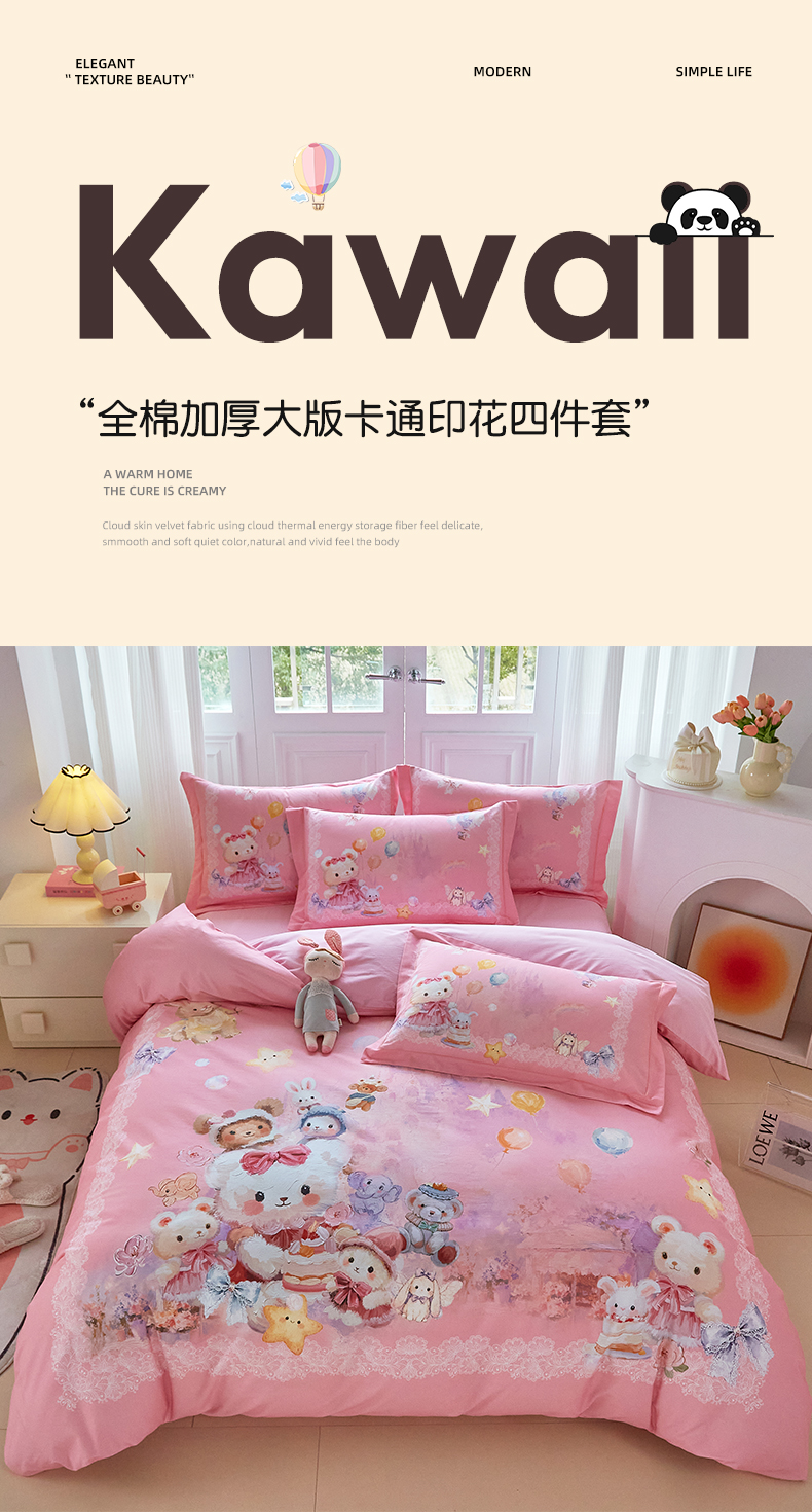 商品名称:格里芬家纺 2025新款全棉纯棉加厚油画风大版卡通印花四件套 (控价标准不低于238元) 魔仙宝-粉