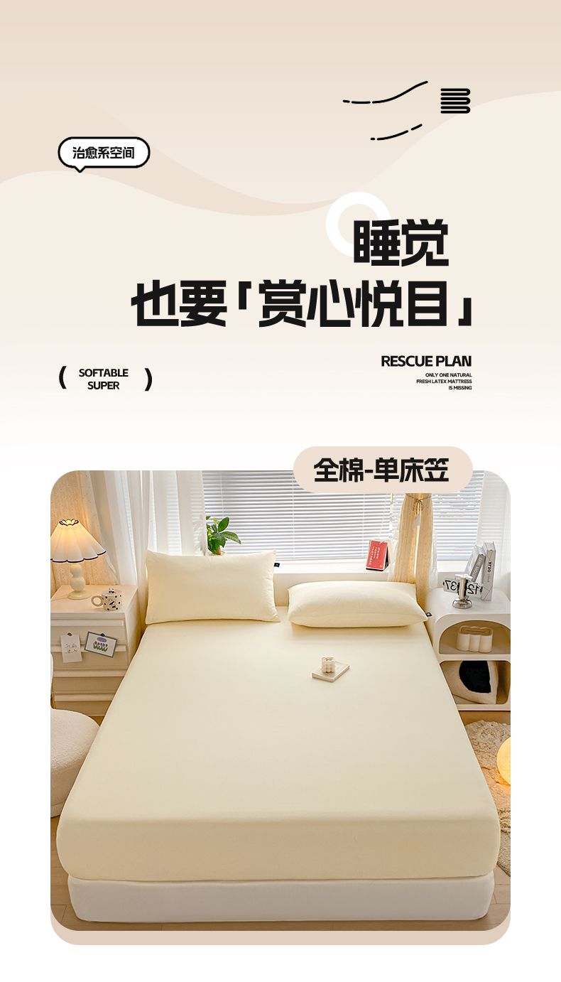 涵宸家纺 2026新款全棉纯色单床笠-米兰 床笠-奶白