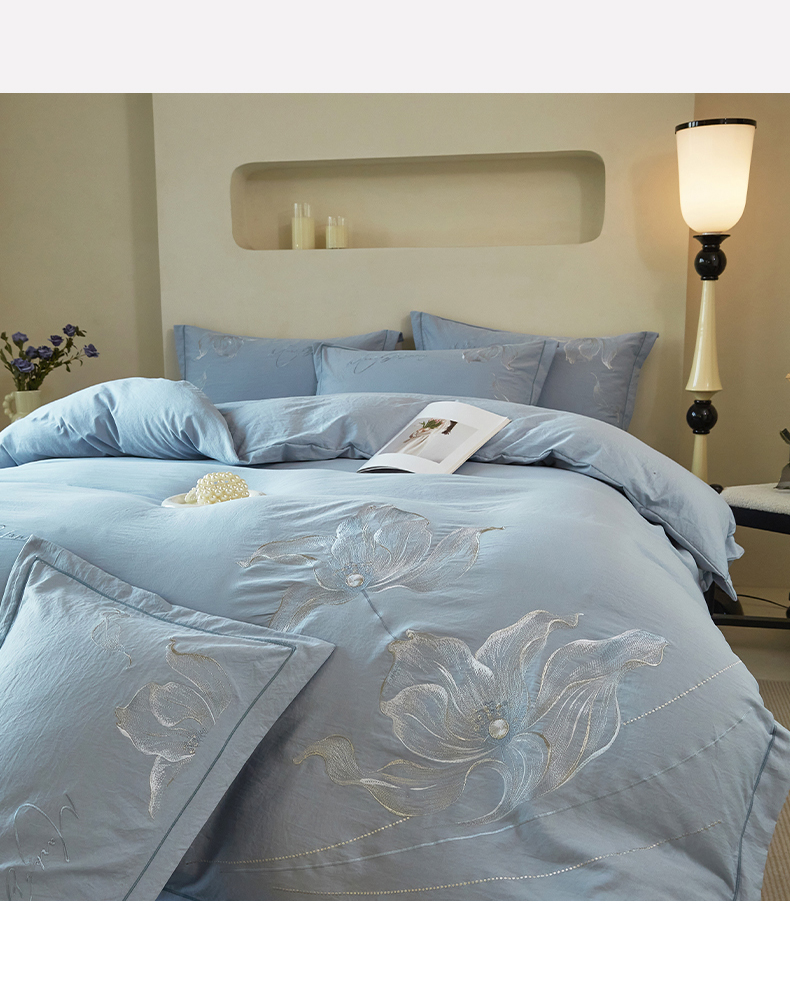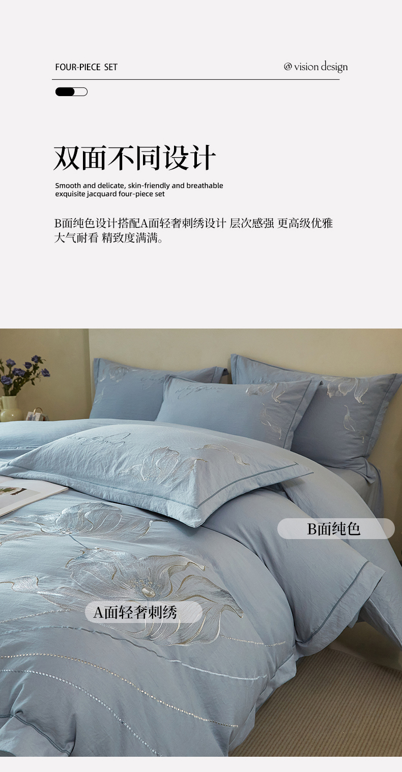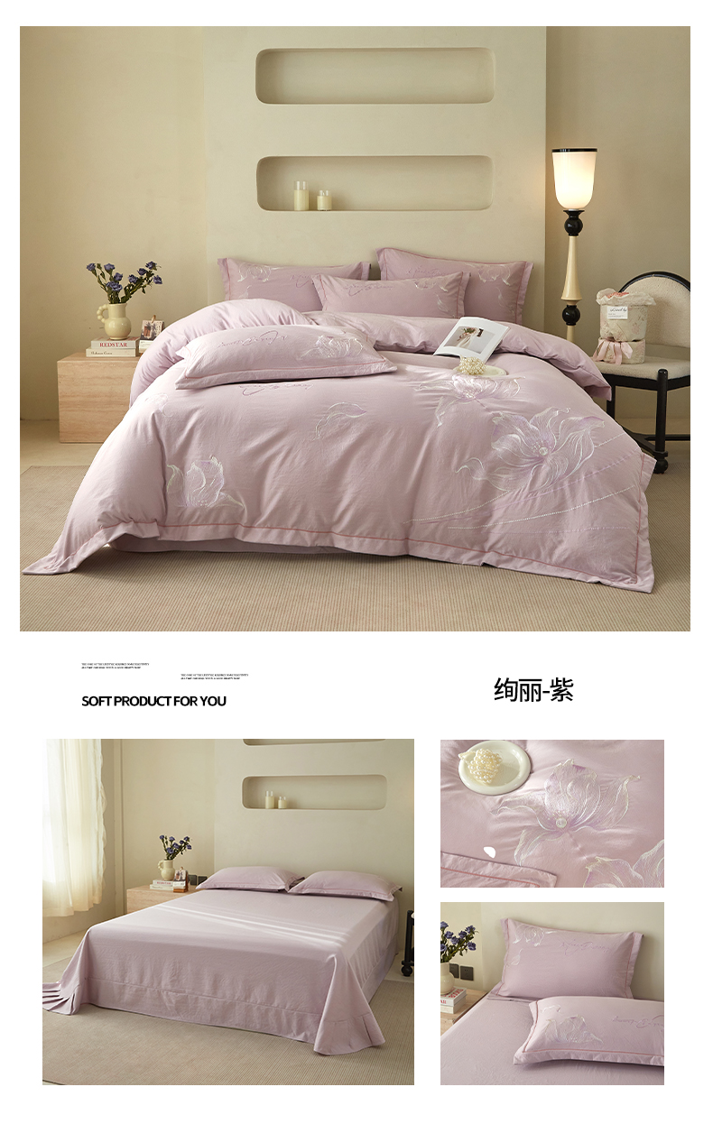 (总)金纱玉纺家纺 2025新款水洗棉工艺刺绣四件套(提供买家秀),沁颜花开-宾利蓝,沁颜花开-豆绿,沁颜花开-粉豆沙,沁颜花开-中灰,沁颜花开-紫,沁颜花开-紫豆沙,恬静时光-宾利蓝,恬静时光-豆绿,恬静时光-粉豆沙,恬静时光-中灰,恬静时光-紫,恬静时光-紫豆沙