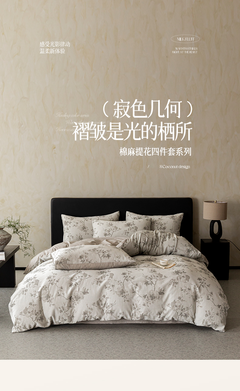 商品名称:涵宸家纺 2026新款棉麻色织提花四件套 云锦-灰