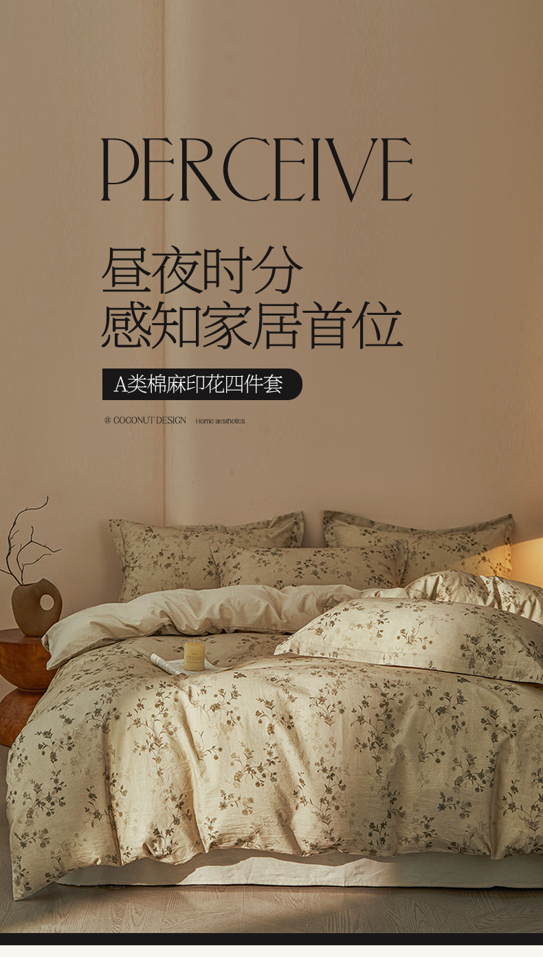 涵宸家纺 2026新款棉麻数码印花四件套 浅韵花影