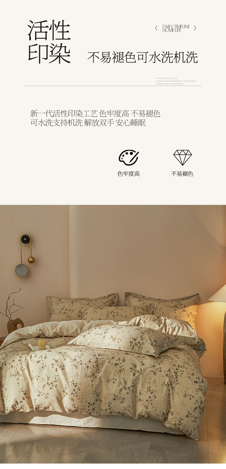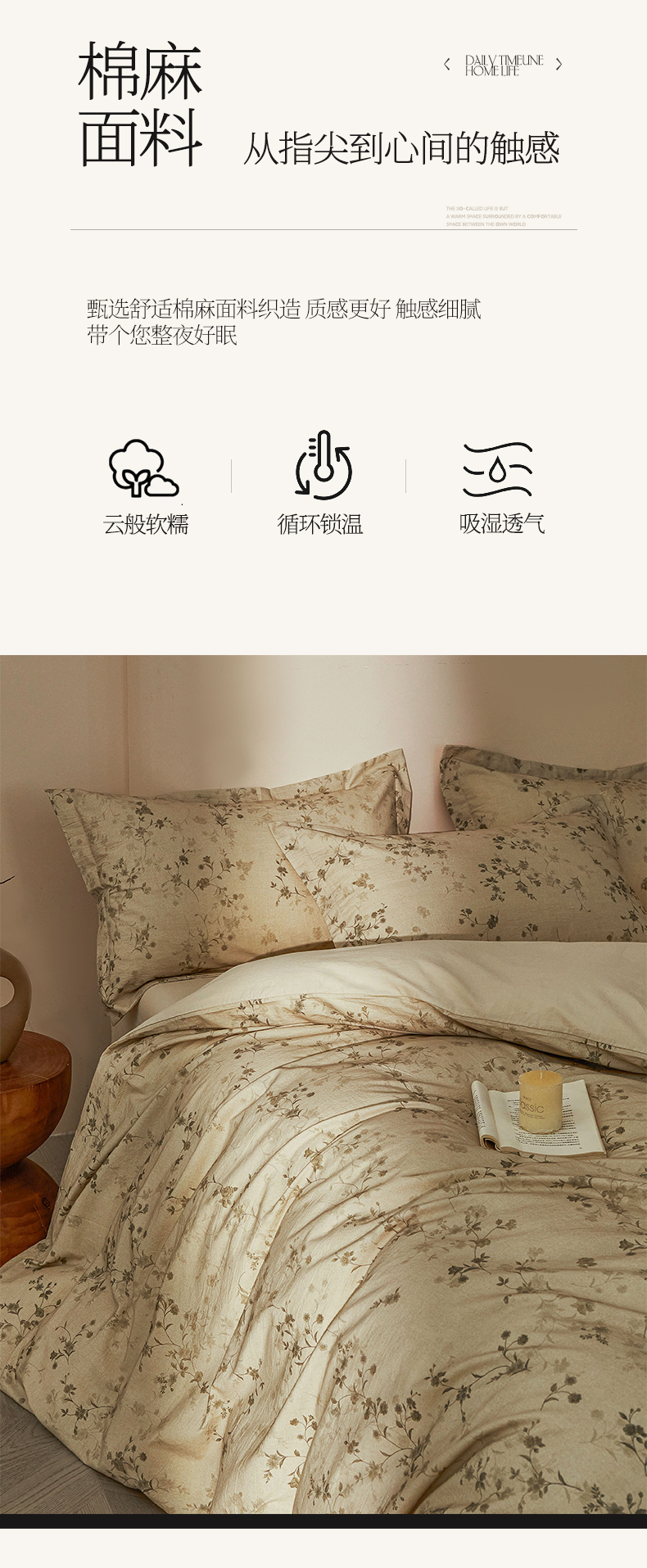 商品名称:涵宸家纺 2026新款棉麻数码印花四件套 浅韵花影