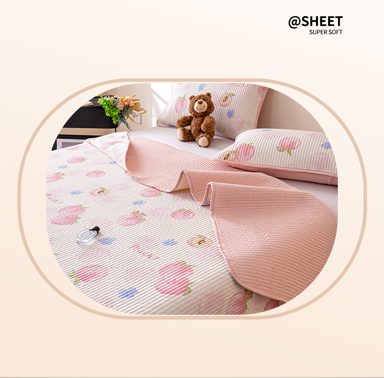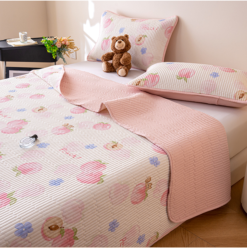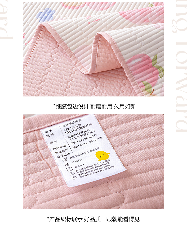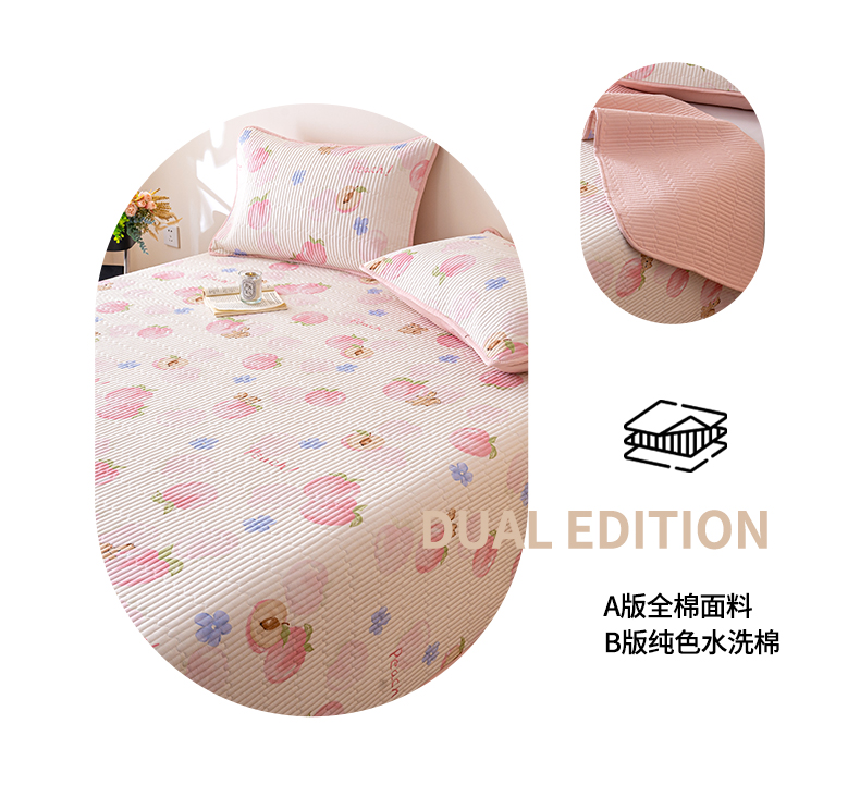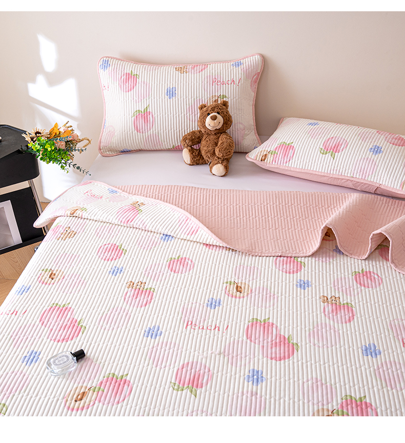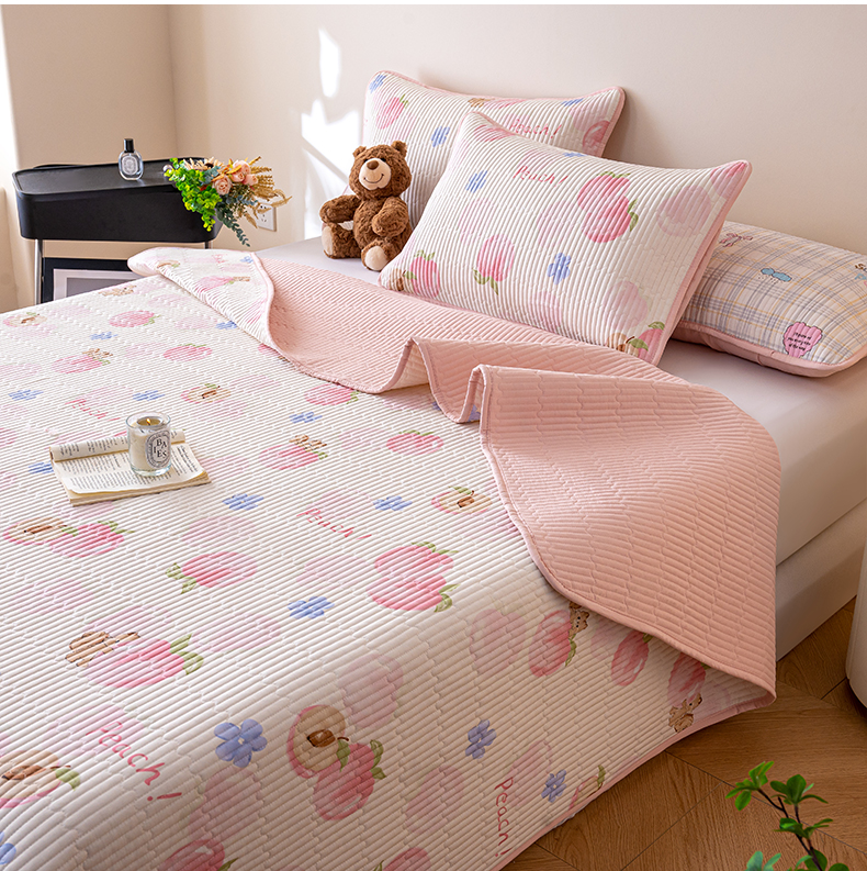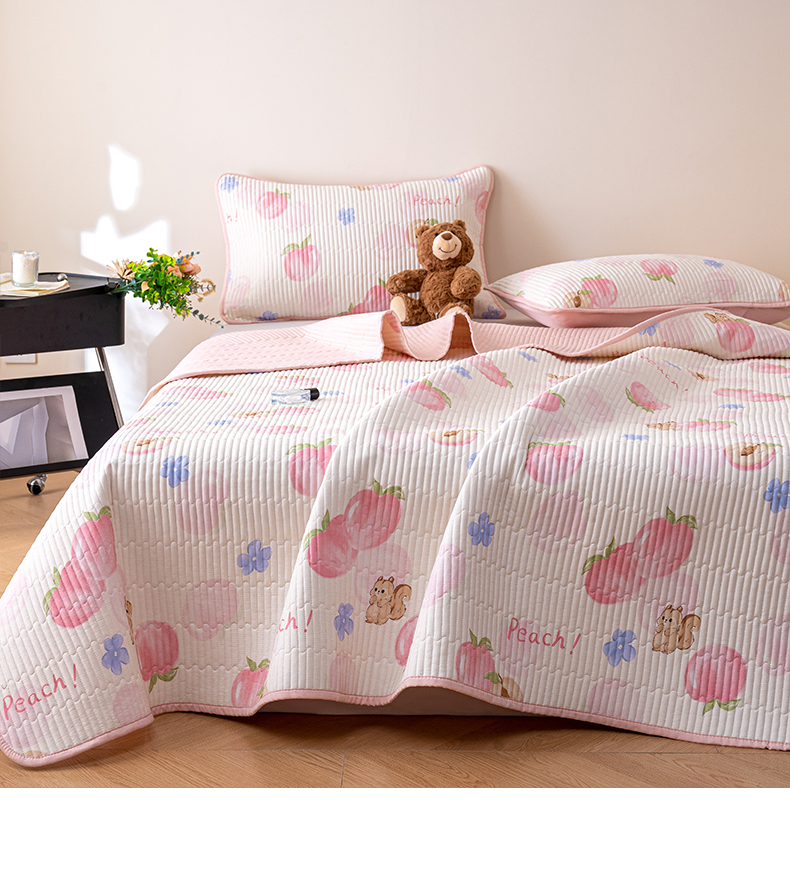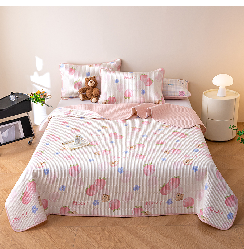 • 91家纺网 家纺一手货源 找家纺 X猫先生 2026新款全棉床盖小清新夹棉床单炕盖四季跑量款 蜜桃松鼠