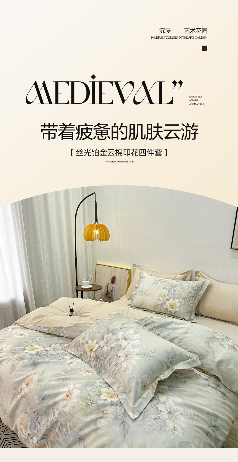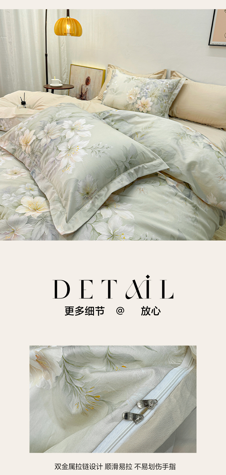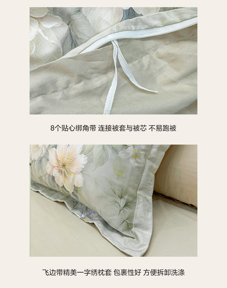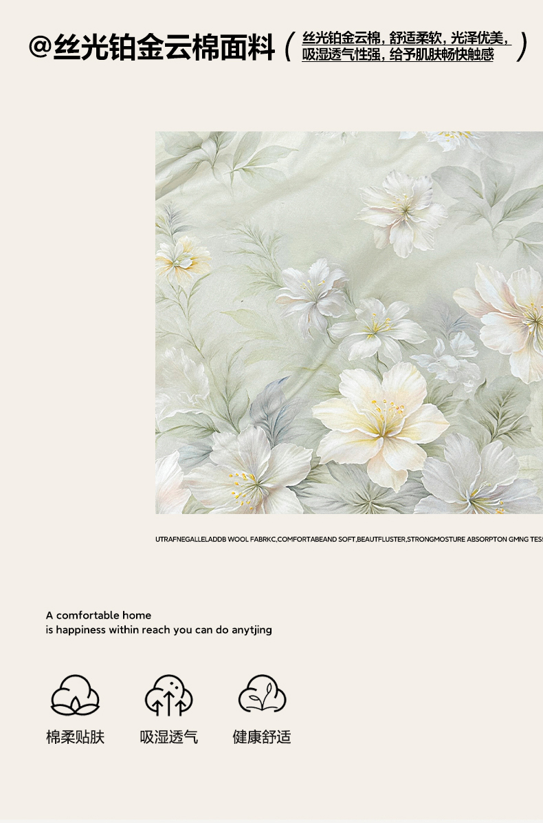(总)橙艺家居 2026新款丝光铂金云棉印花四件套 本店线上严格控价,券后、活动后标准不得低于218元,以此类推。请各位老爷严格遵守,以免低价后再调整价格,影响链接权重,花朝拾露-紫,花田诗梦-粉,花颜外-粉,蔓月-紫,梦叶集-粉,慕枝下-绿,千叶密语-粉,闻栖-绿,雅莹-绿,叶间绒雪-兰,叶木槿-米,予她-粉,自然低语-绿,芙晚,奈亚,婉情-灰