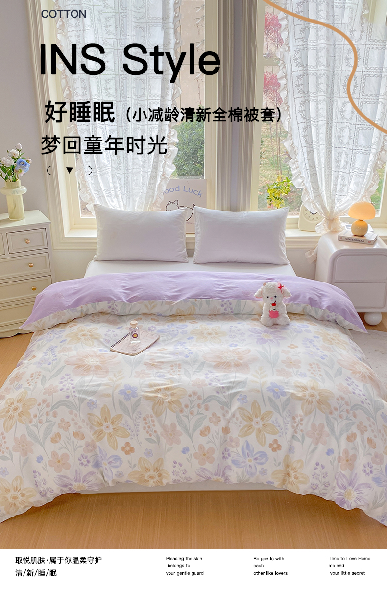 黑马家居 2026新款13070全棉印花小清新卡通花卉单品被套系列 堇紫盈香